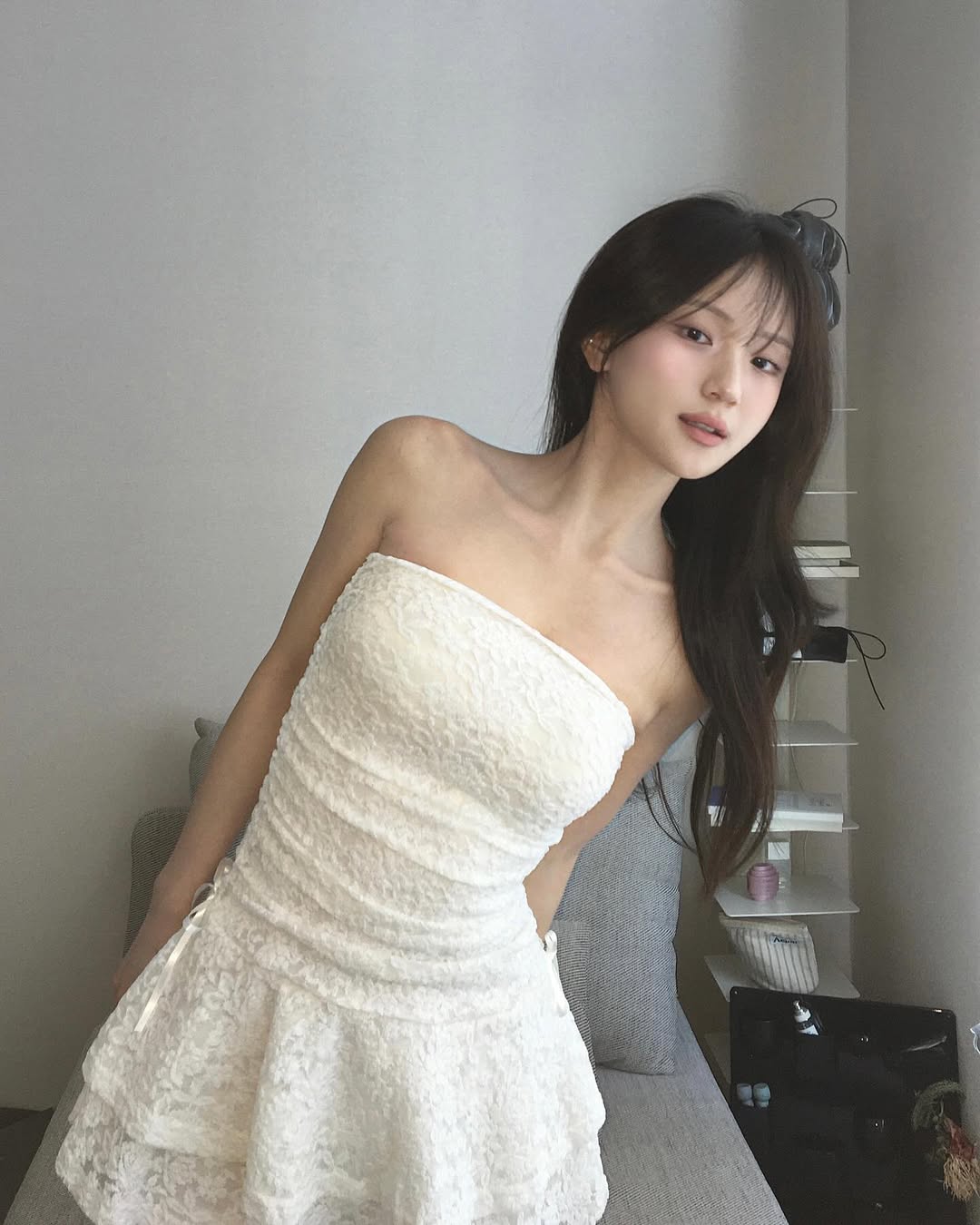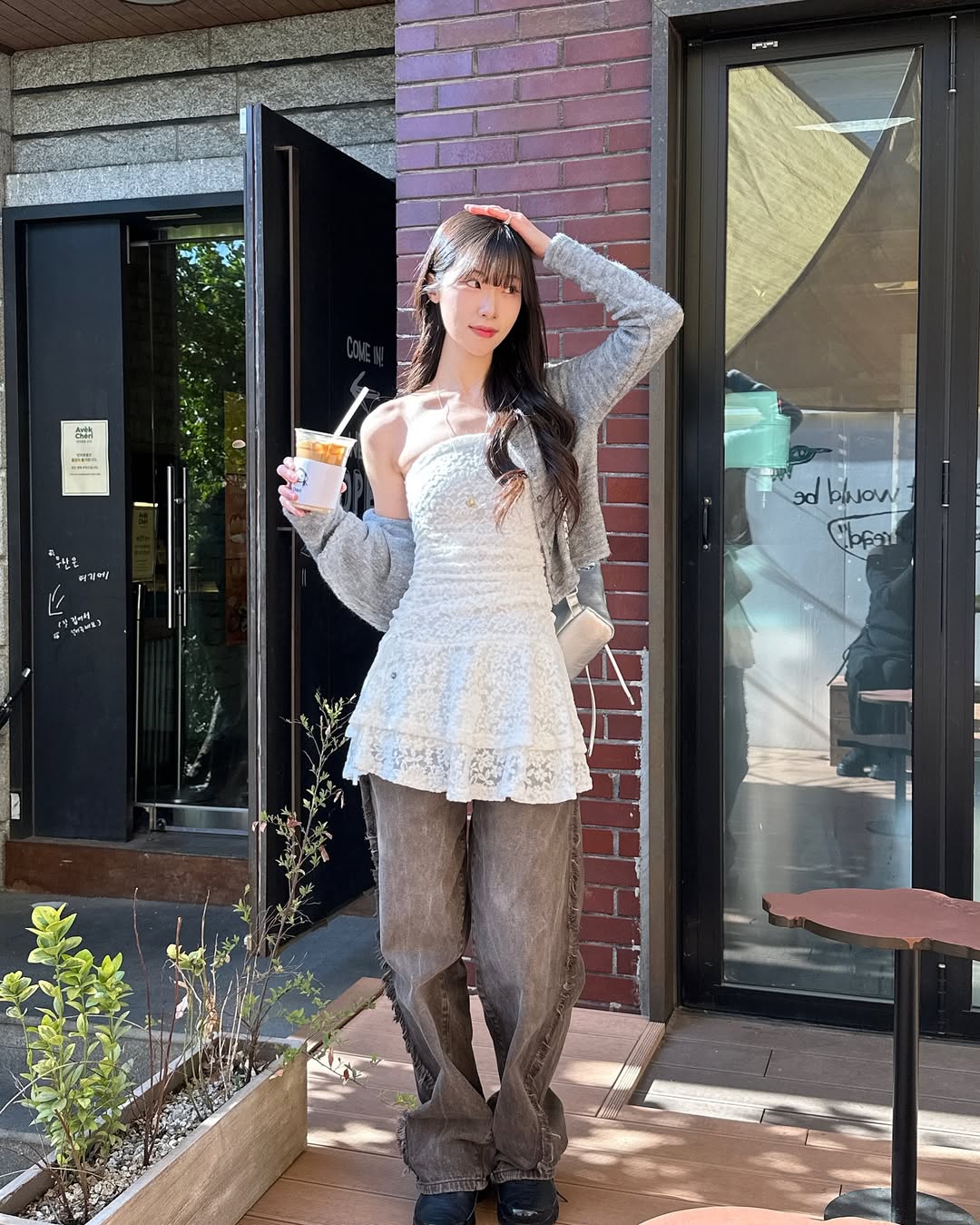 A feminine, twisted knit one-piece dress that's perfect for the end of the year✨ The material is soft and the length isn't too short, so it's comfortable to move around in.💗