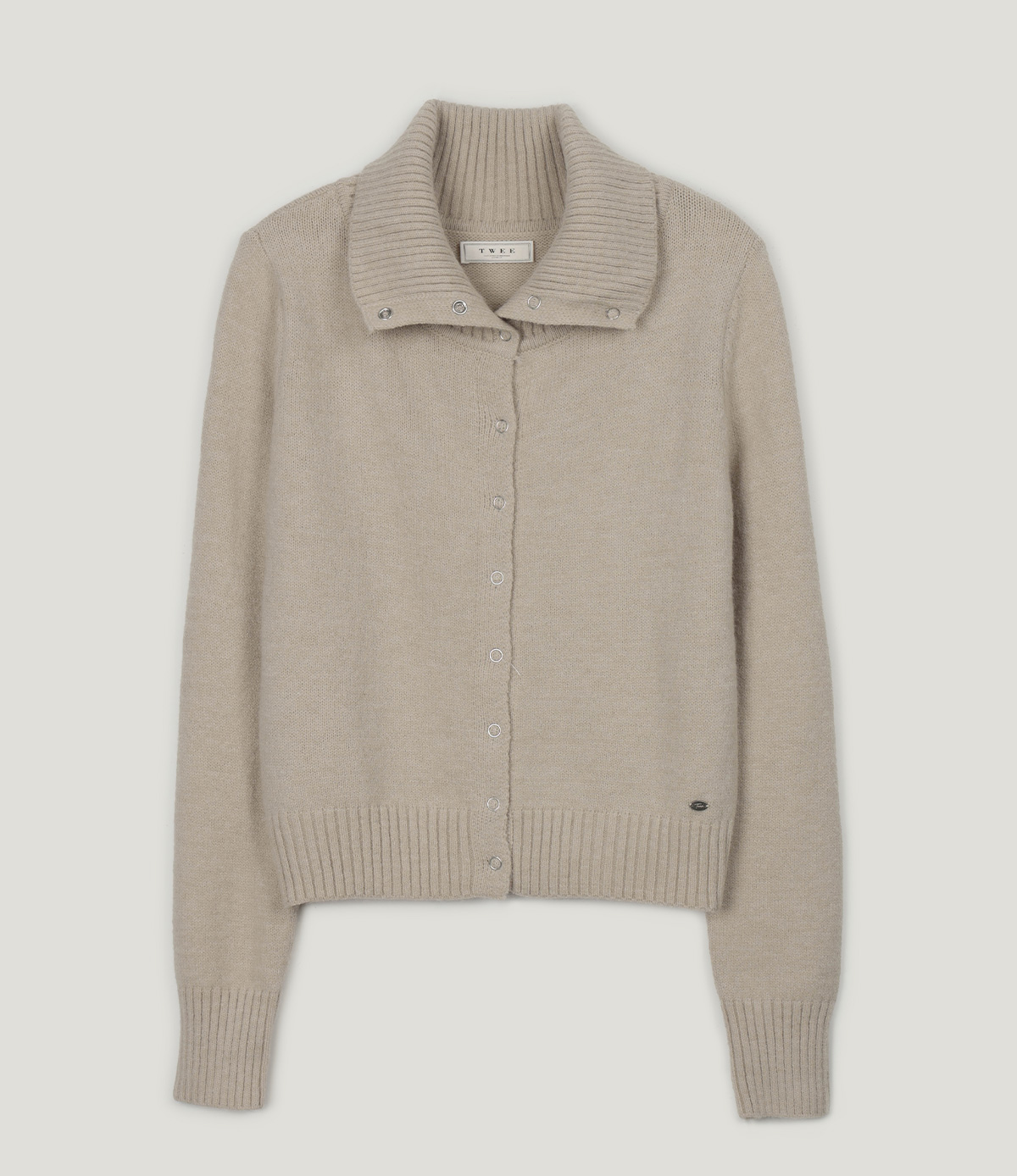 Produktname: Conna Cardigan mit hohem Kragen und Druckknöpfen