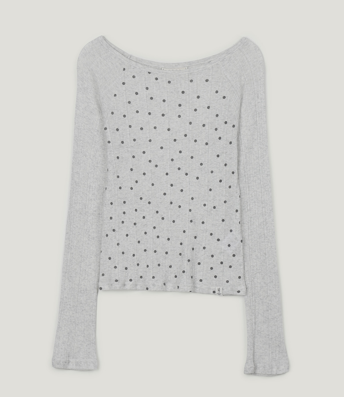Dieses langärmelige T-Shirt mit Punktmuster vervollständigt einen niedlichen Look.