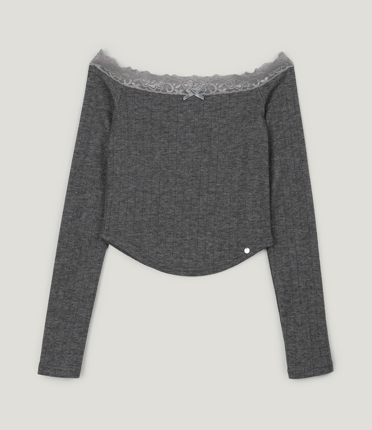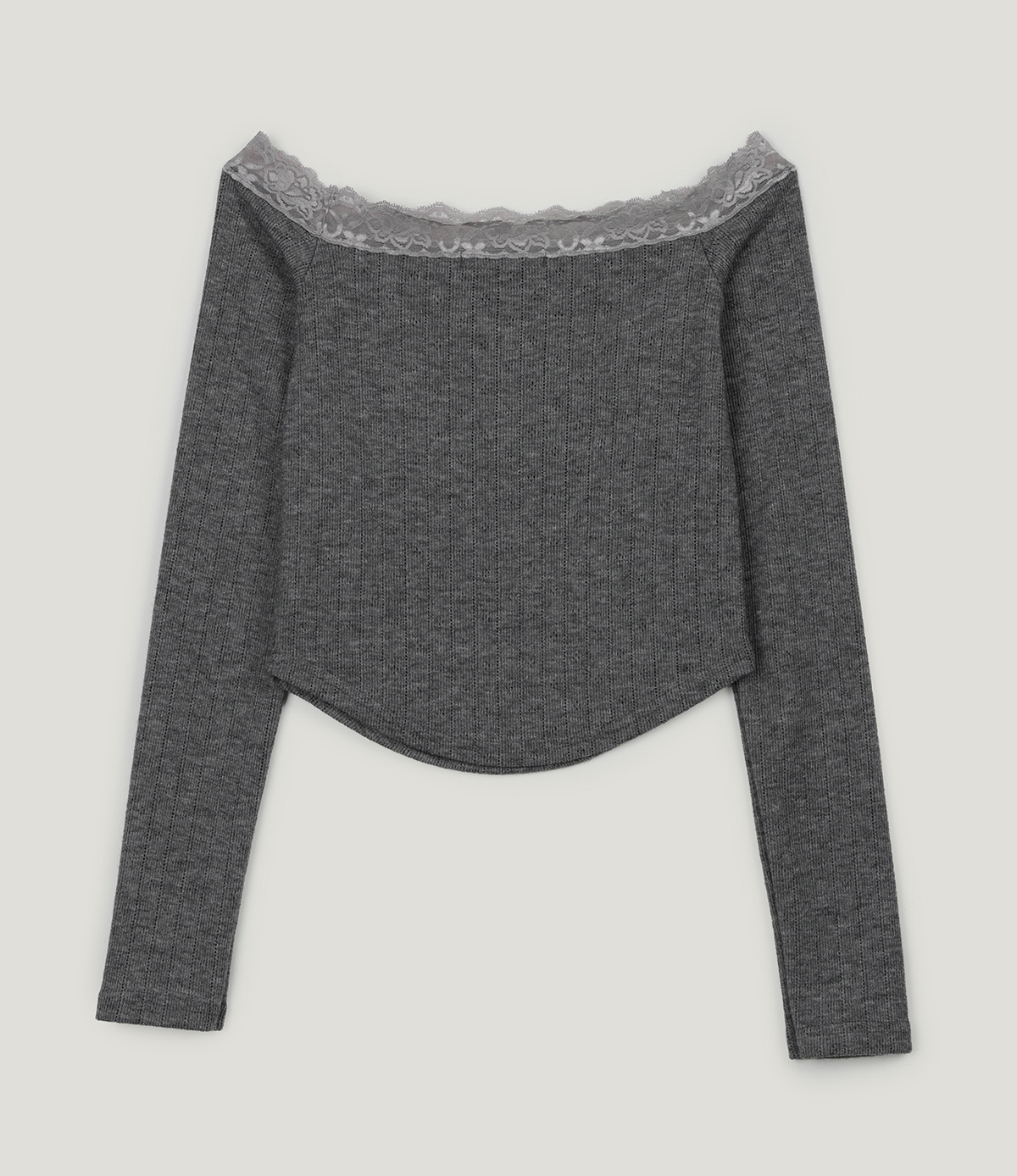 Dieses schulterfreie Langarmshirt verfügt über Spitzenakzente.
