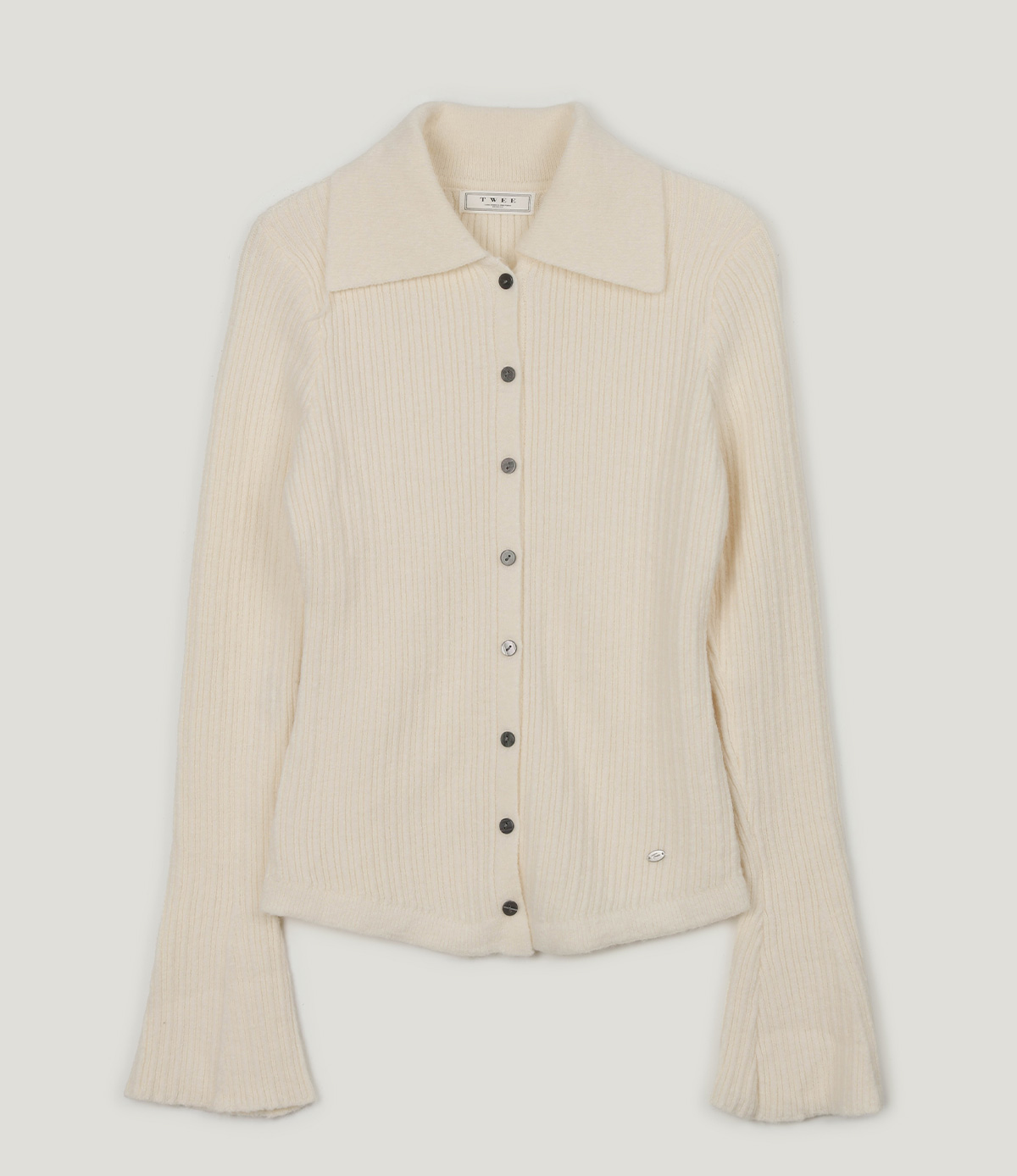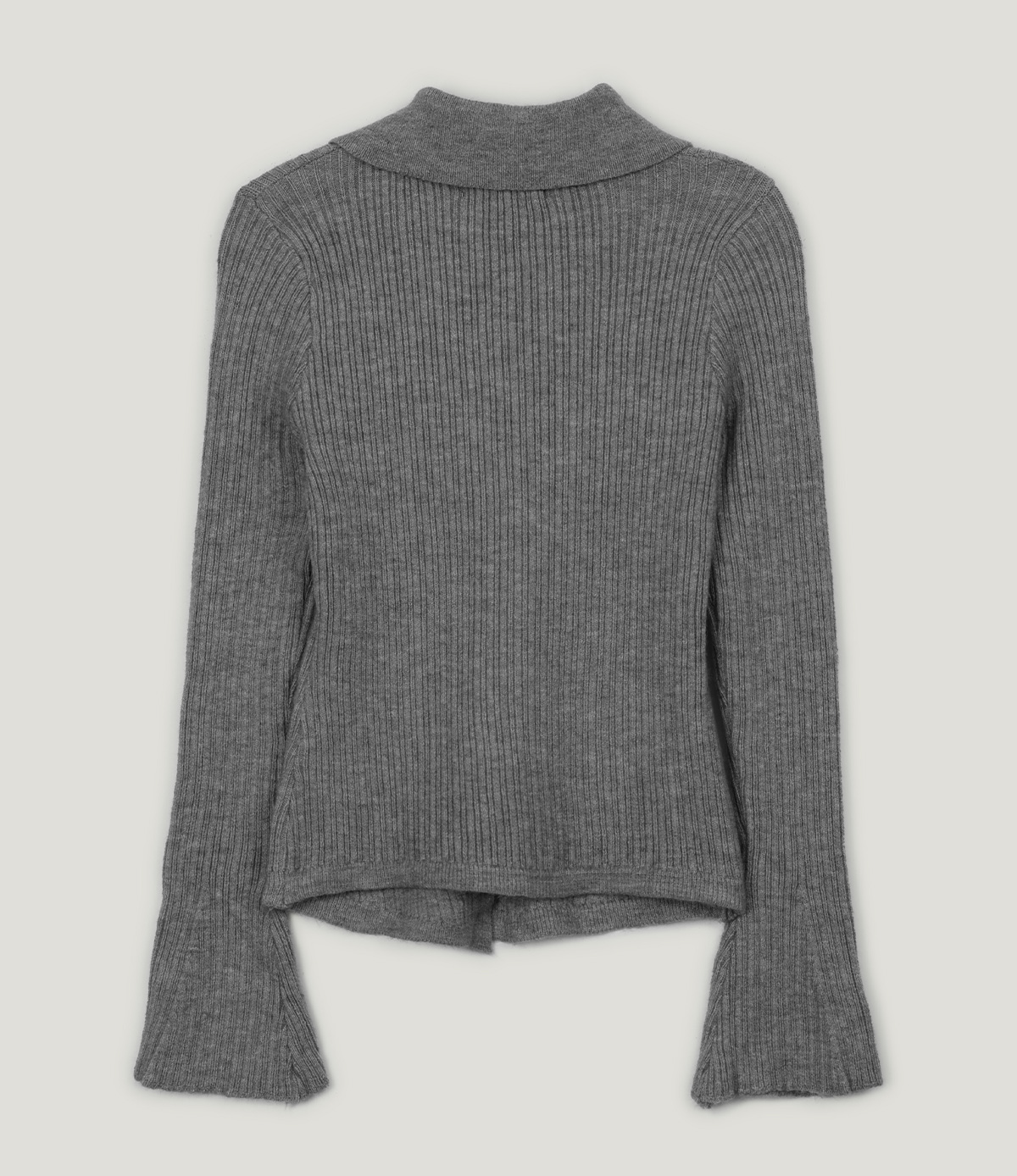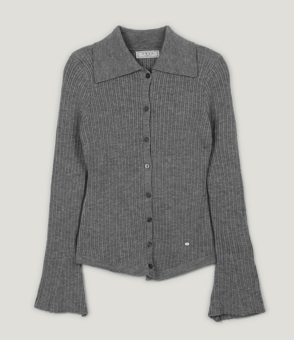 【TWEE】Tails-Kragen gerippte Langarm-Strickjacke