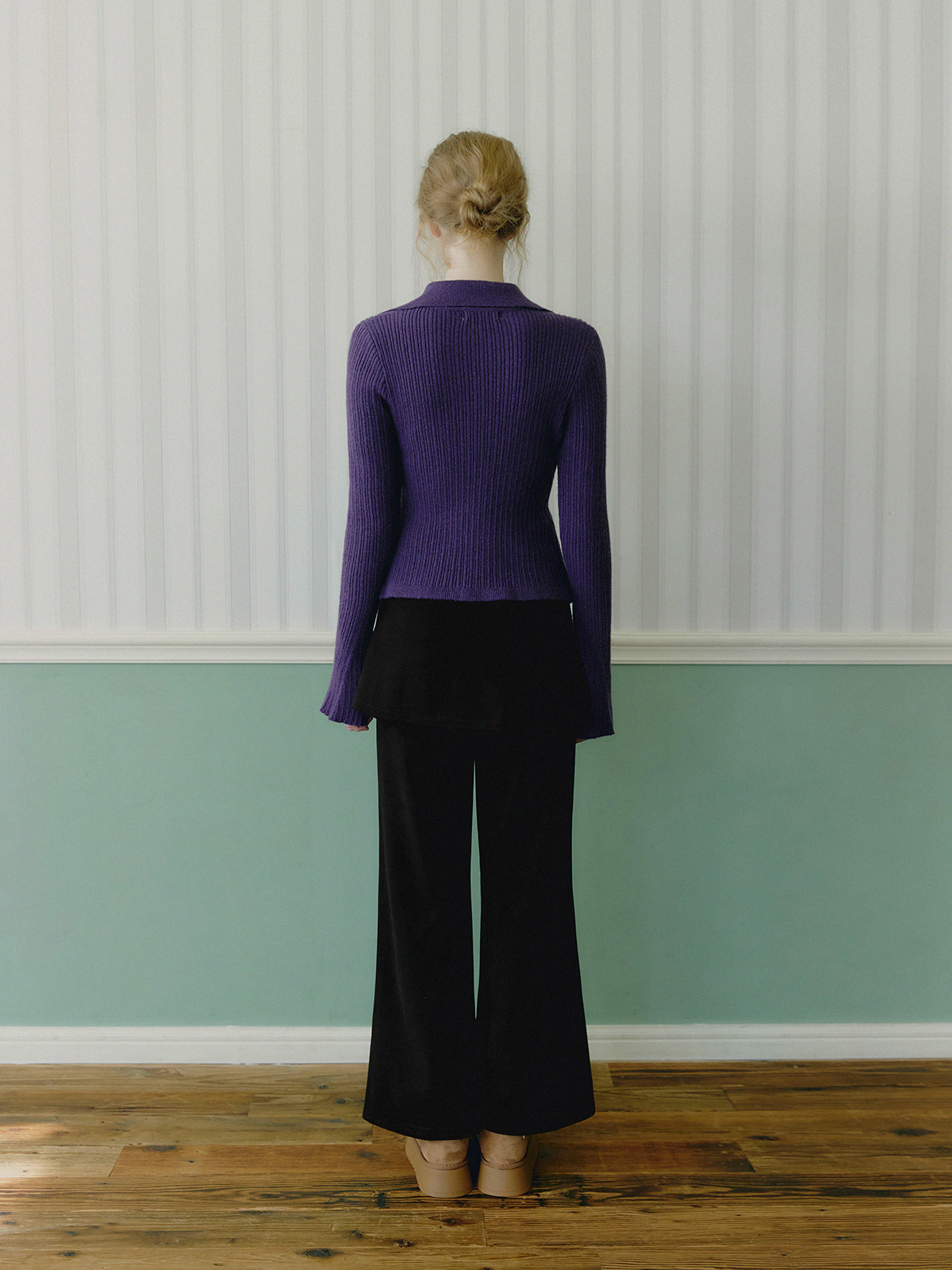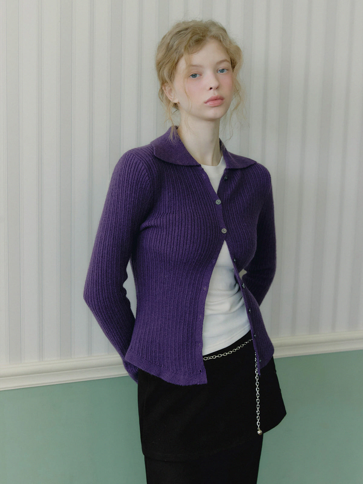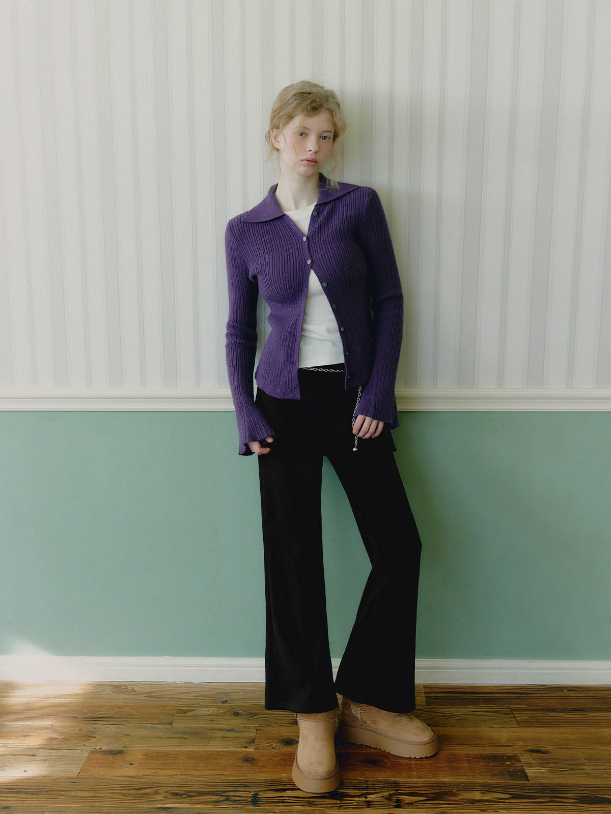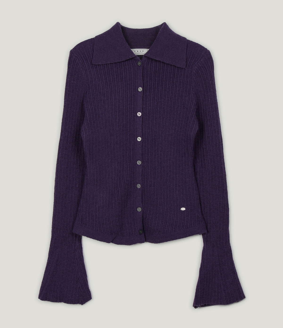 【TWEE】Tails-Kragen gerippte Langarm-Strickjacke