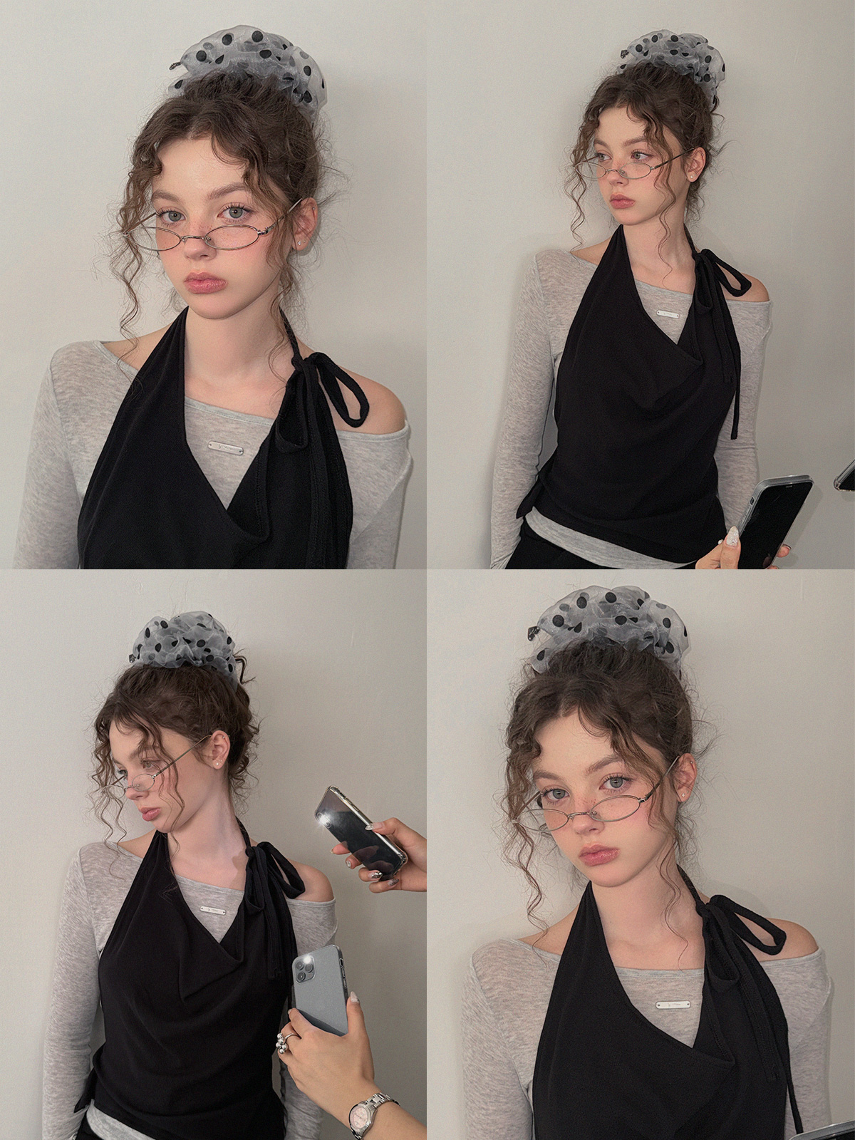 Cet ensemble polyvalent comprend un haut à col halter et un t-shirt à manches longues, offrant une variété d'options de style. Les deux pièces peuvent être portées séparément, ce qui vous permet de les associer ensemble ou séparément avec d'autres vêtements. Selon la façon dont vous les superposez, vous pouvez créer un look élégant et tendance.