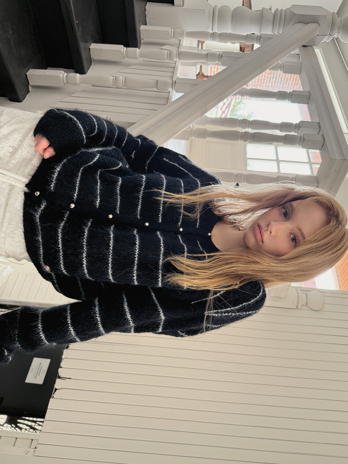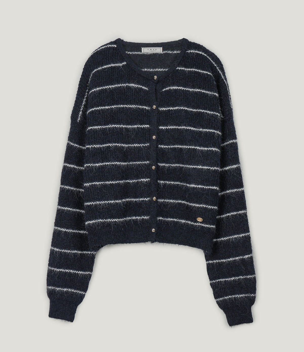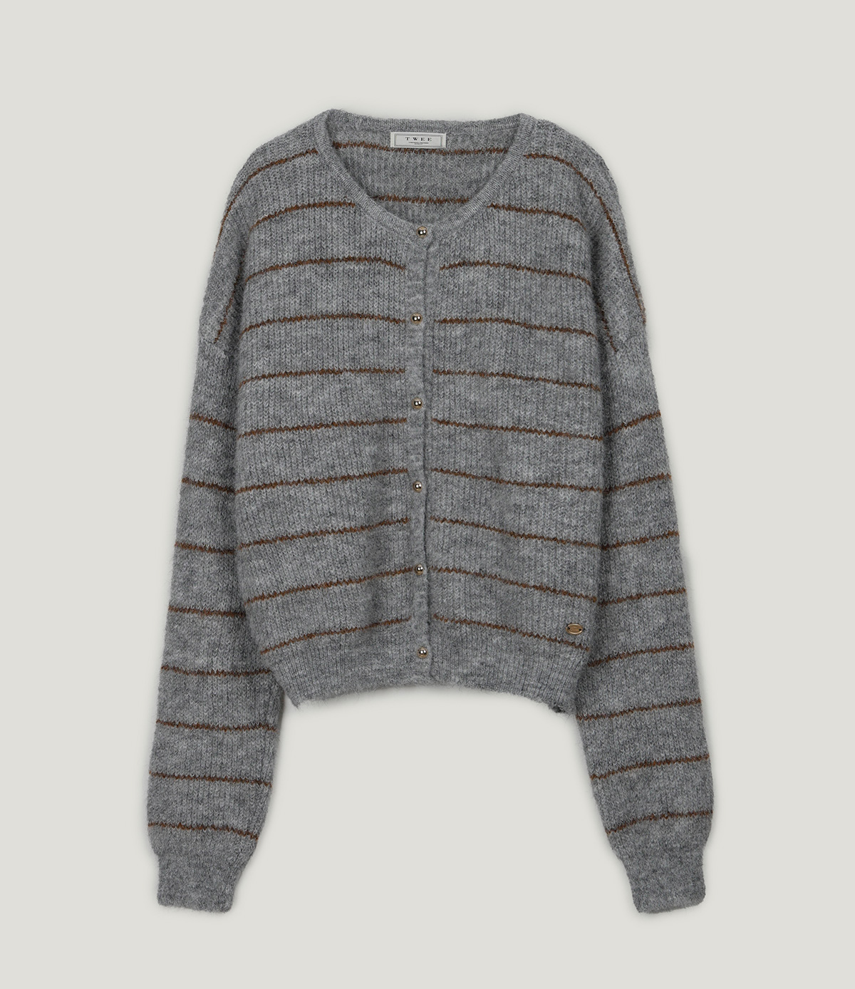 [TWEE] Cardigan a bottoni a righe lavorato a maglia
