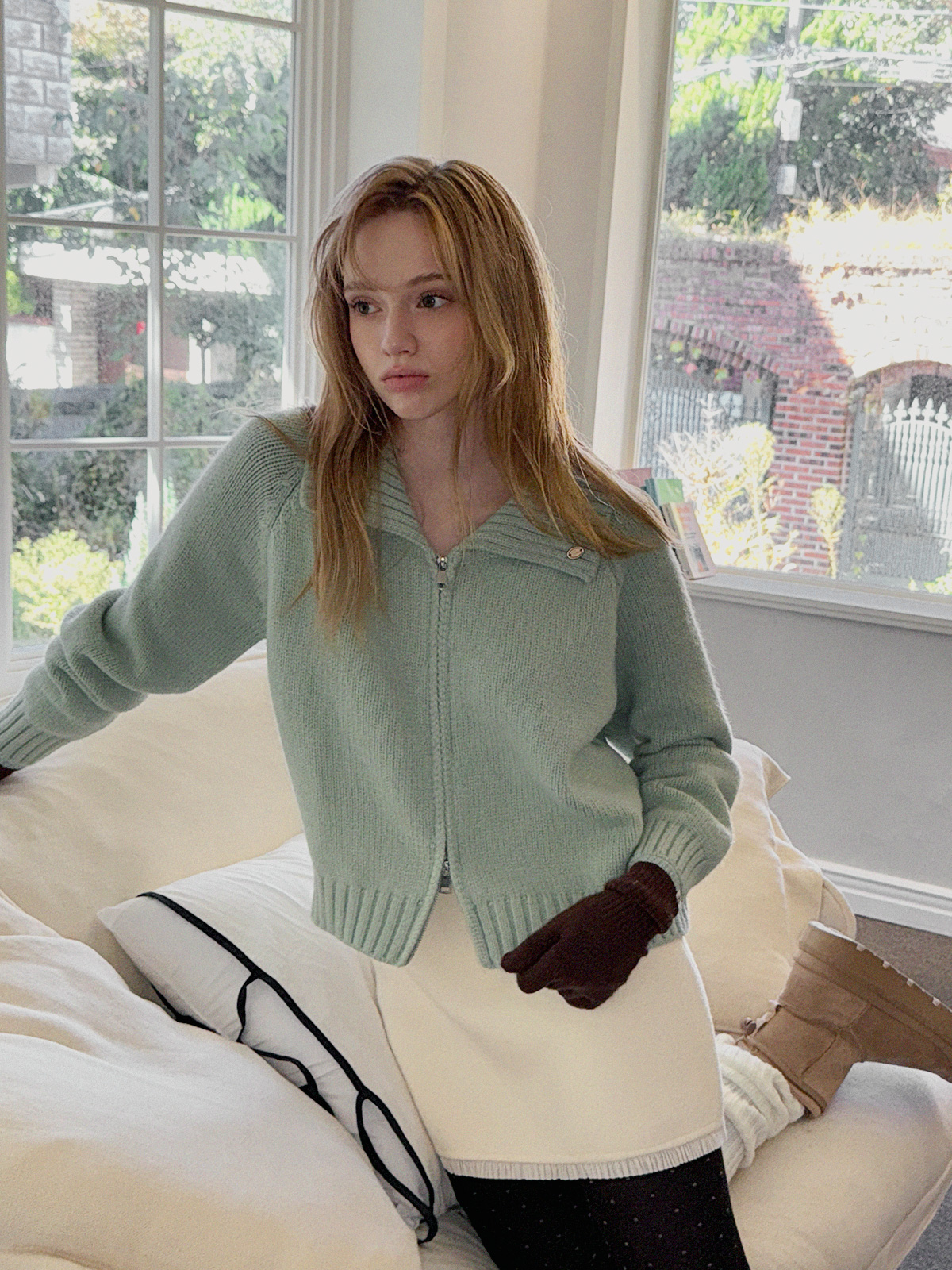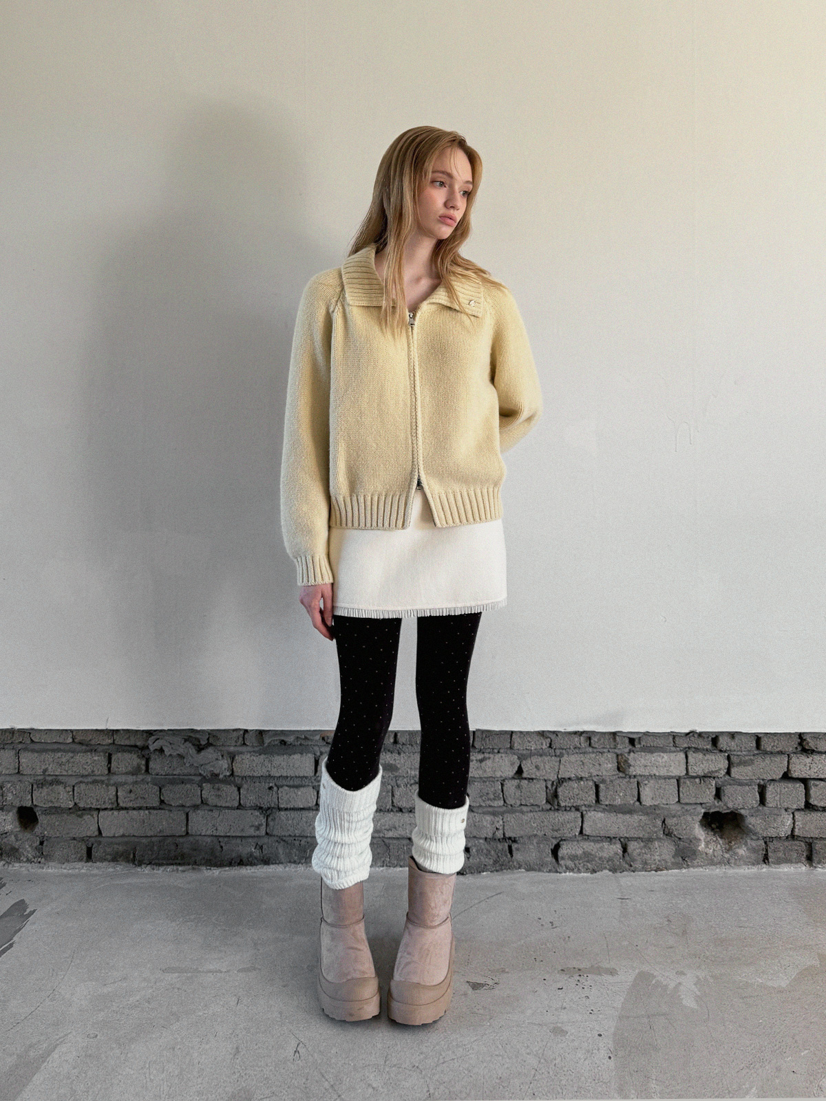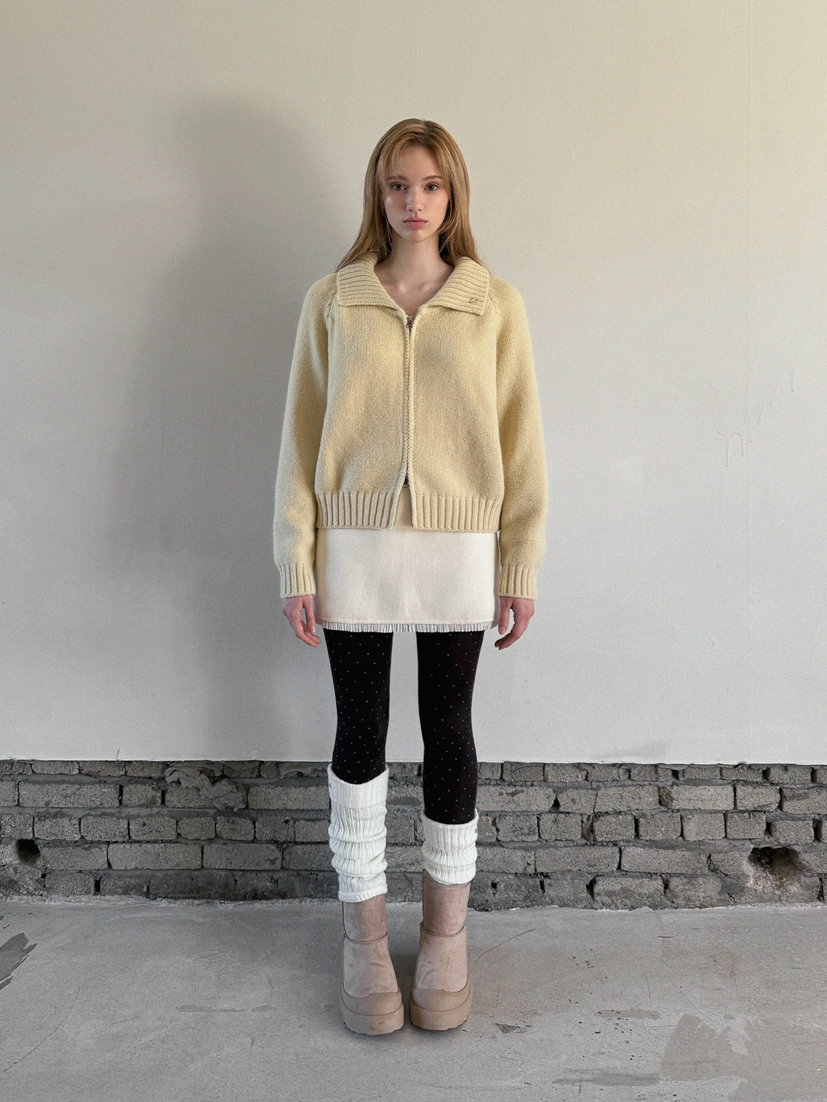 [TWEE] ディンプルパステルベーシックニットジップアップ