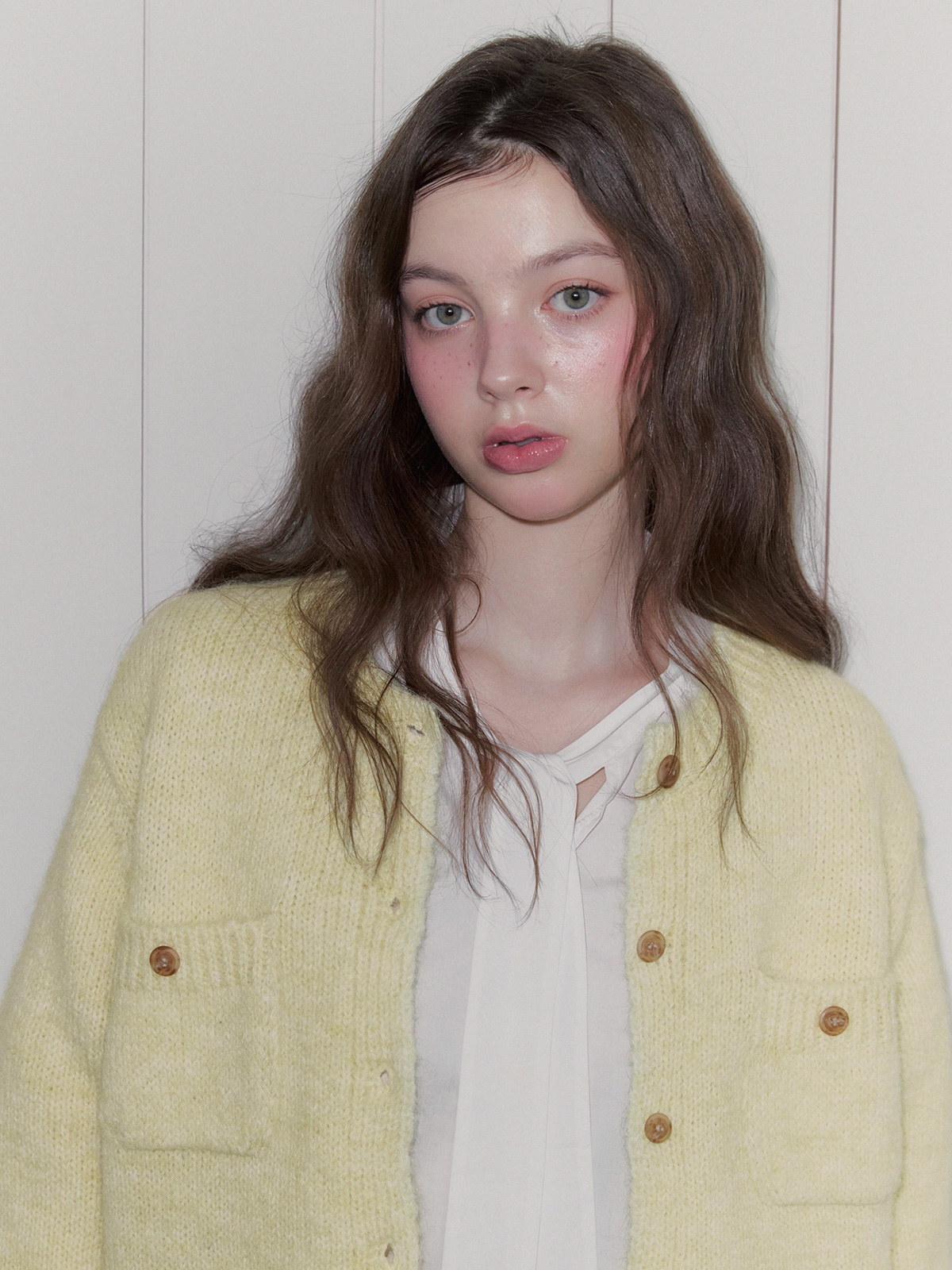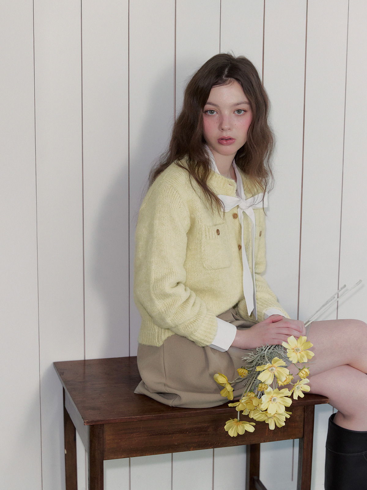 포켓 포인트로 귀엽게 연출되는 니트 가디건입니다.