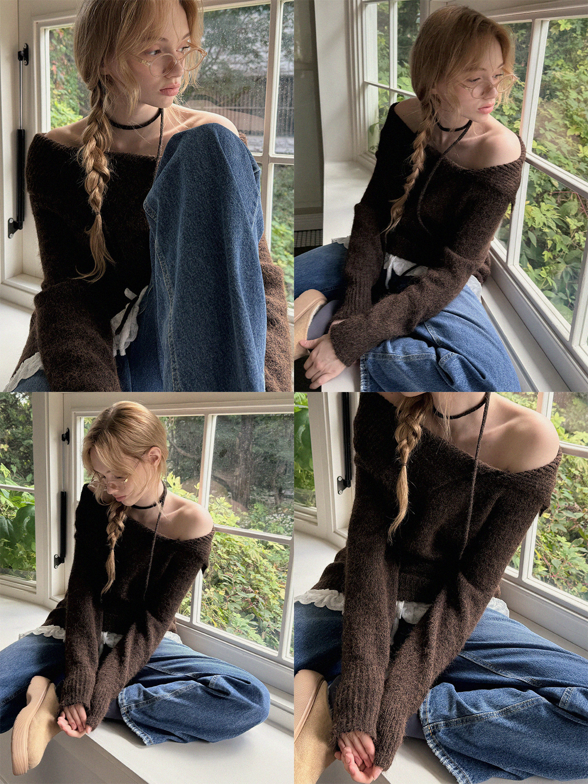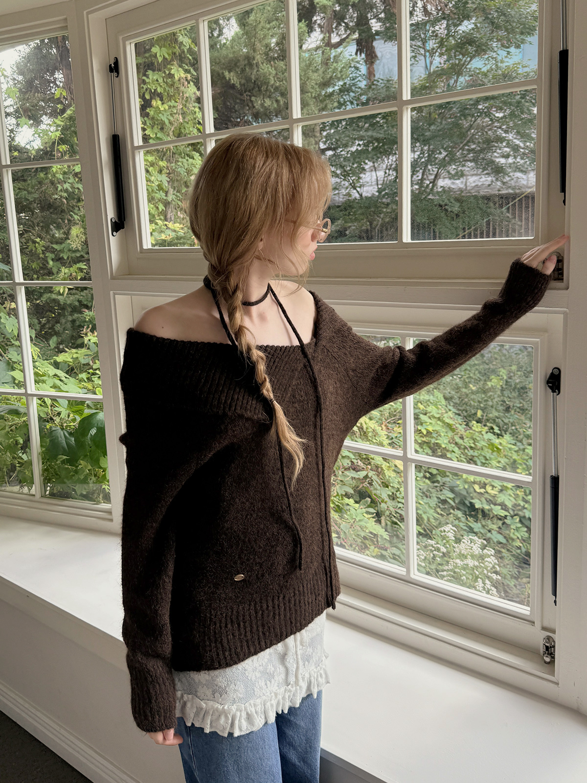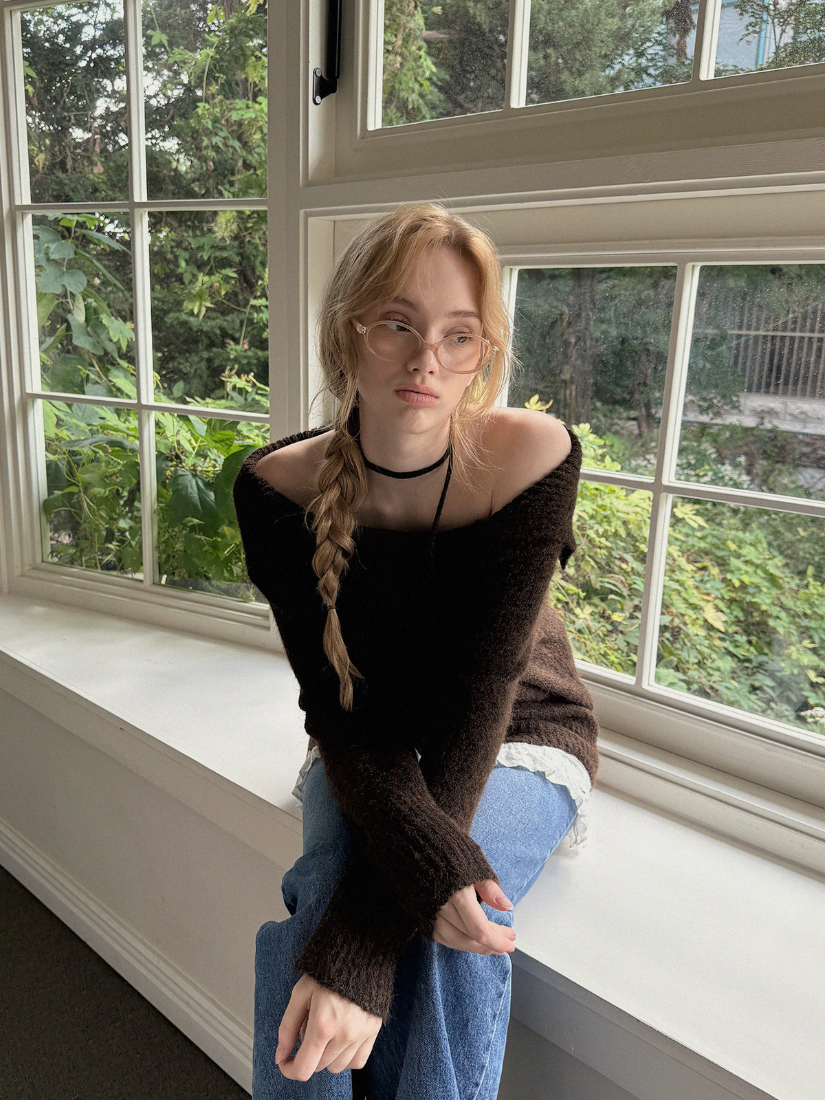 [TWEE]Ecle 비대칭 넥 루즈핏 니트 (스트랩 포함)