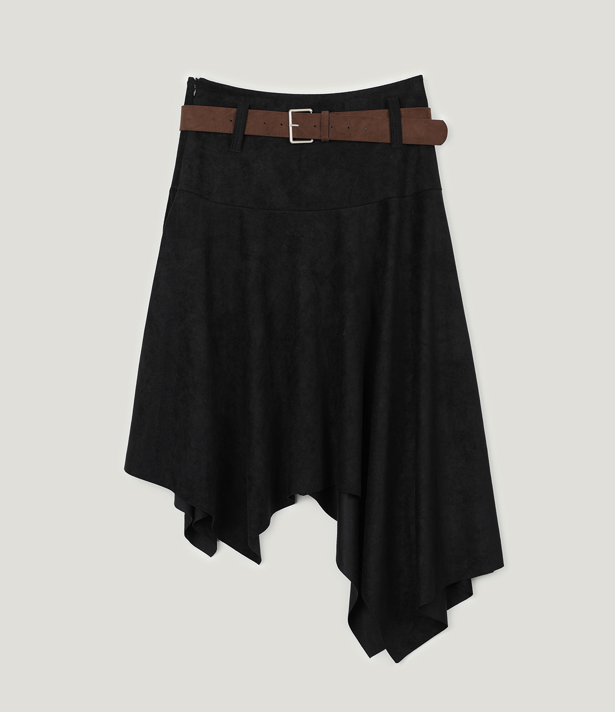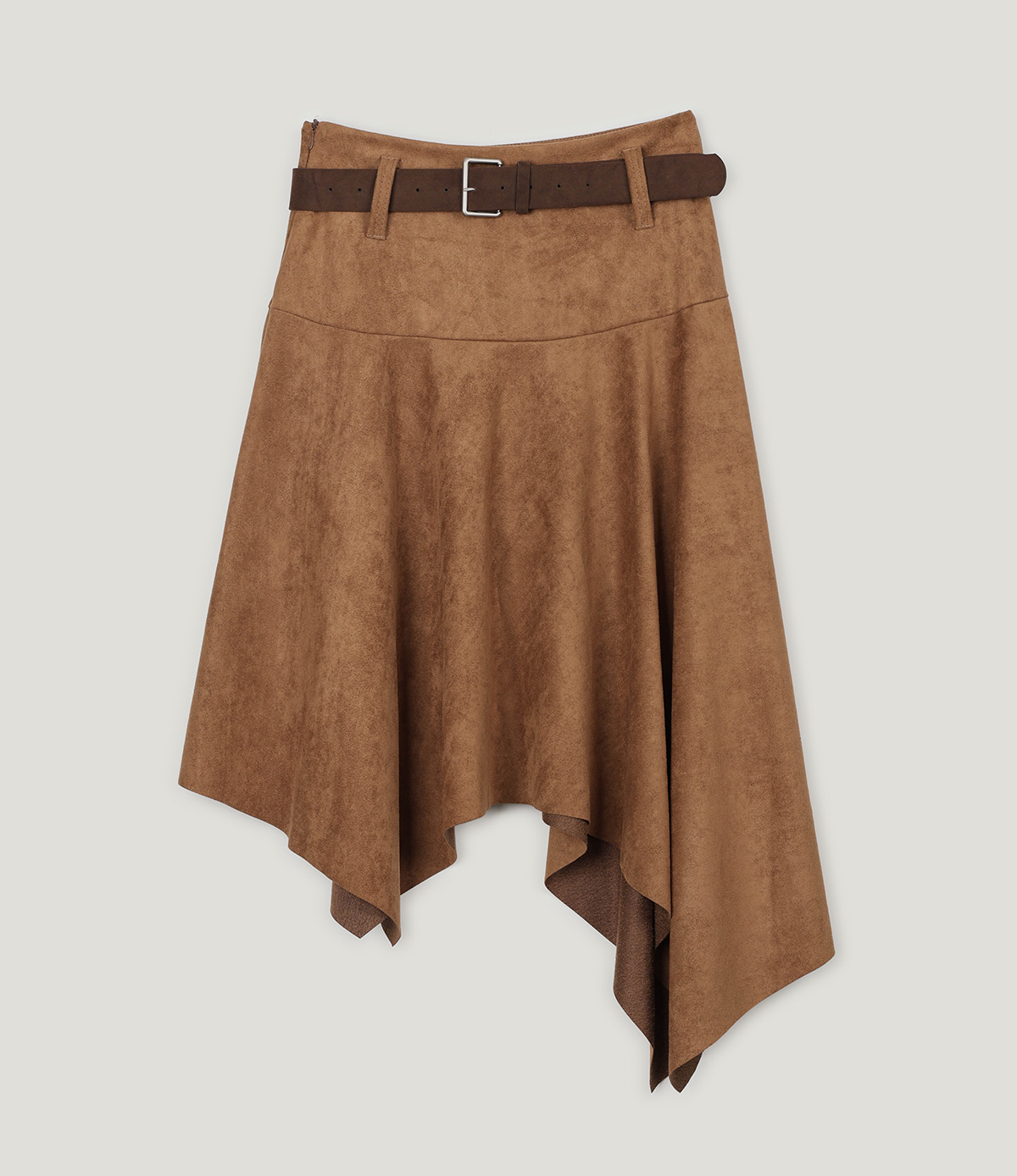 [TWEE] Aden Asymmetrical Suede Midi Skirt (with Belt Set)
