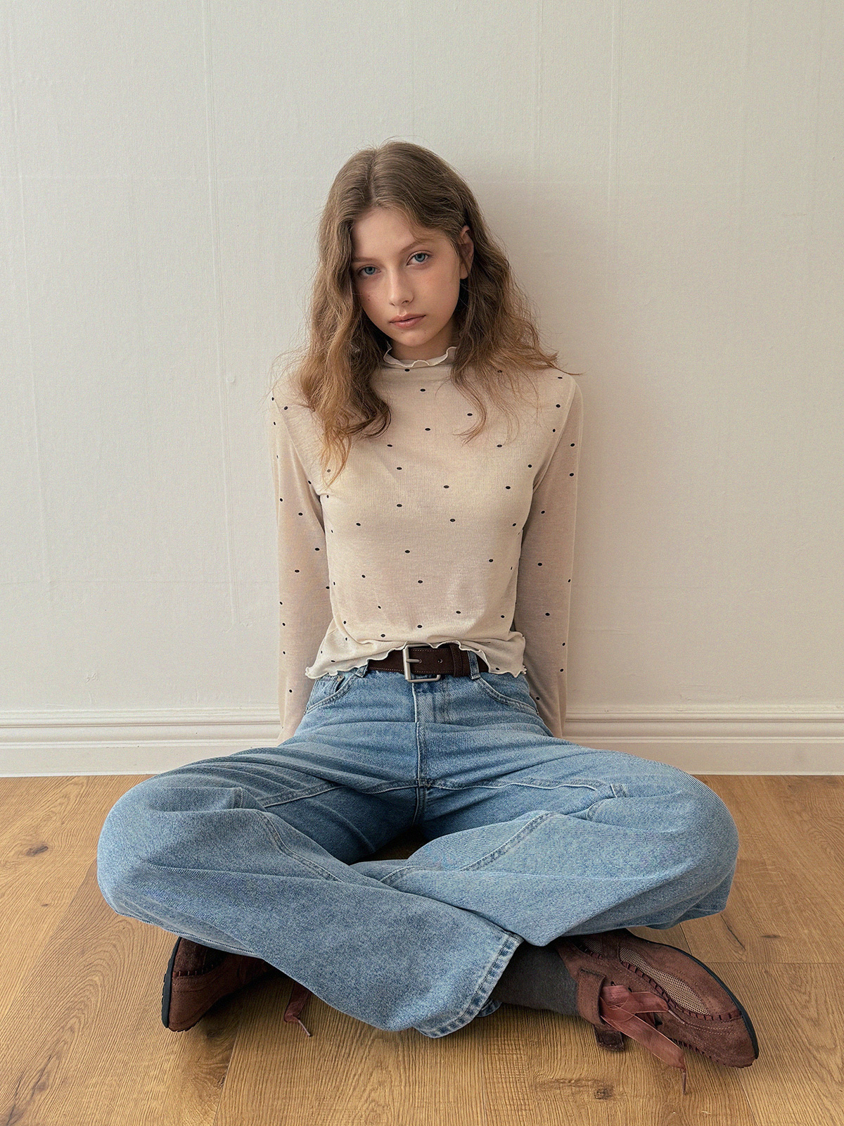 [TWEE] Bendi Dot Turtleneck Long-Sleeve T-Shirt