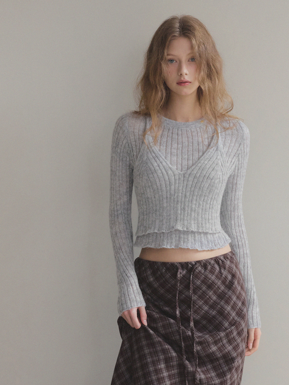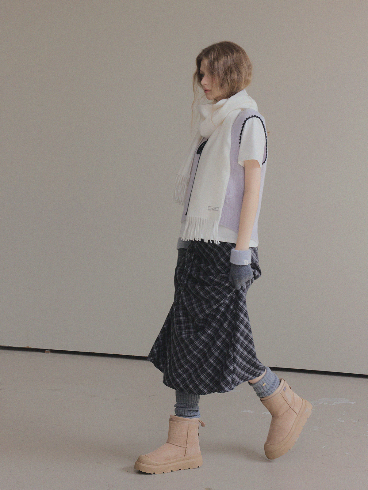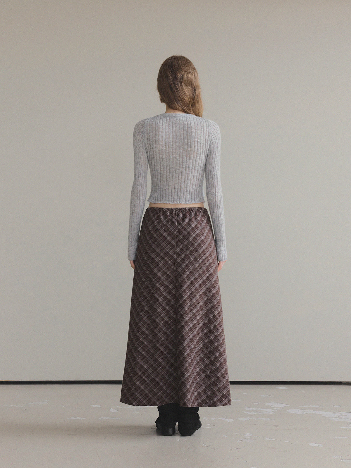 This long skirt, with its check pattern, exudes a fall/winter vibe.