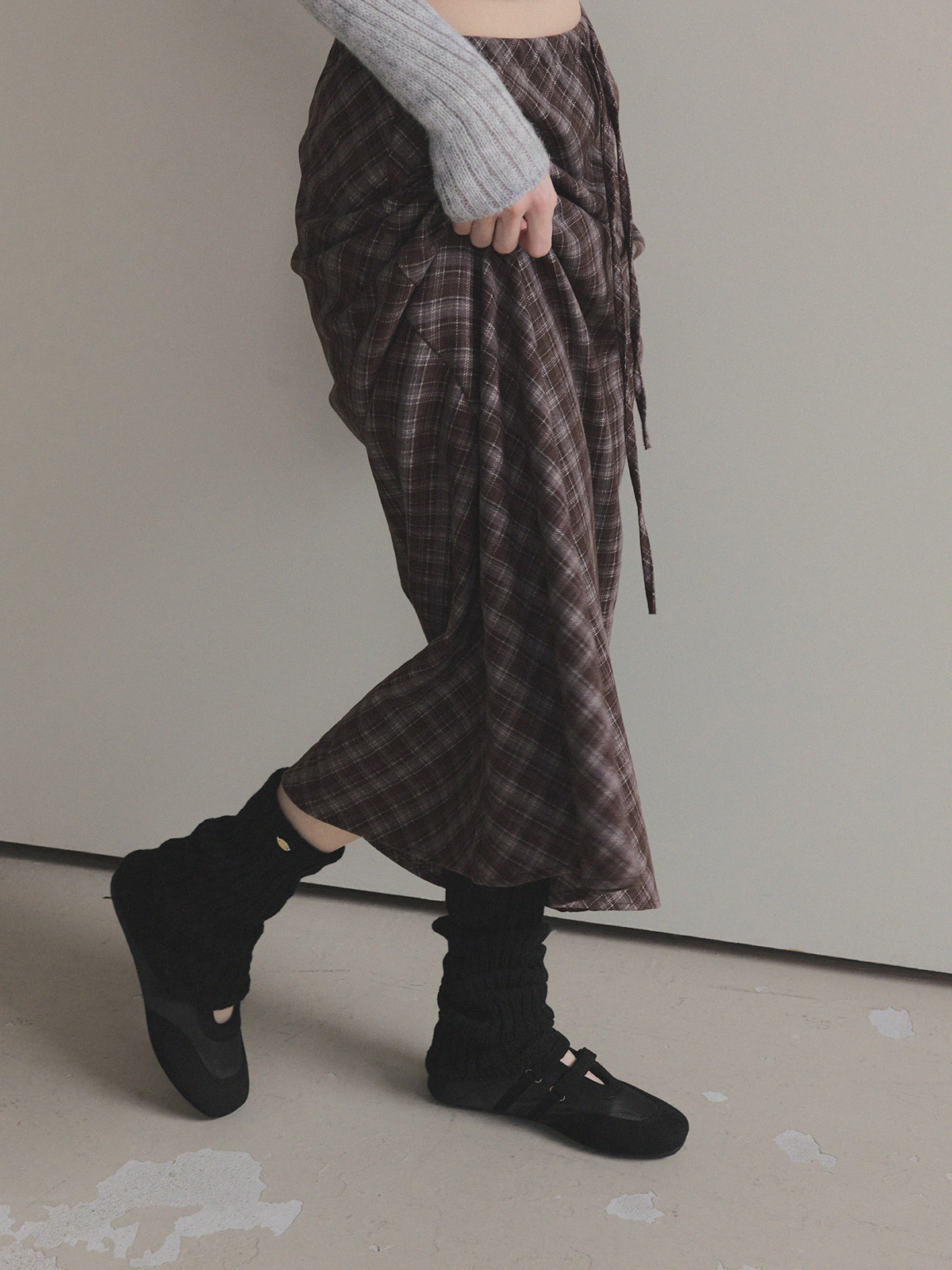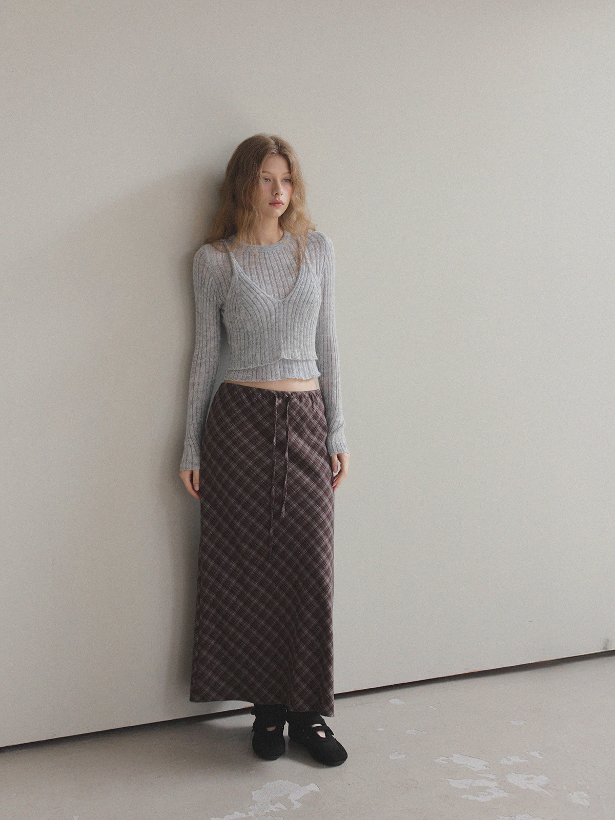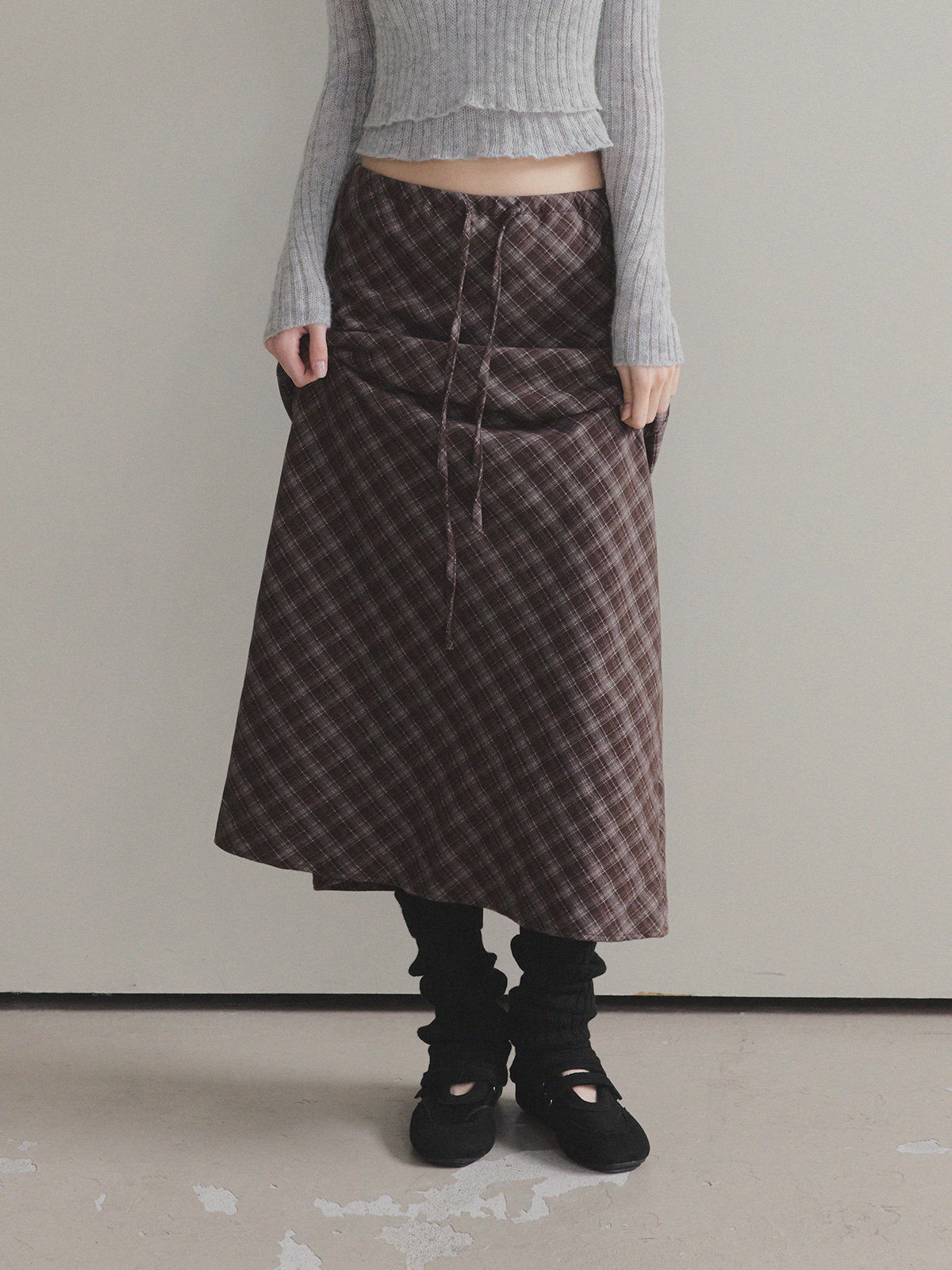 【TWEE】Bilson Check Banding Long Skirt