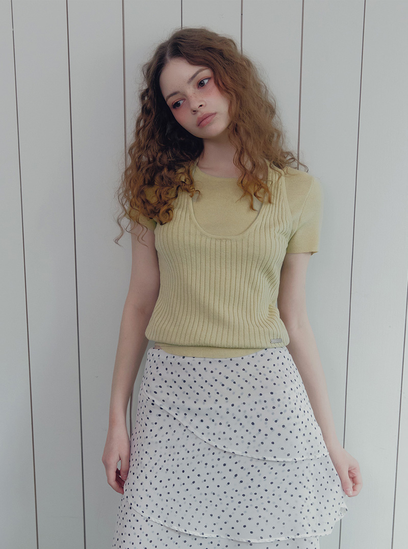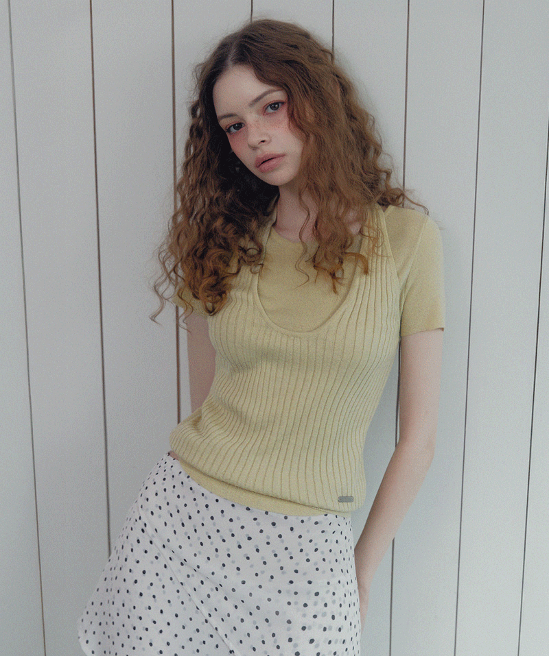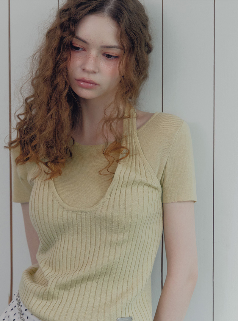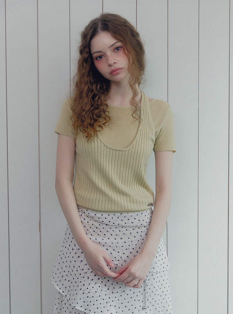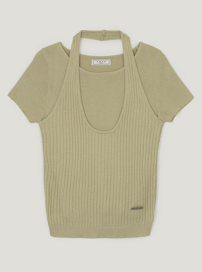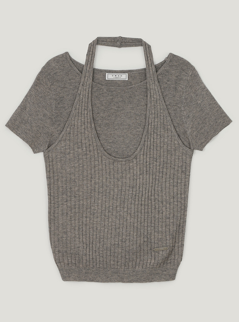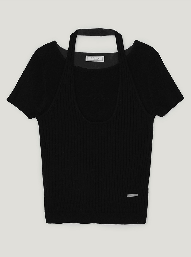 [TWEE] Canut Halter Neck Layered Short-Sleeve Knit
