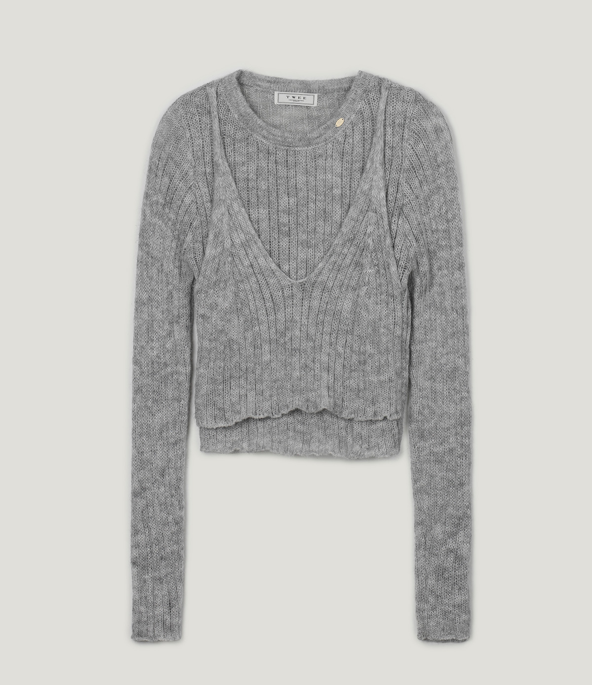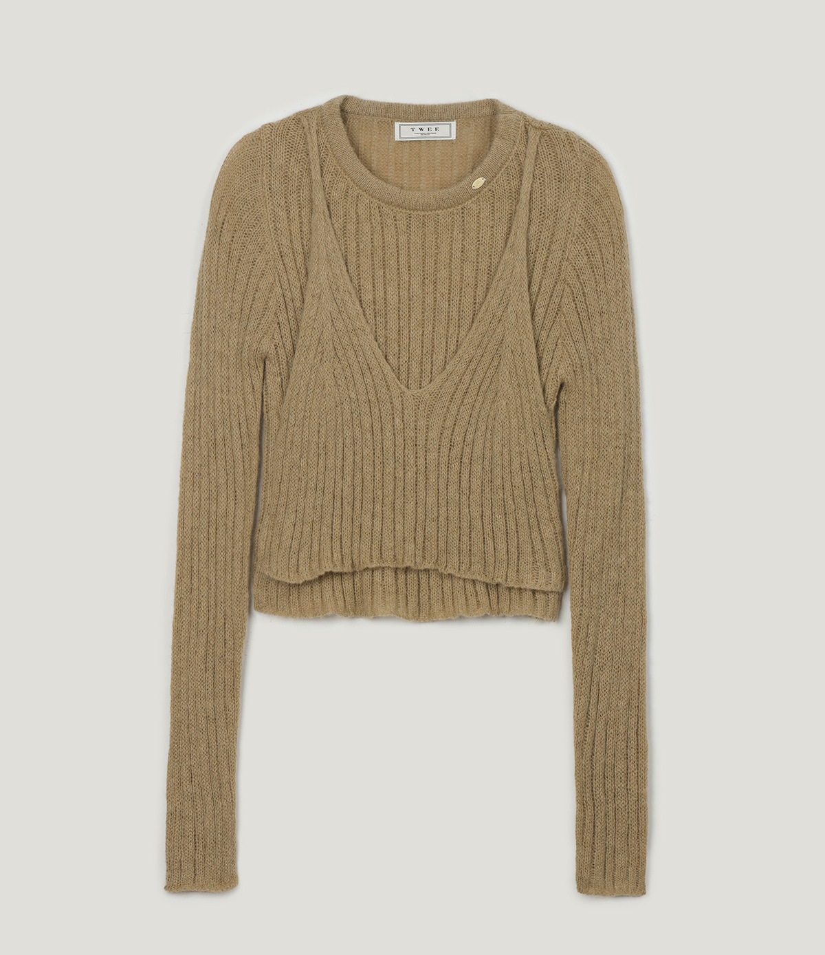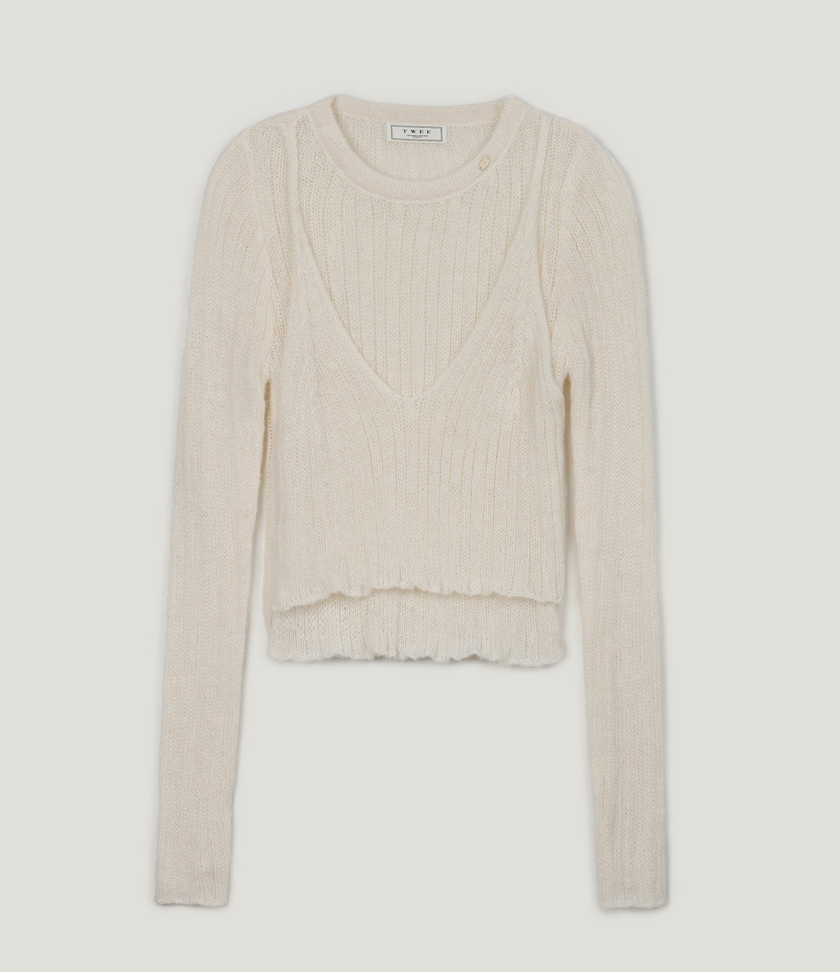 [TWEE] Conel Layered Crop Long-Sleeve Knit