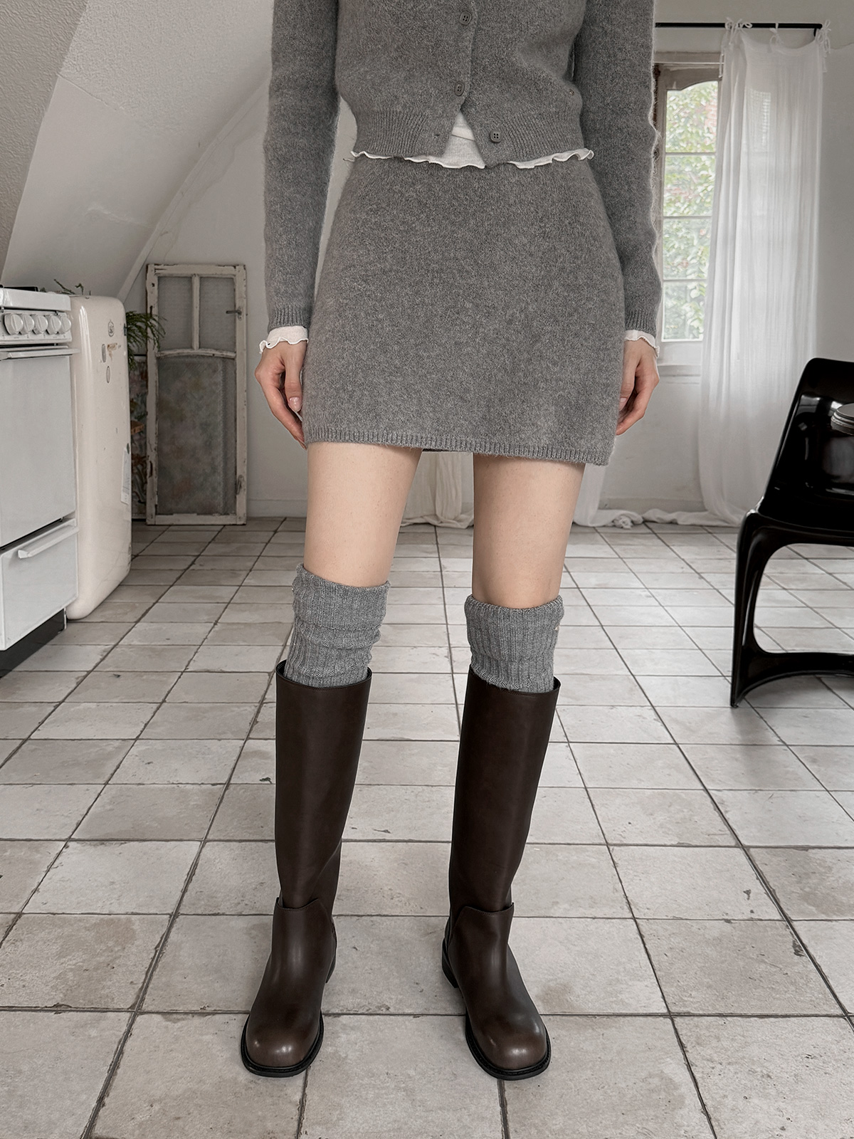 【TWEE】Enz Hair Knit Banding Mini Skirt
