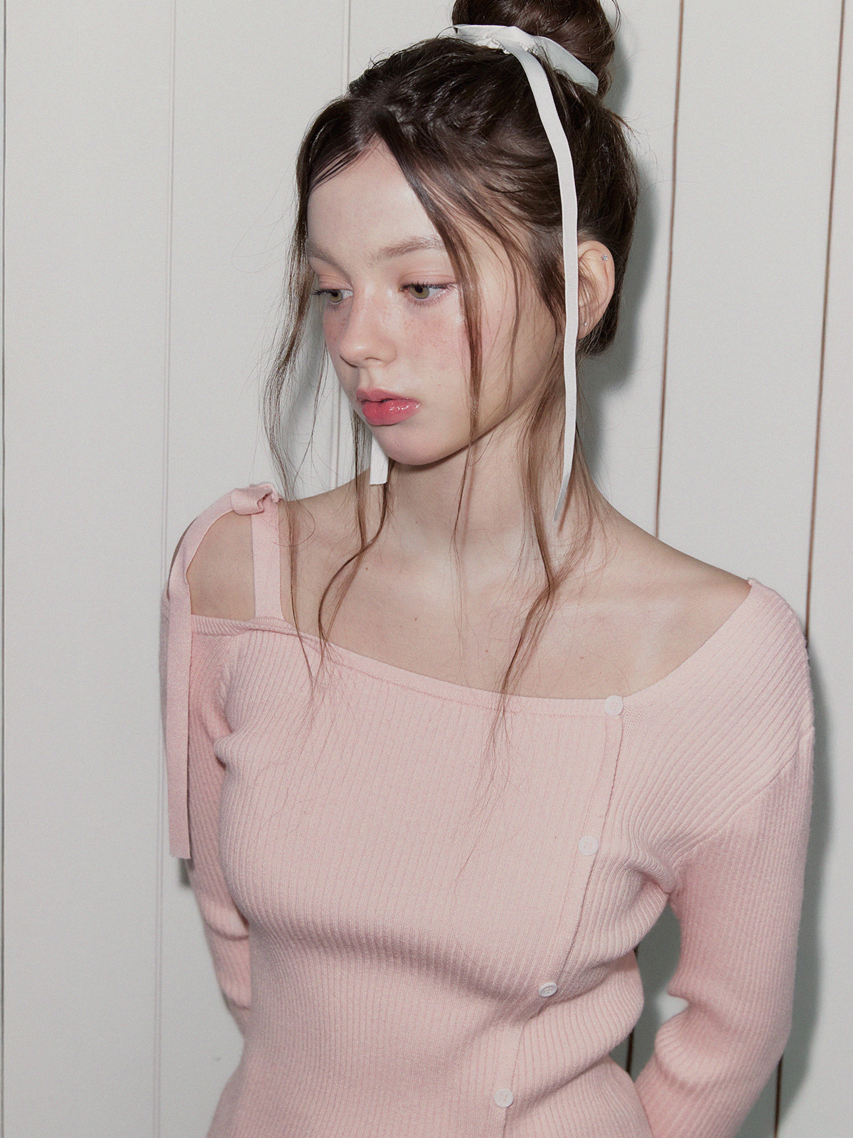 [TWEE] Morica Asym Off-Shoulder Long Sleeve Knit