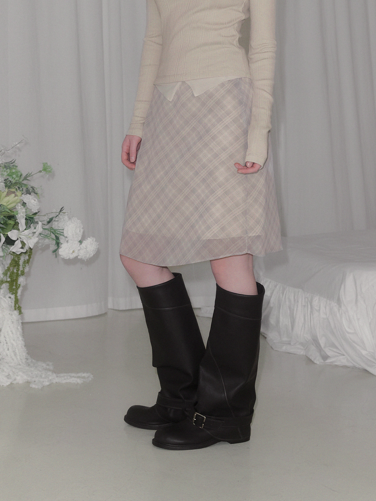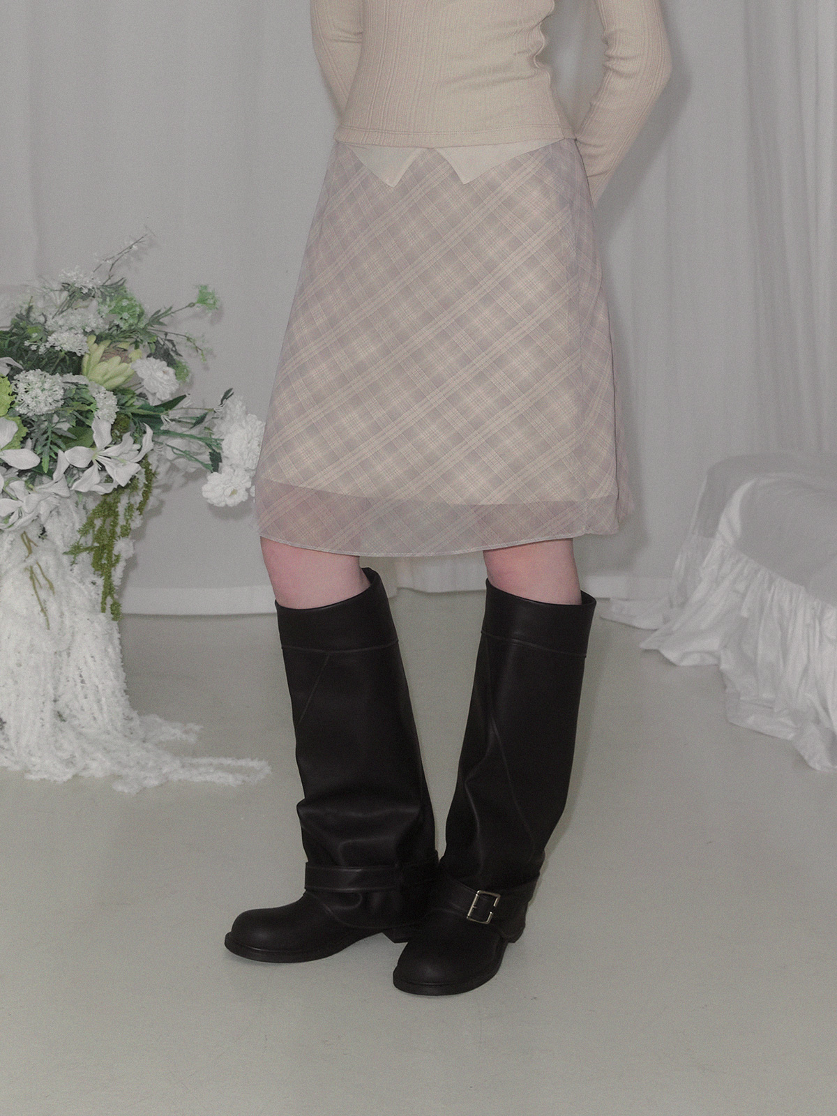 [TWEE] Mush check banding midi skirt