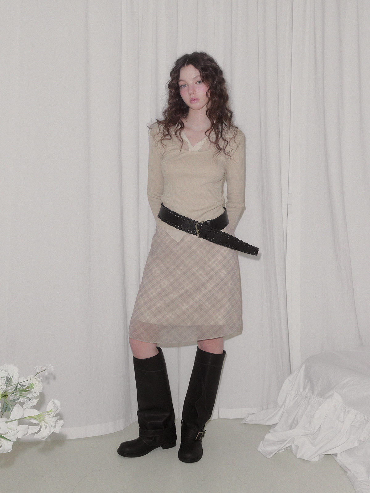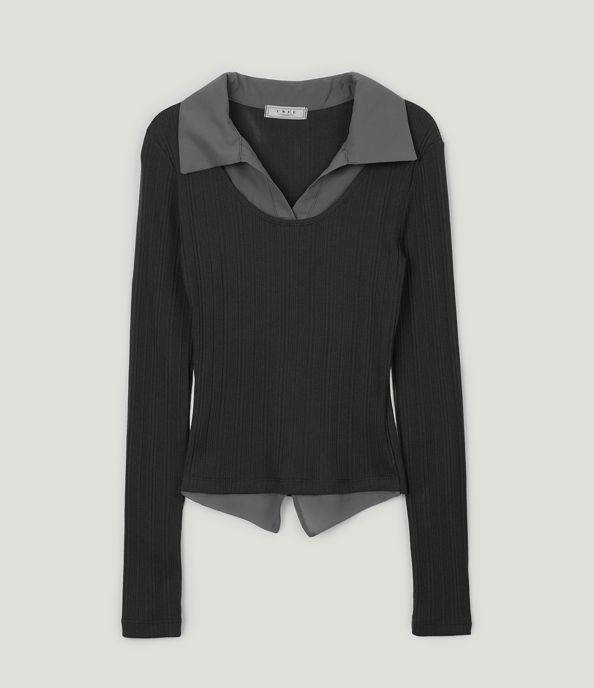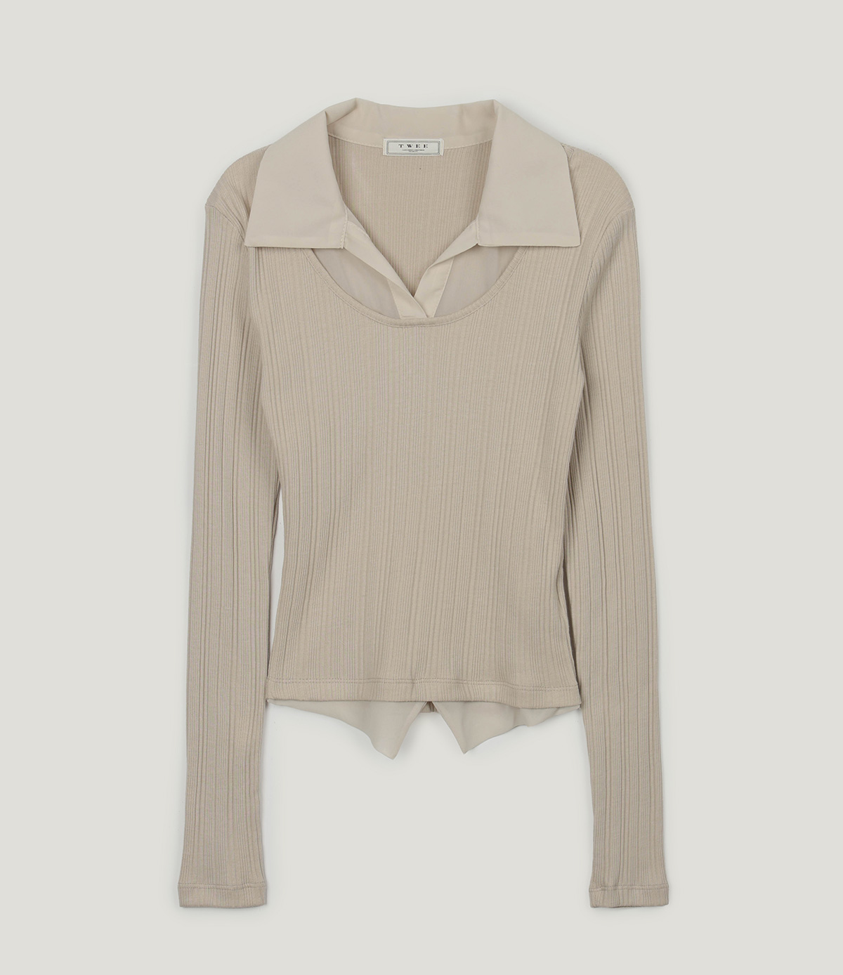 [TWEE] Revel sheer collar rib long sleeve t-shirt