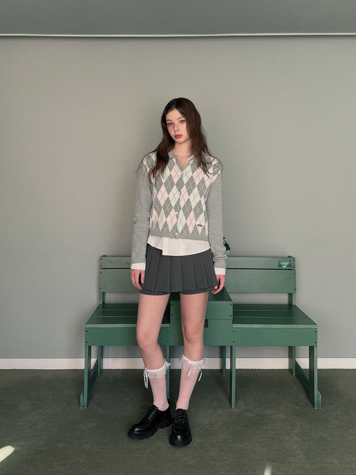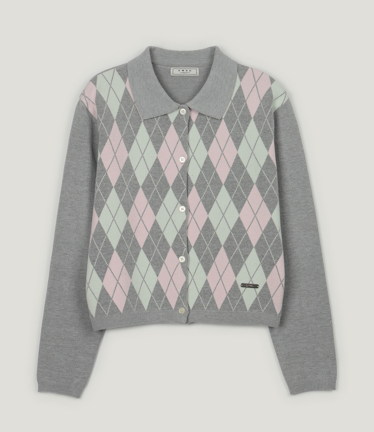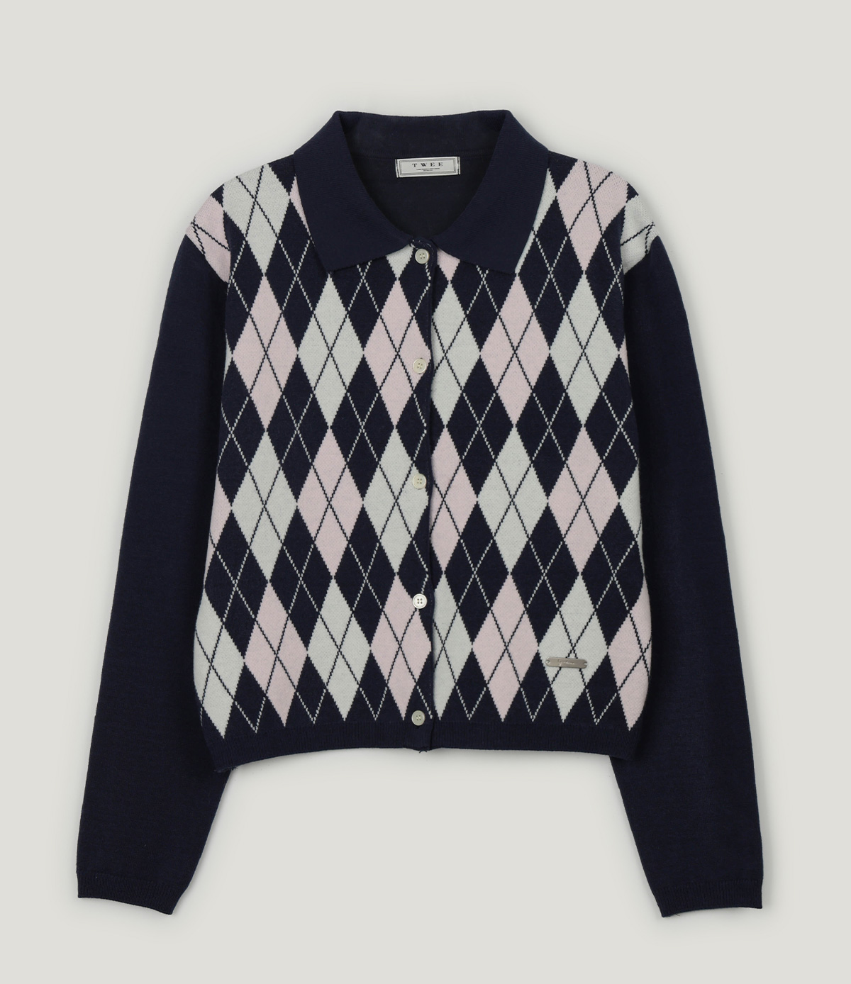 [TWEE] Romin Argyle Collar Long-Sleeve Cardigan