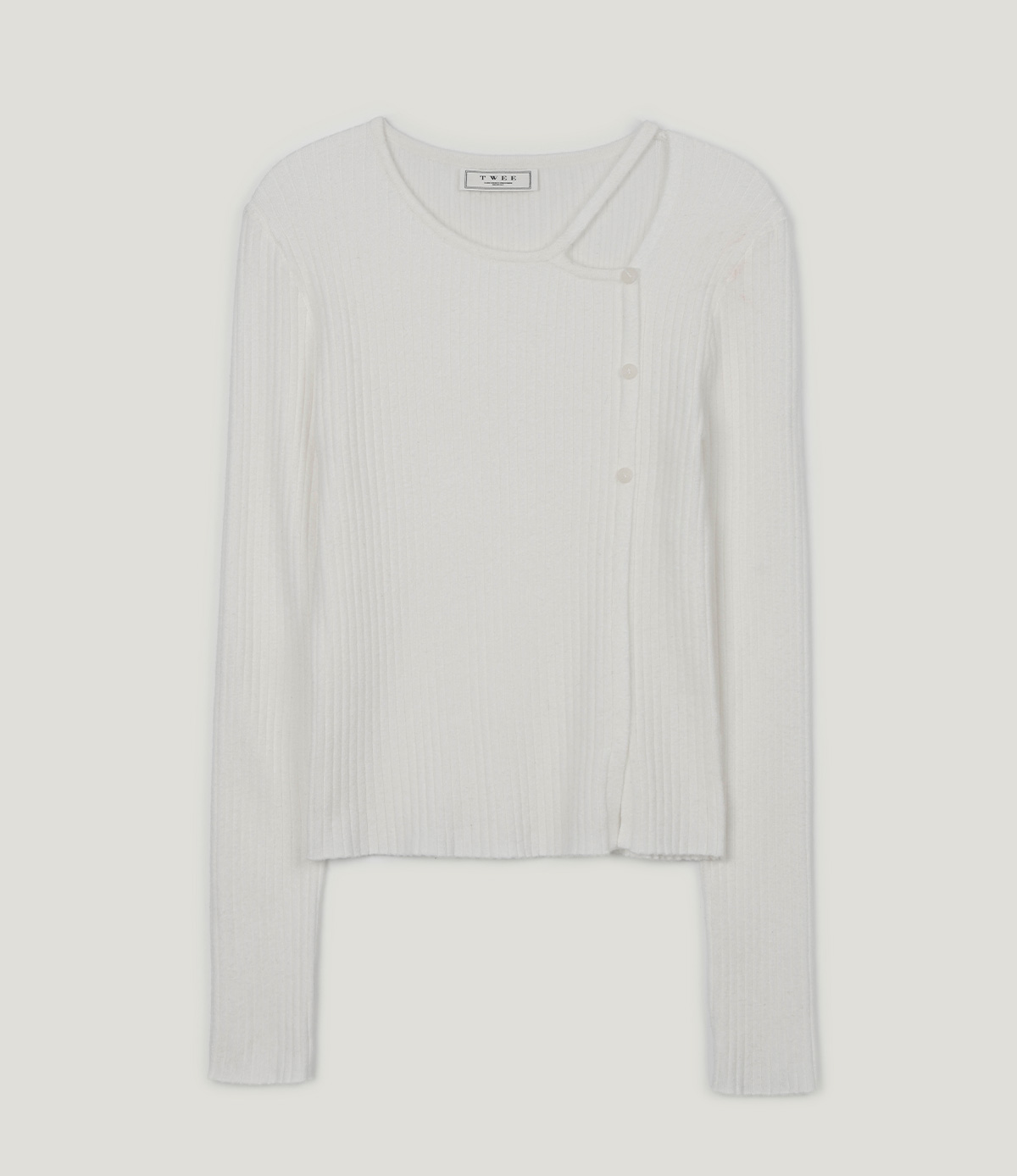 [TWEE] Marlon Asymmetrical Slit Button Long Sleeve Knit