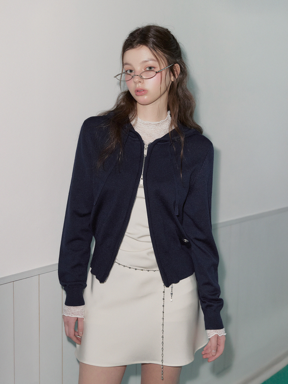 Product Name: Pollen Hood Knit Zip Cardigan