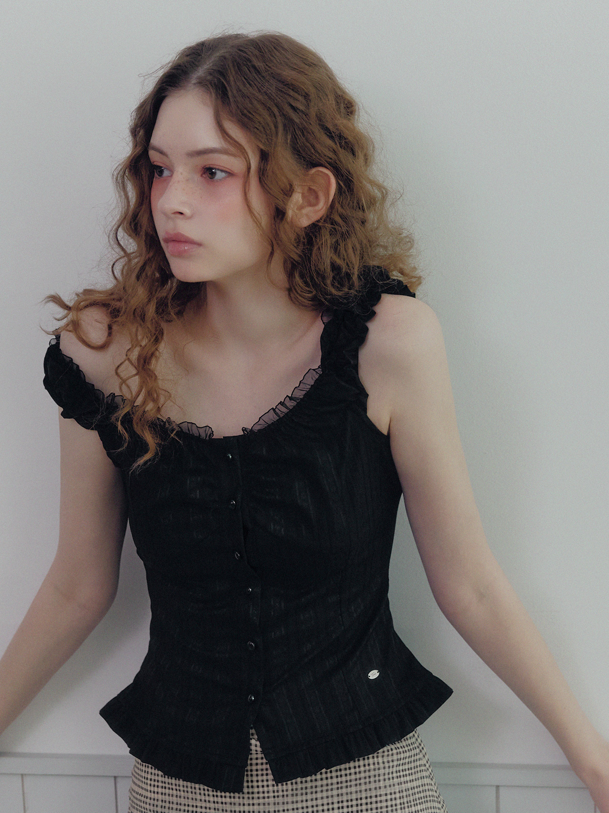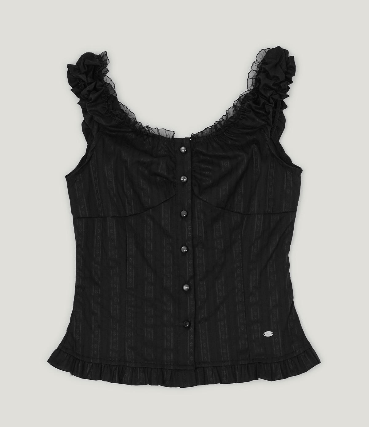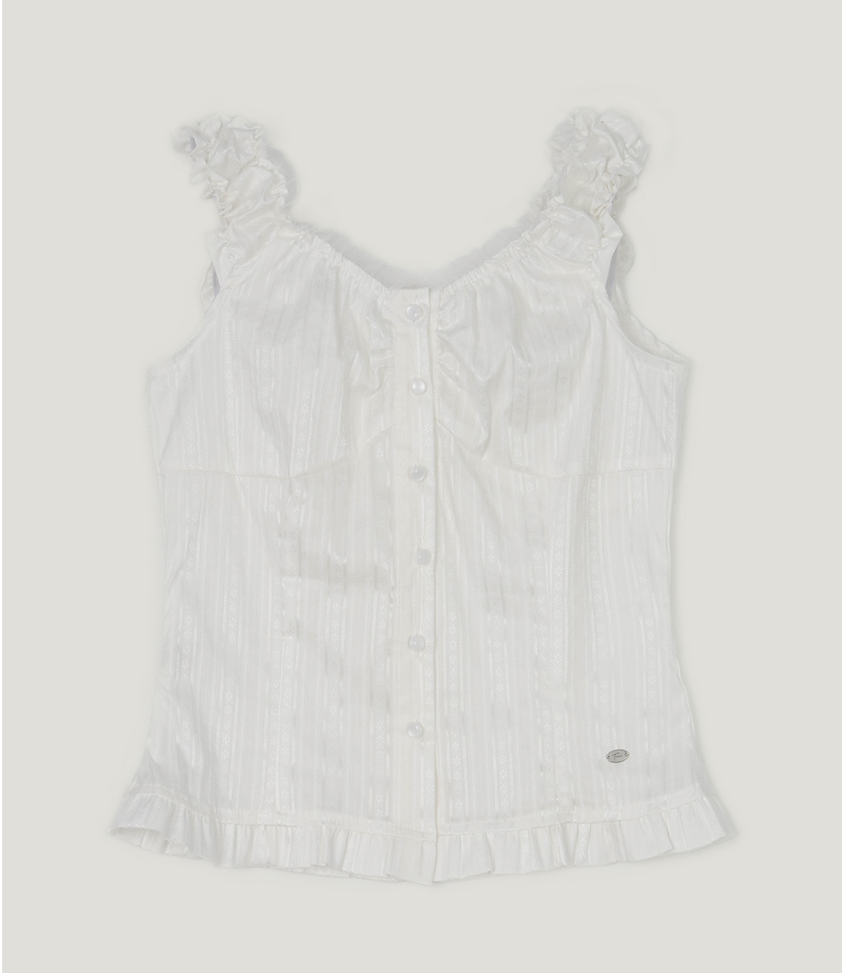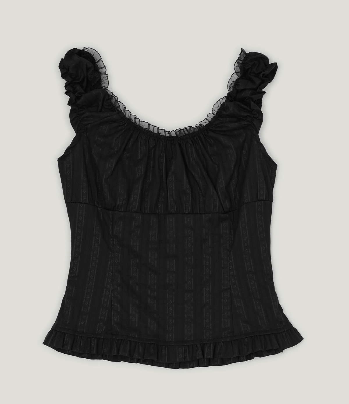 This women's sleeveless top highlights a delicate subtle pattern as its key design feature. Finished with banding trimming on the shoulder straps, it offers versatile styling from a regular fit to an elegant off-shoulder look. It pairs well with various bottoms to create a flattering, feminine silhouette.