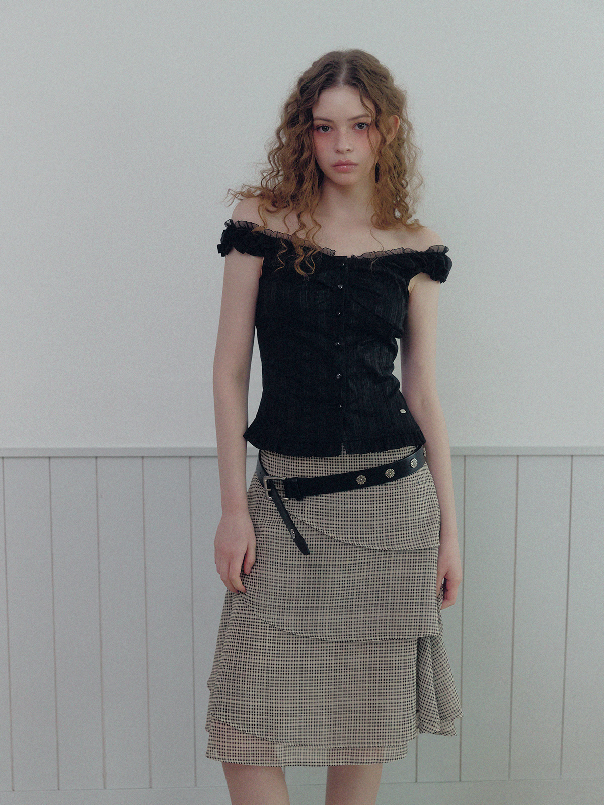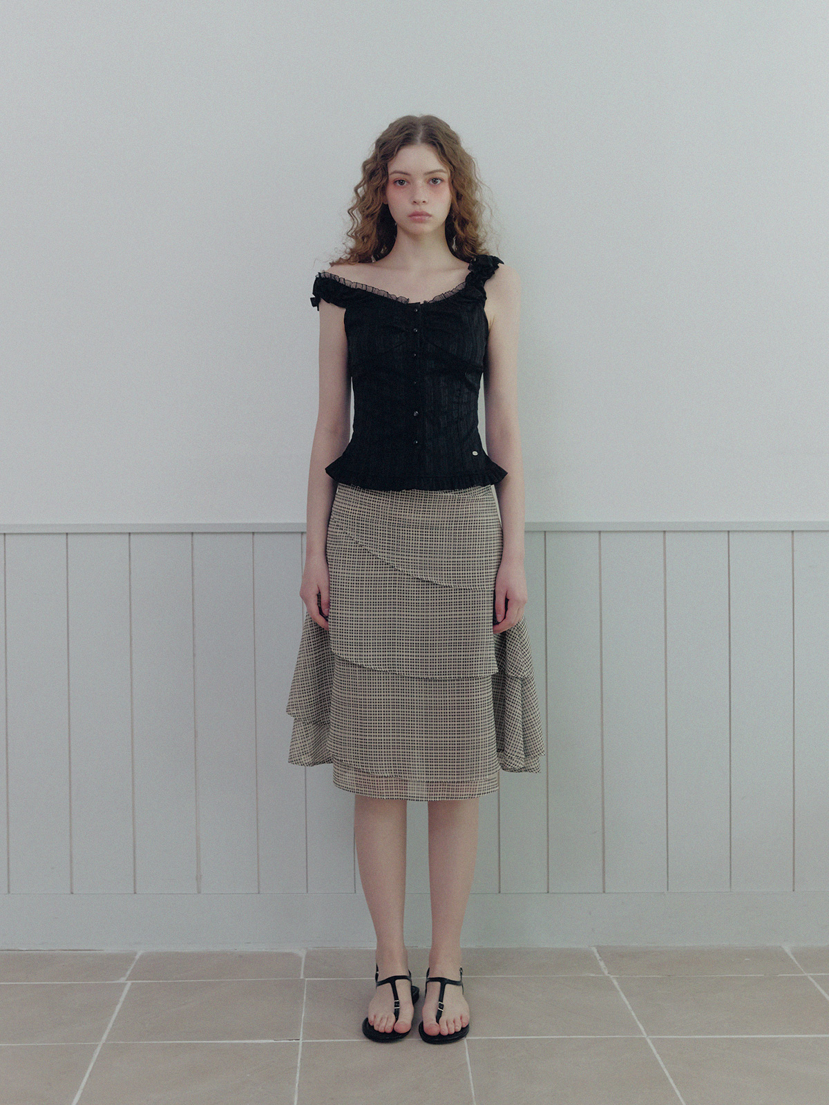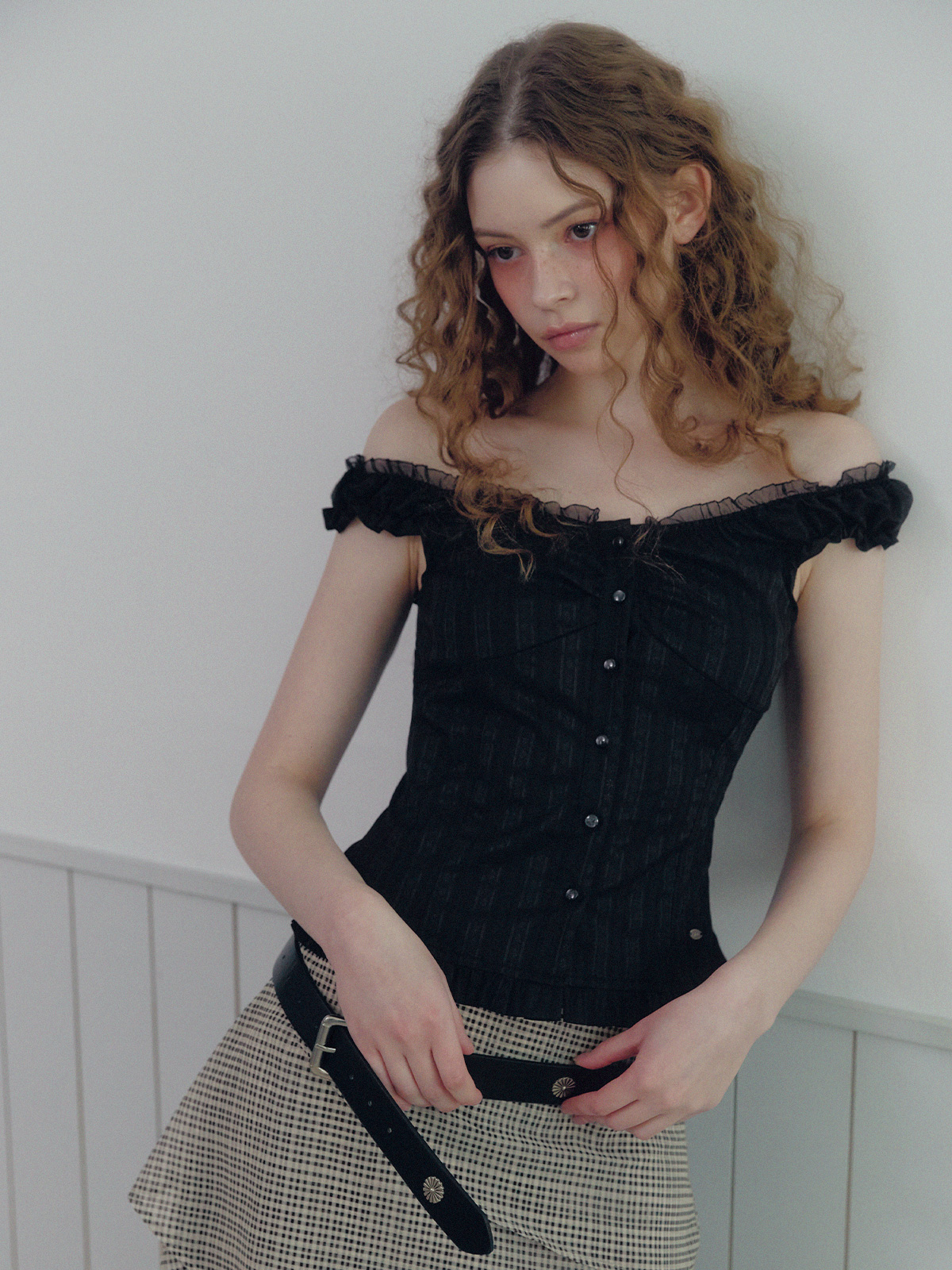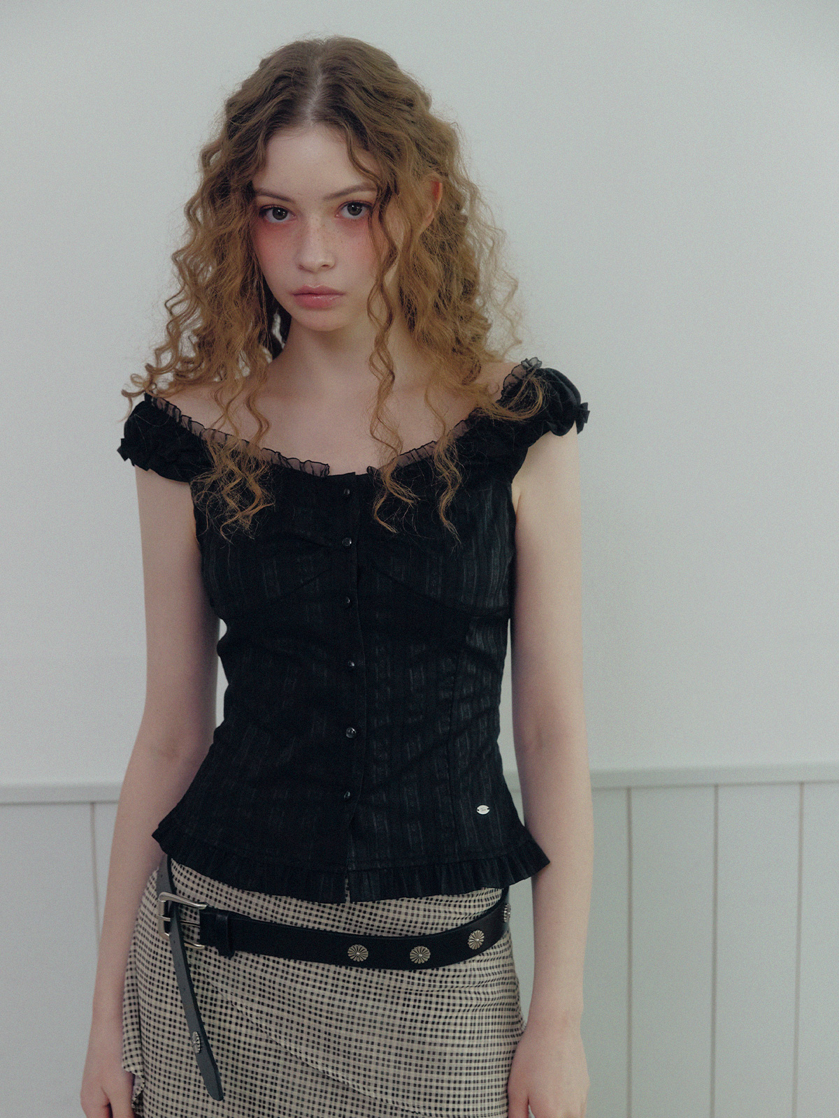 This women's sleeveless top highlights a delicate subtle pattern as its key design feature. Finished with banding trimming on the shoulder straps, it offers versatile styling from a regular fit to an elegant off-shoulder look. It pairs well with various bottoms to create a flattering, feminine silhouette.