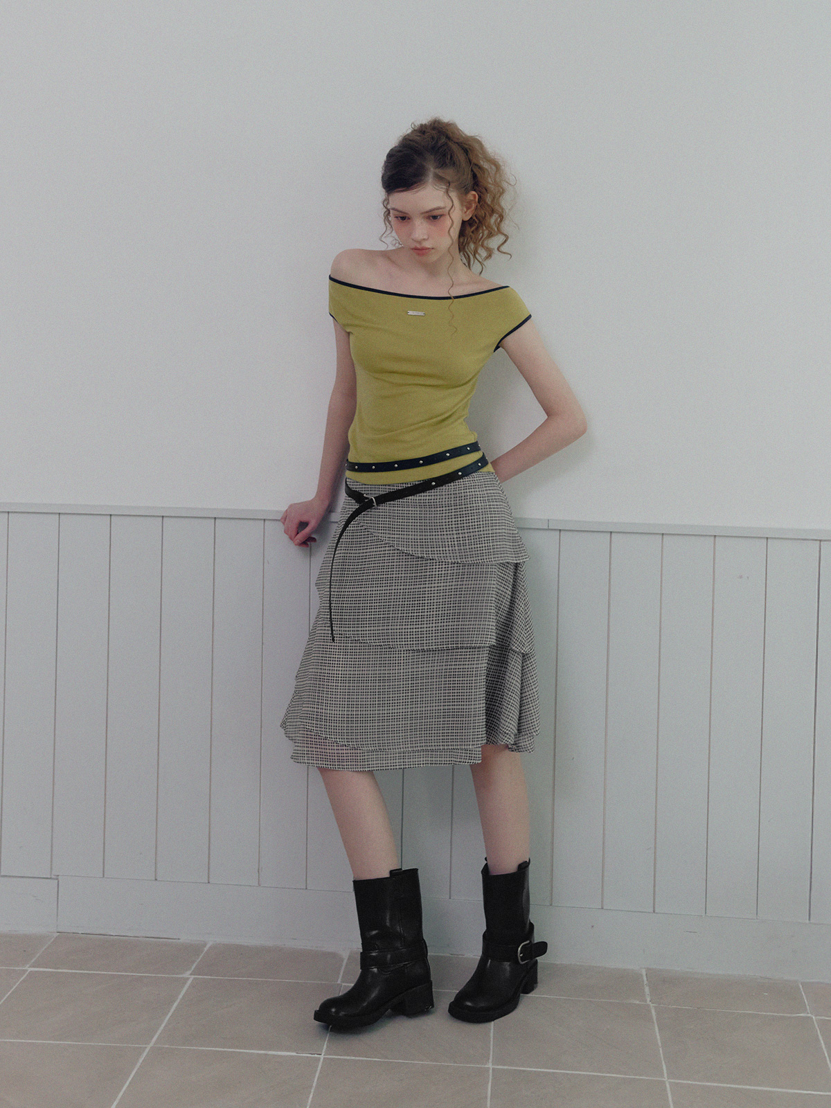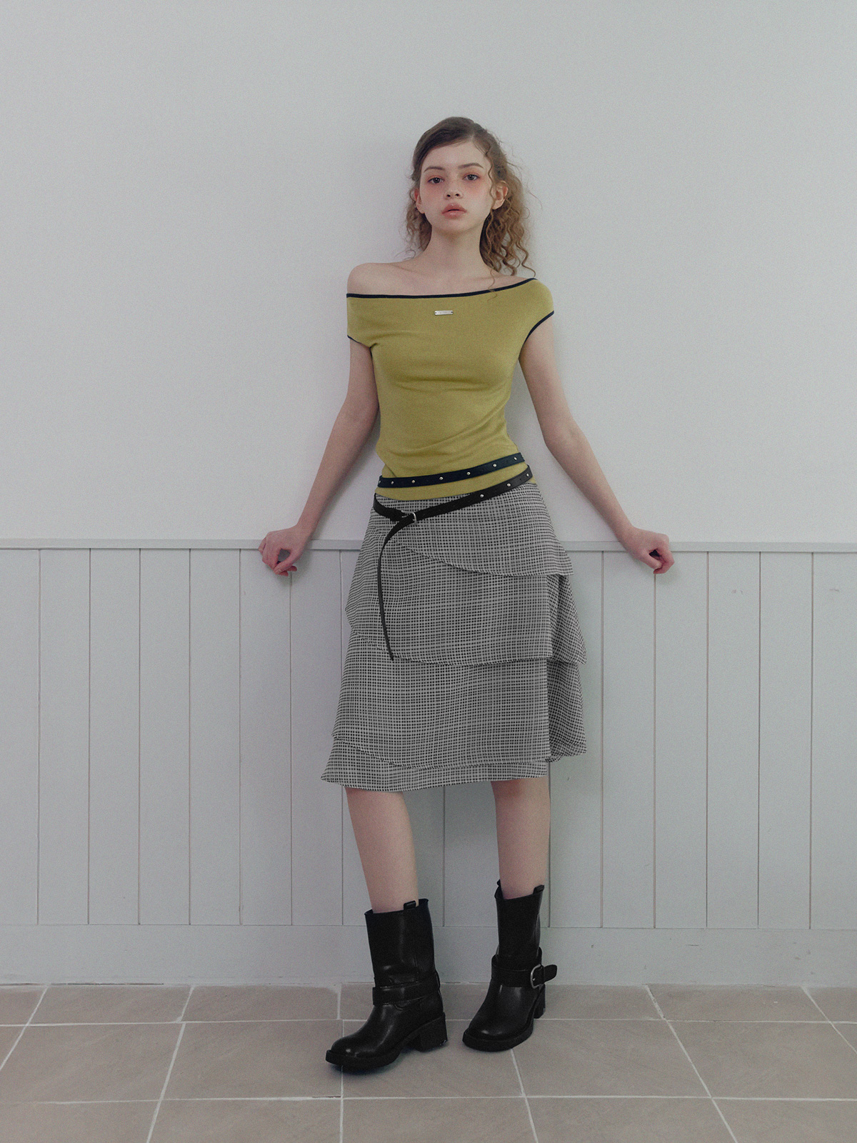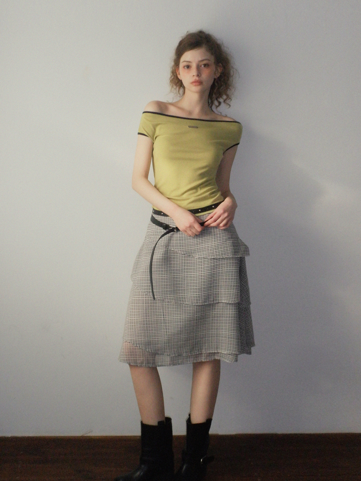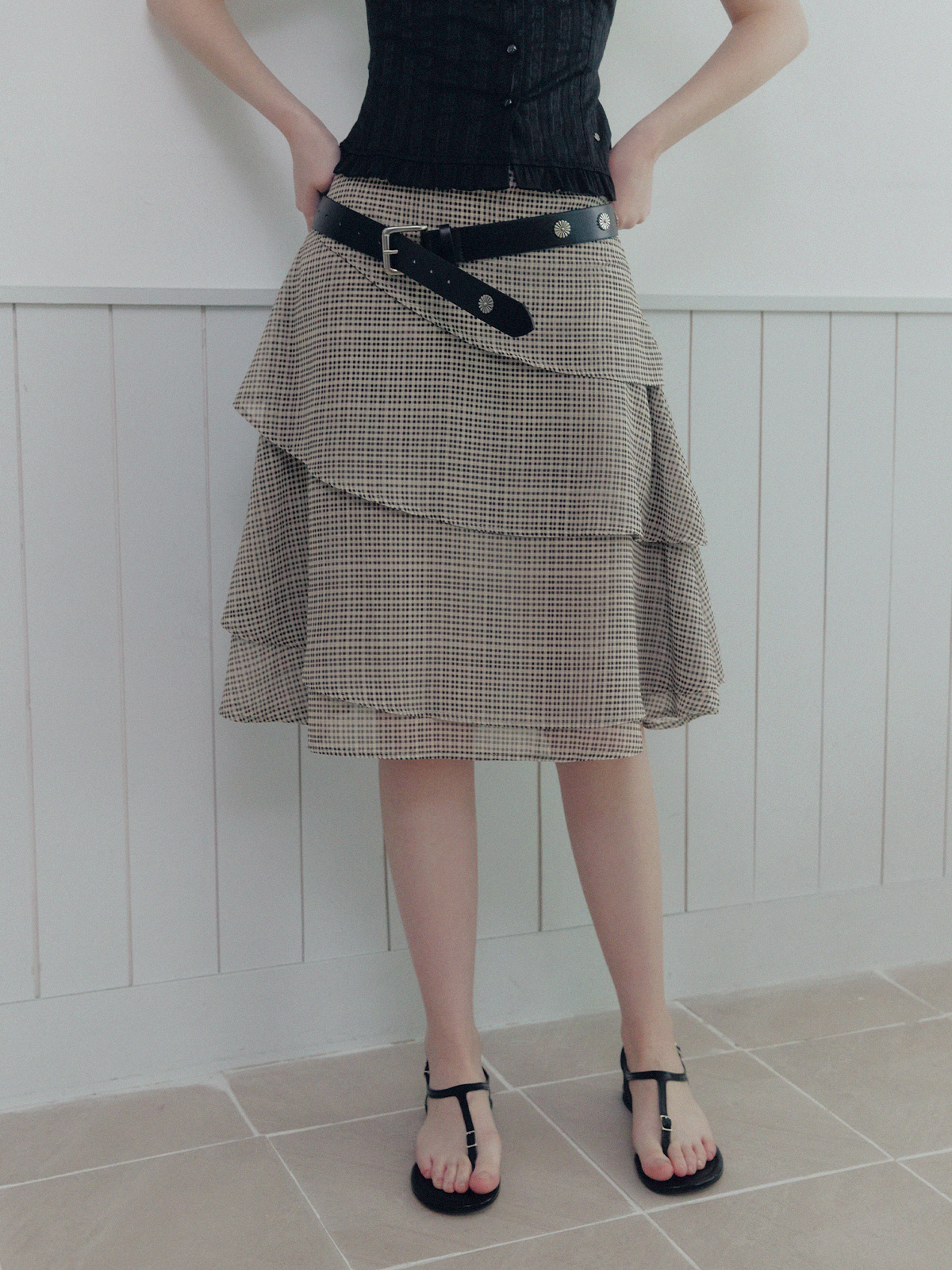 [TWEE] Valen Tiered Pattern Midi Skirt