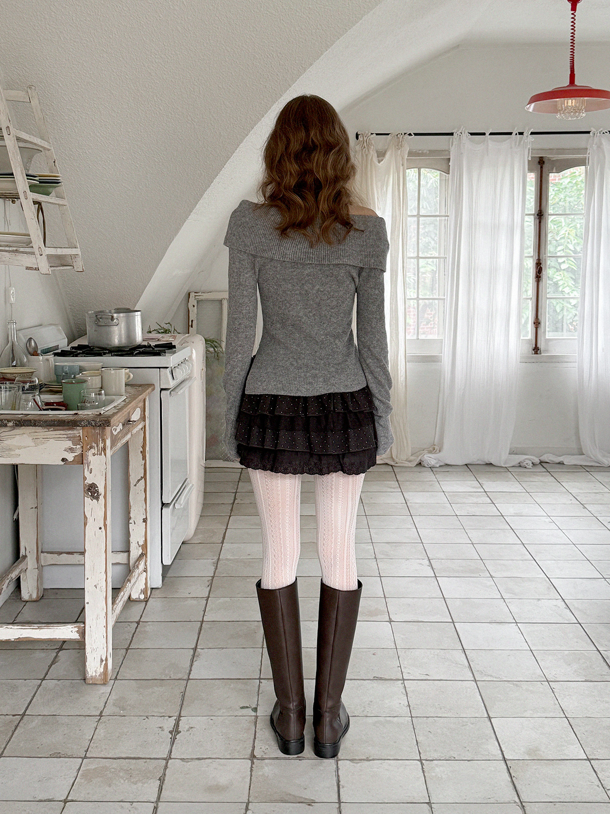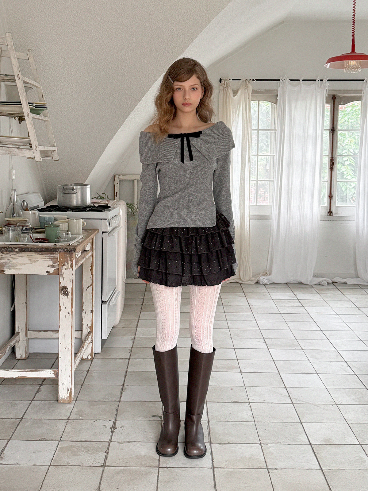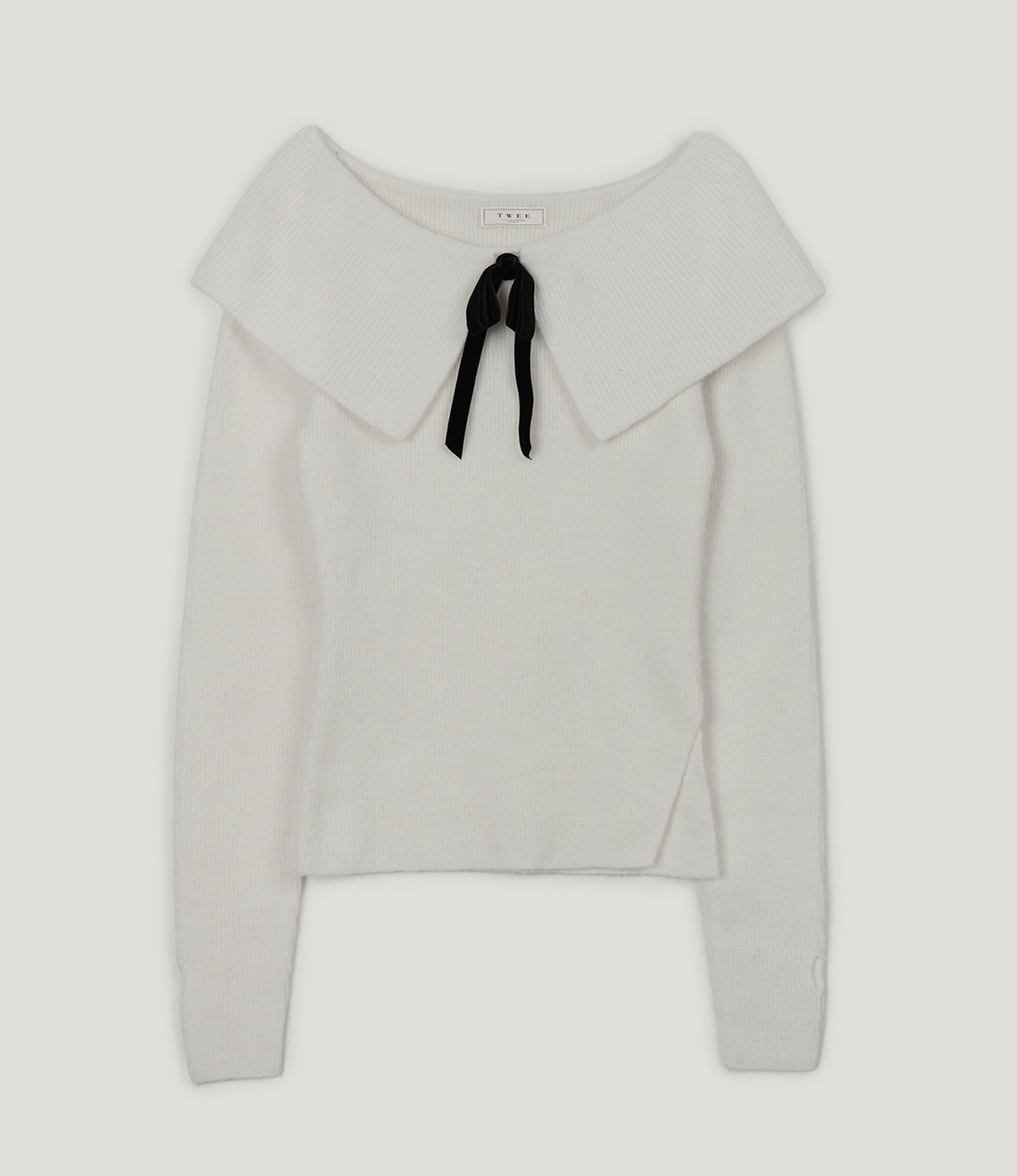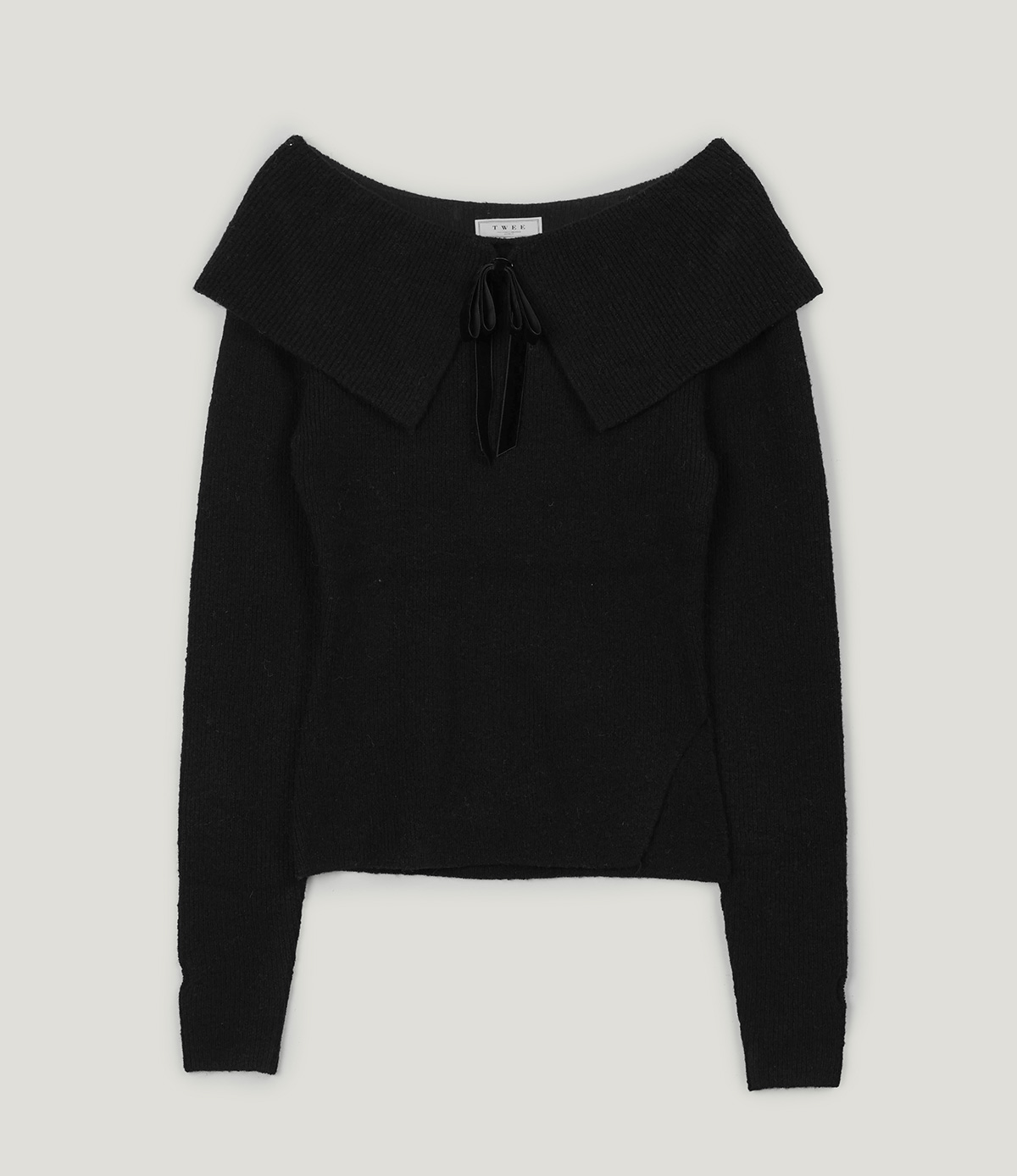 Product Name: Willn Ribbon Brooch Off-Shoulder Knit