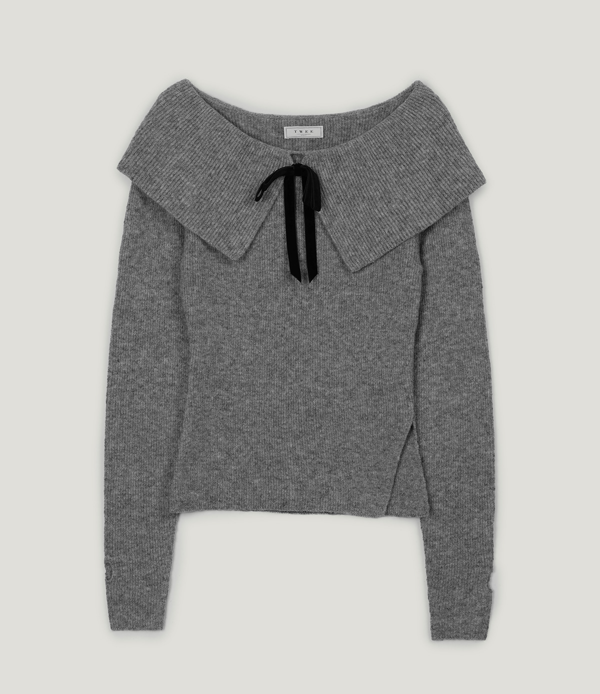 【TWEE】Willn Ribbon Brooch Off-Shoulder Knit