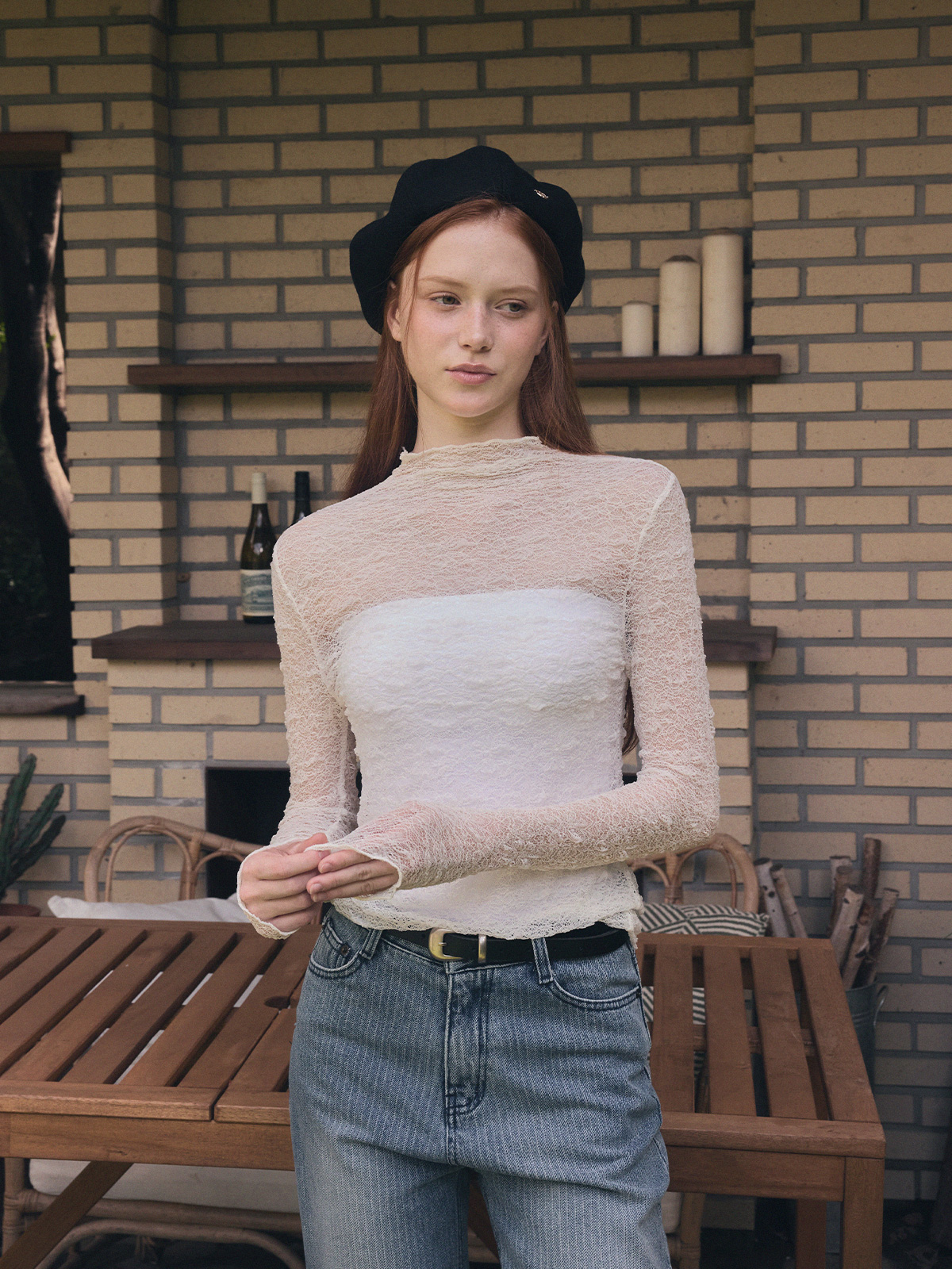 【TWEE】Wooden Sheer Wrinkle Long-Sleeve T-Shirt