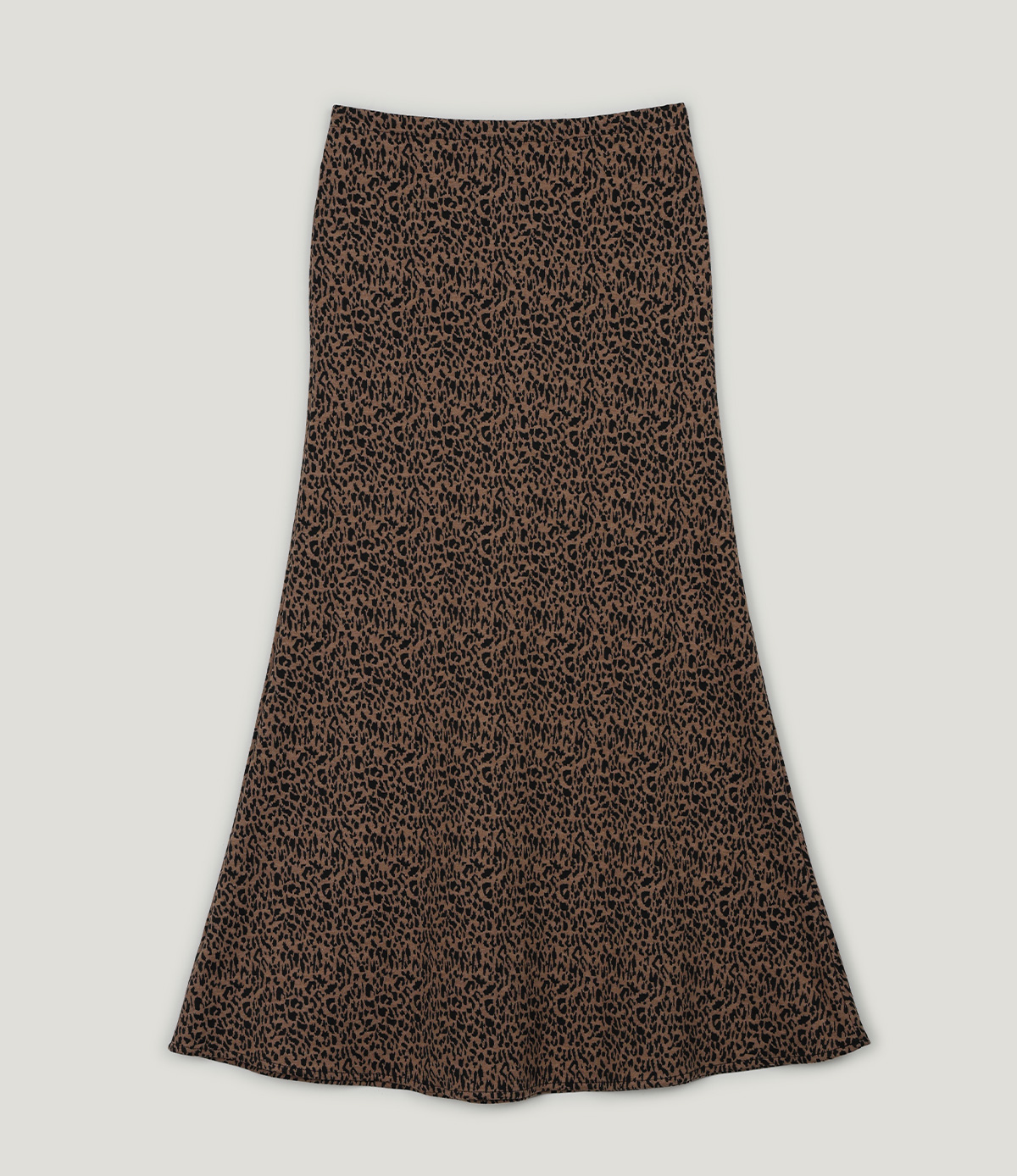 Chiếc chân váy dài sành điệu này có họa tiết báo. Eo chun mang lại sự vừa vặn thoải mái, và kiểu dáng hơi loe nhẹ giúp che đi phần mỡ thừa quanh chân đồng thời tạo dáng vẻ thon gọn.