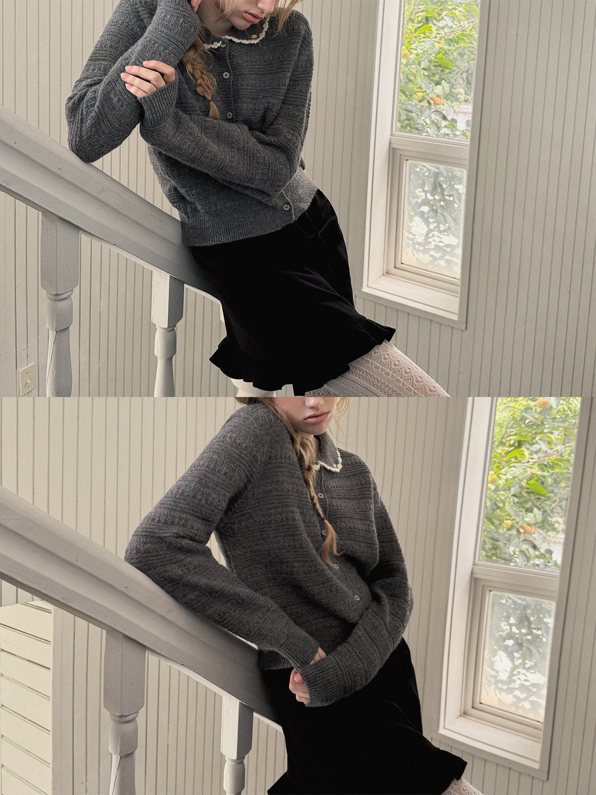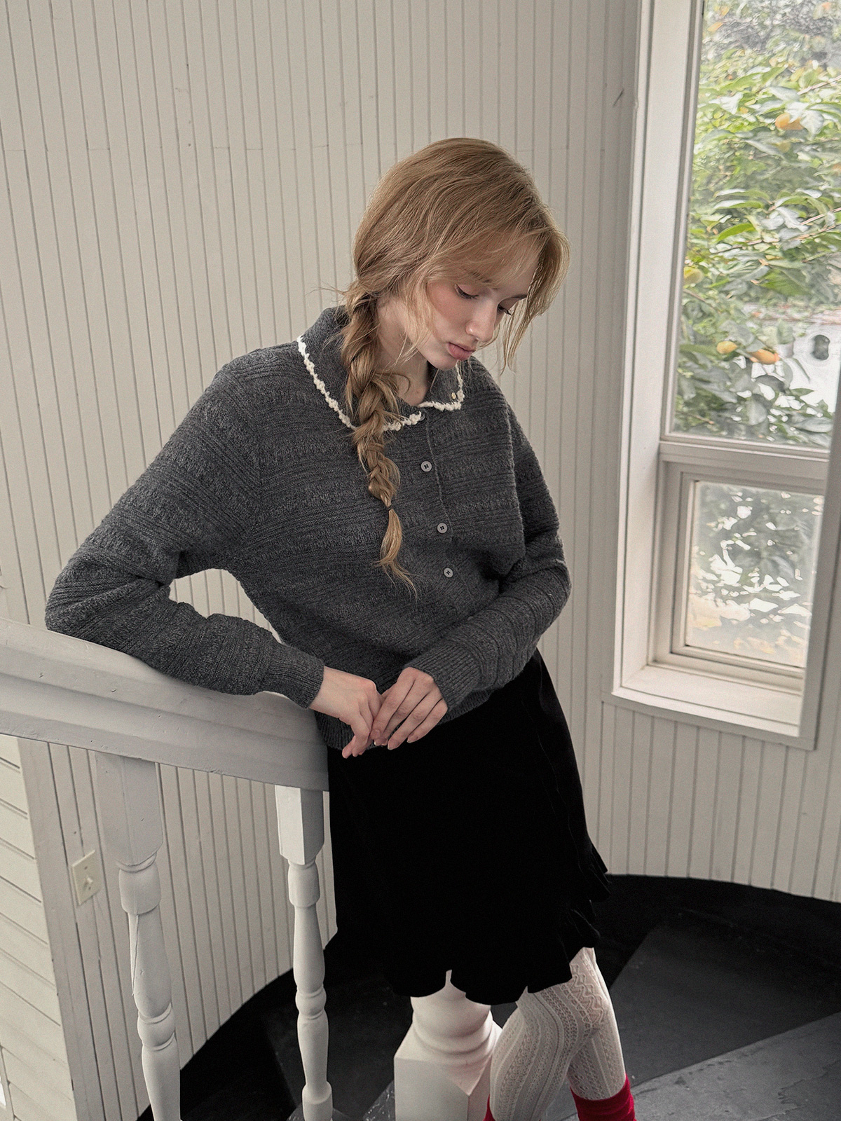 [TWEE] Áo Cardigan Len Họa Tiết Cổ Đối Lập Molly