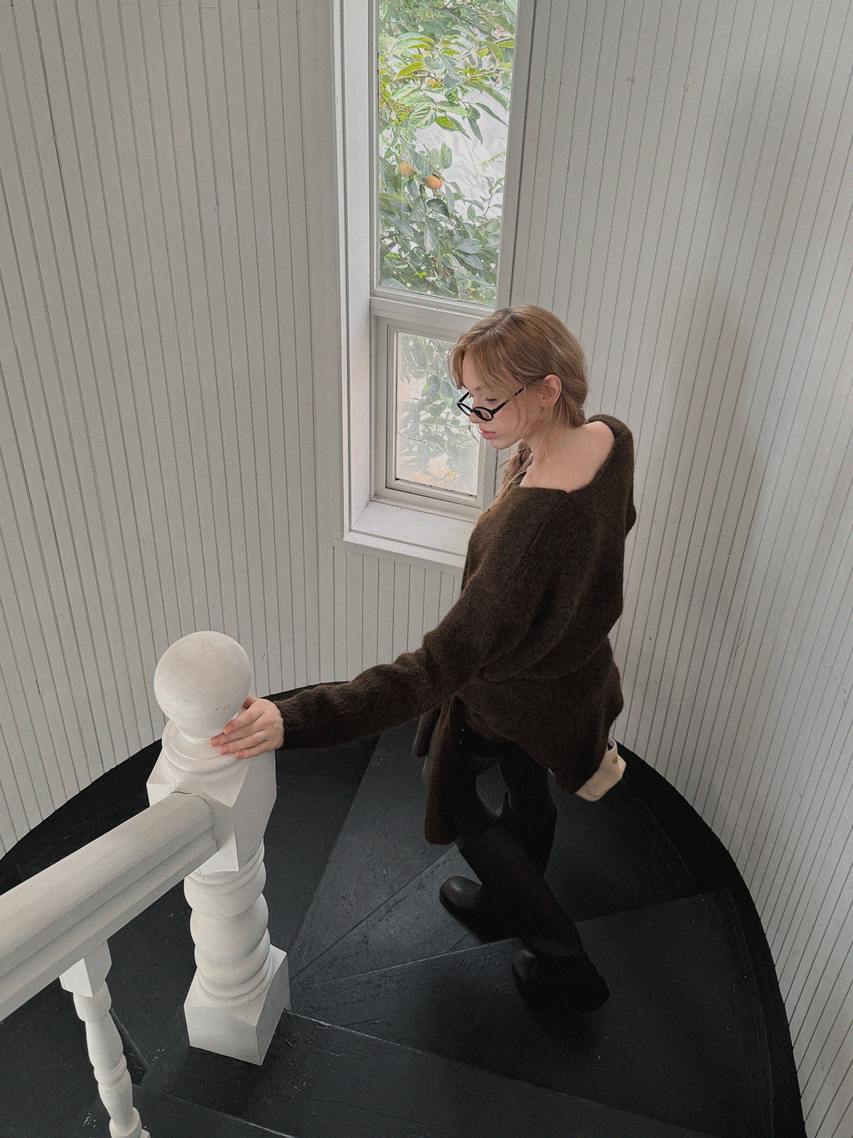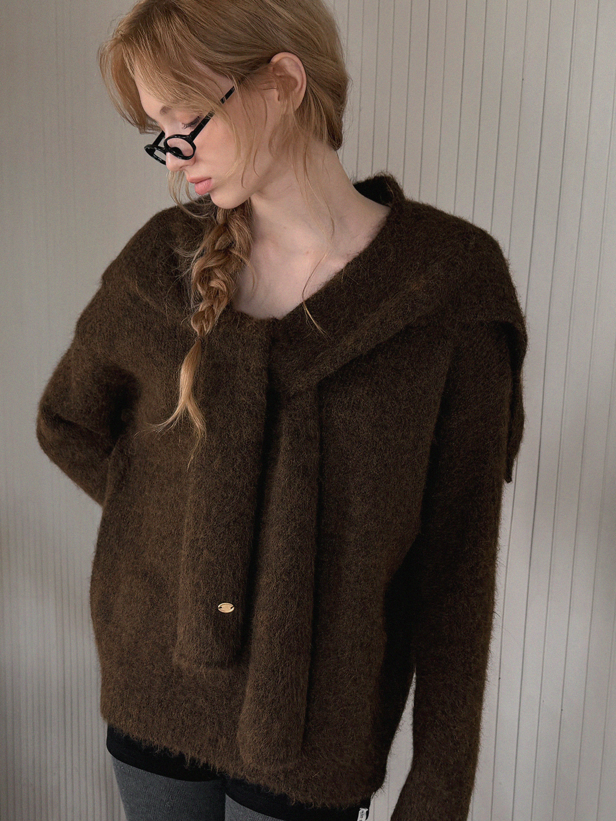 Tên sản phẩm: Áo len cổ V dáng rộng Noun (kèm quấn)