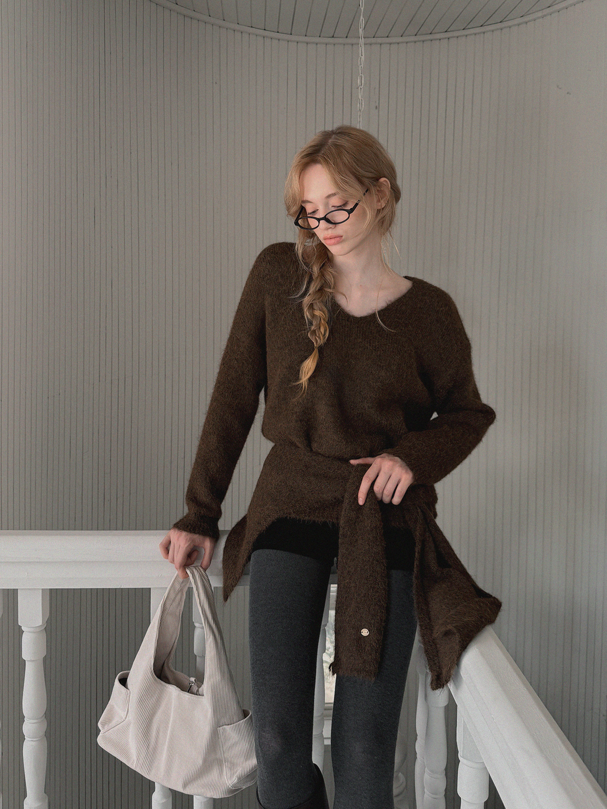 [TWEE] Áo Len Cổ Chữ V Dáng Rộng (có Wrap)