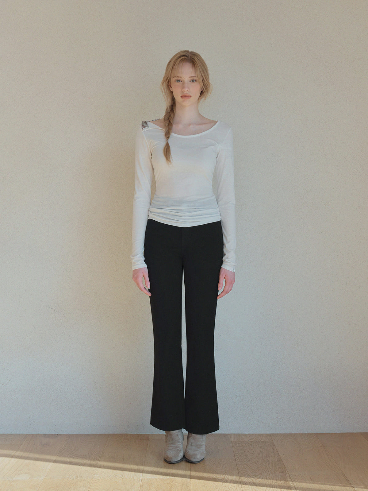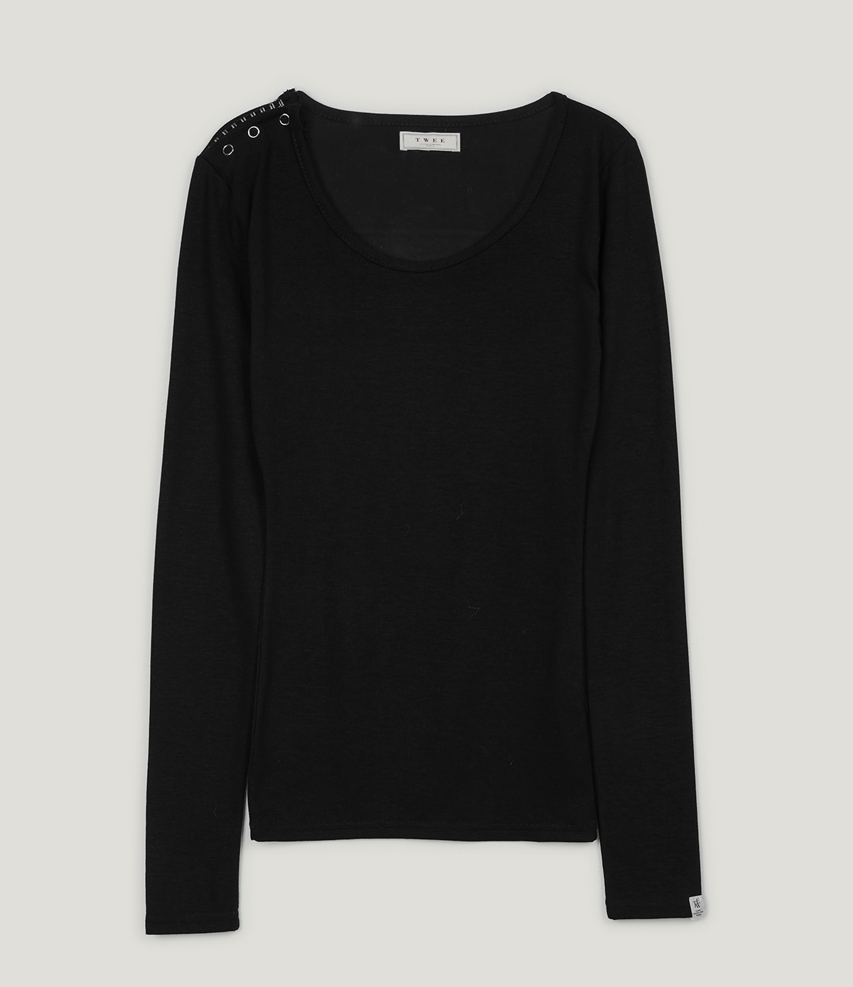 [TWEE] Áo Thun Tay Dài Cổ U Nút Bấm Pooden