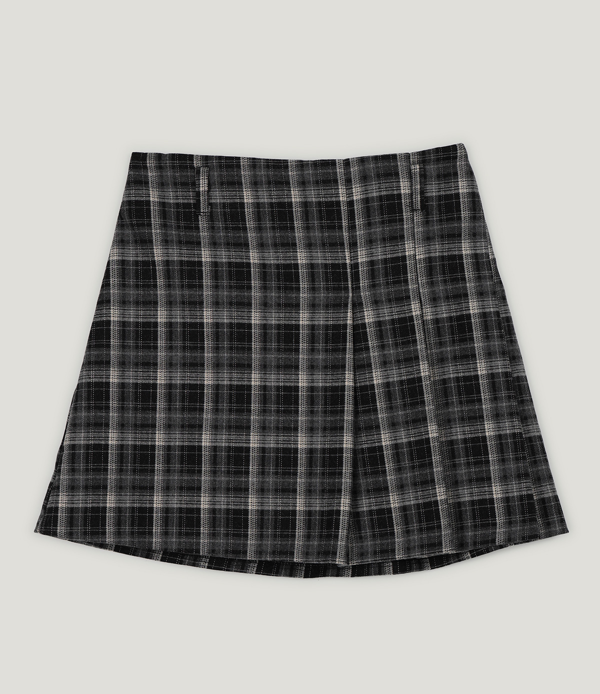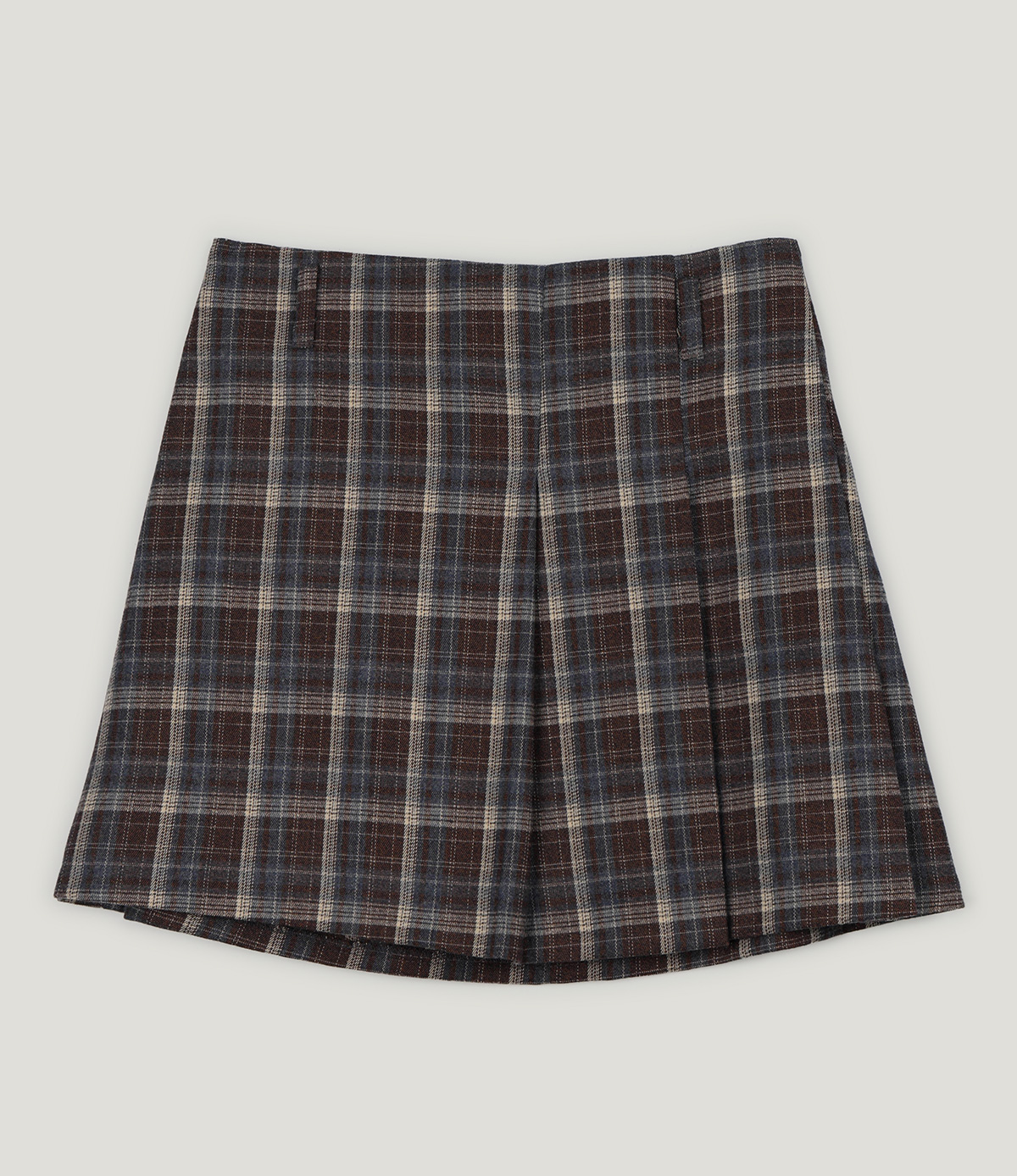 [TWEE] Tours Check Unbalance Pintuck Mini Skirt