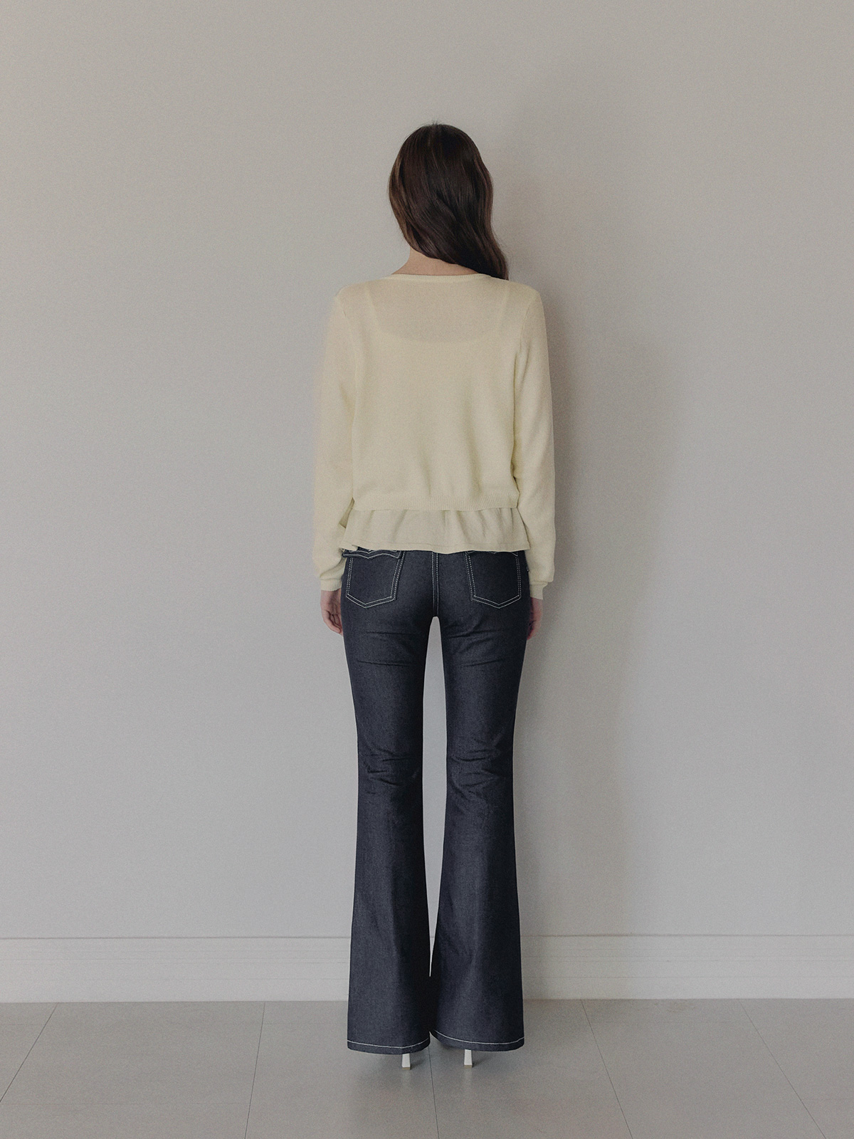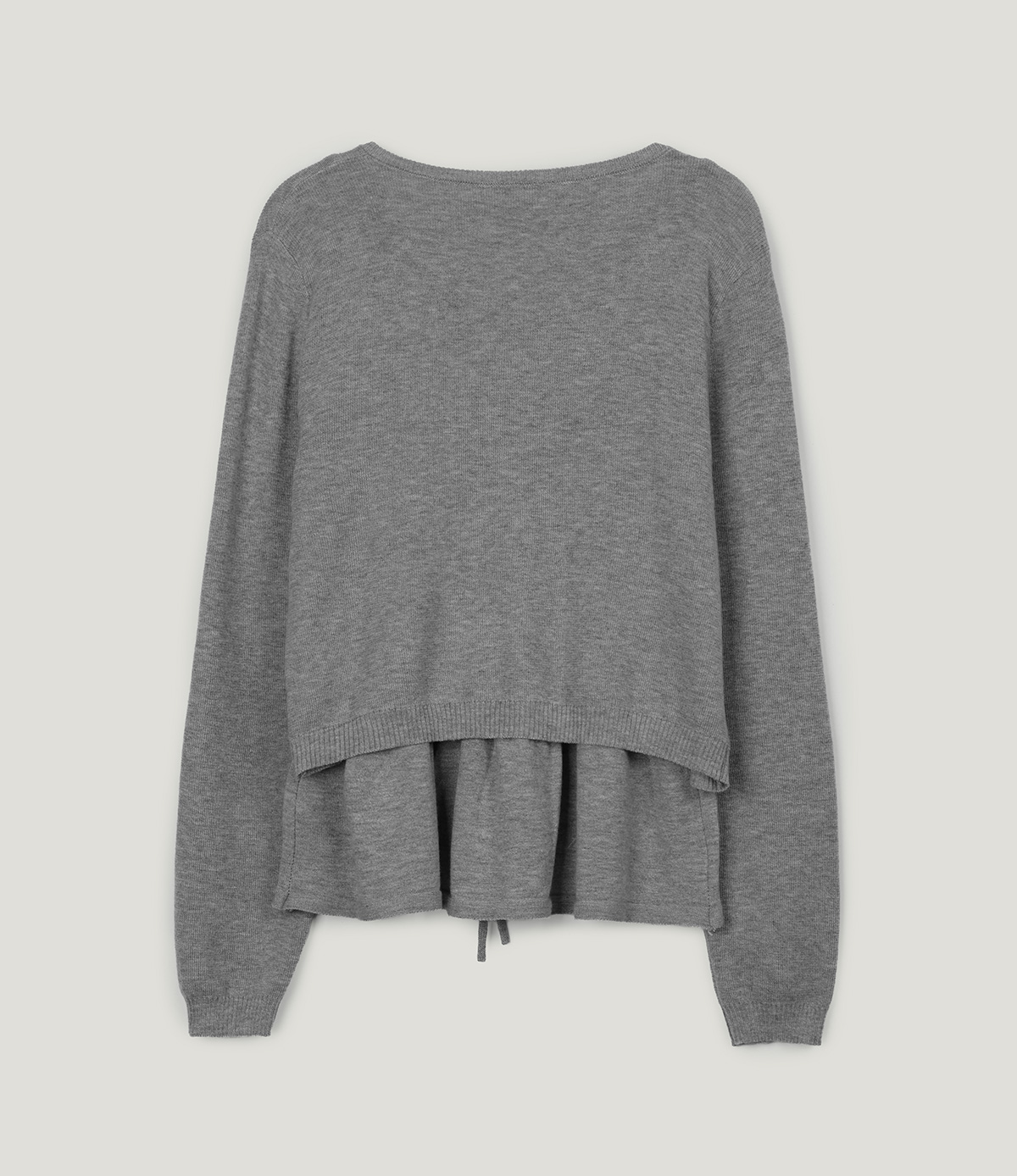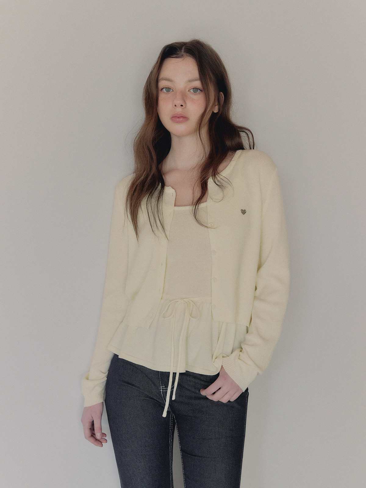 这套装包含一件喇叭廓形无袖上衣和一件配套开衫,打造出女性化的轮廓和轻盈的层次感。