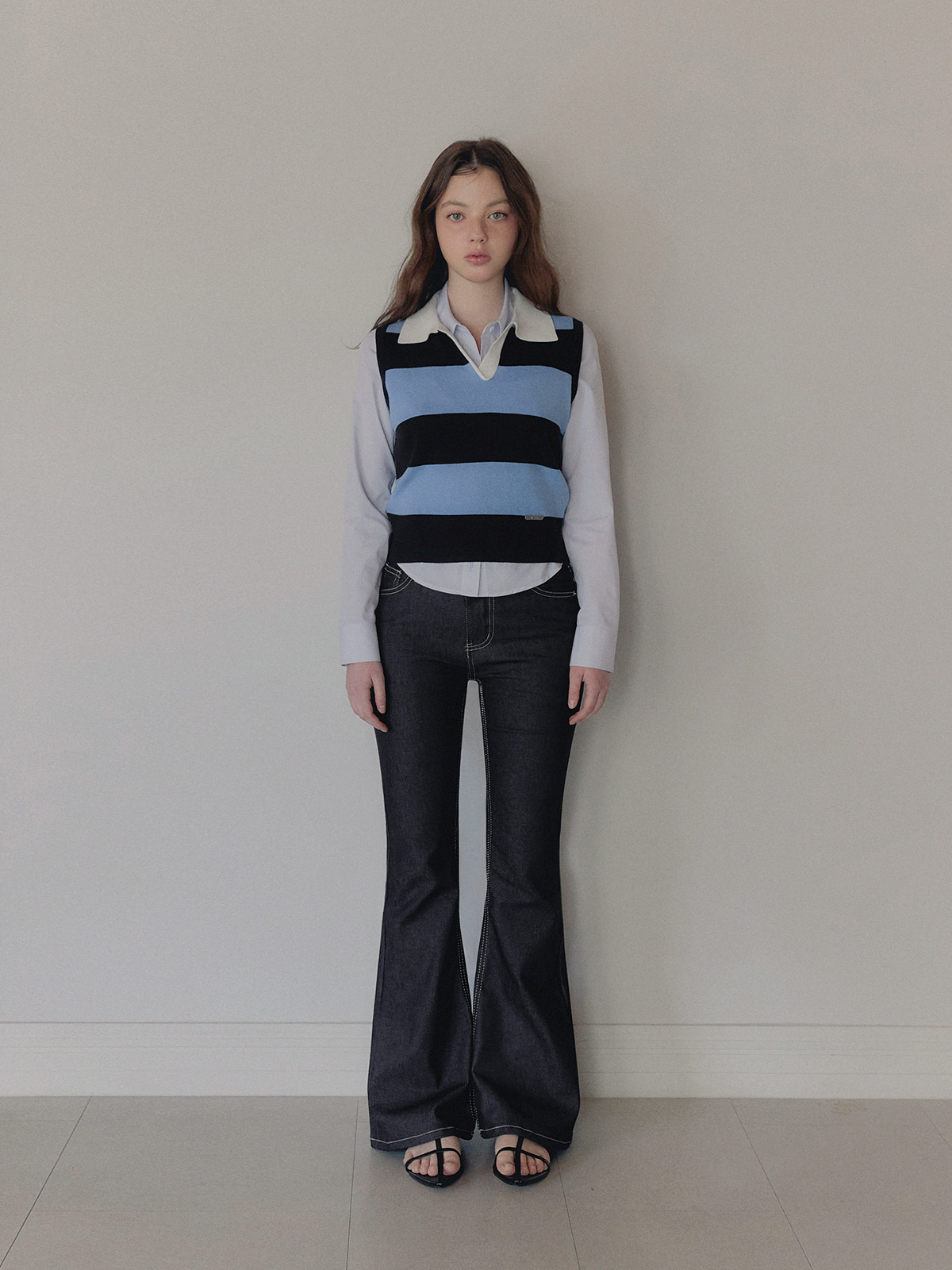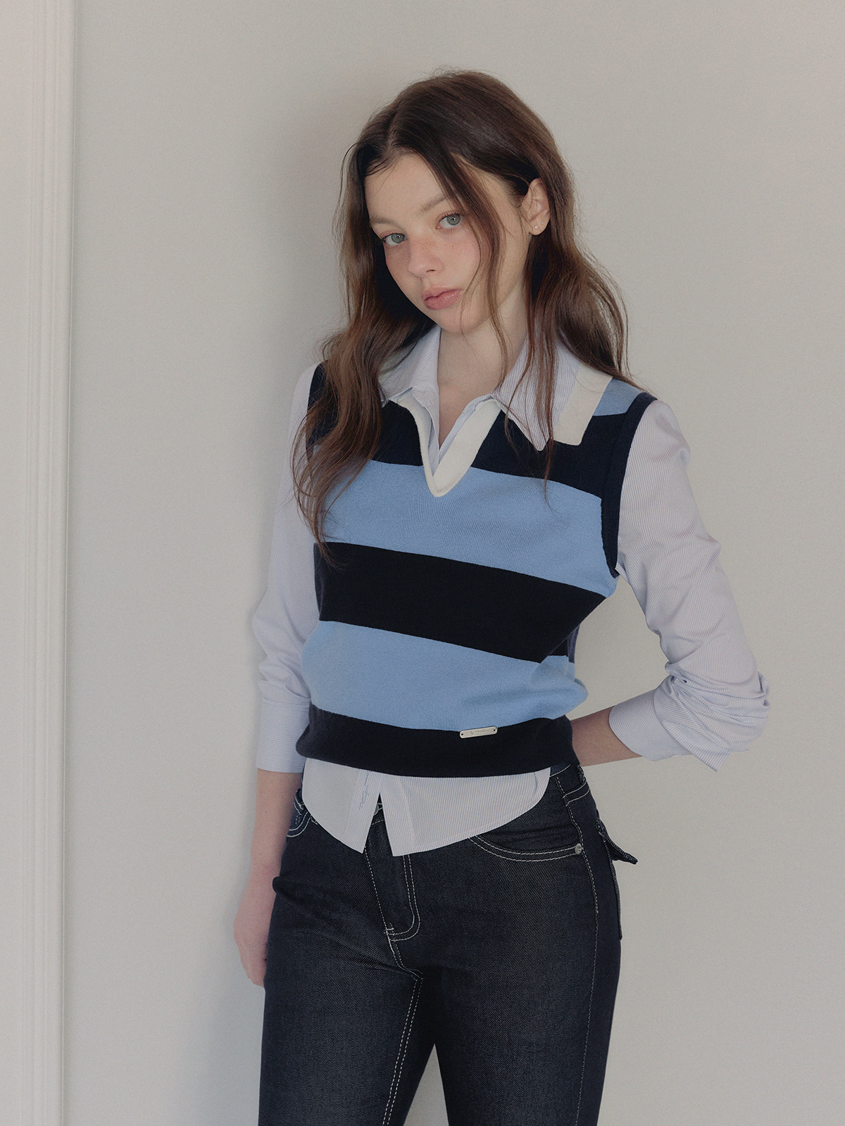 产品名称: Curtin 衬领条纹撞色无袖针织衫