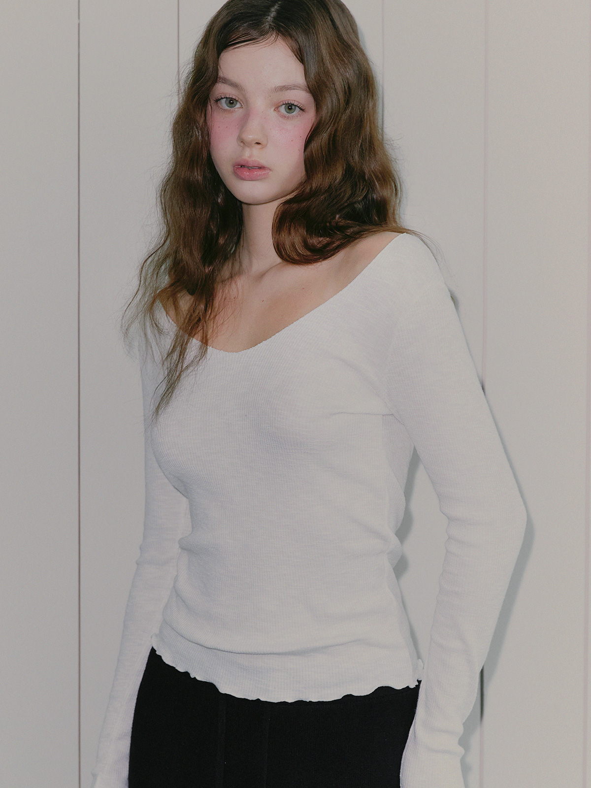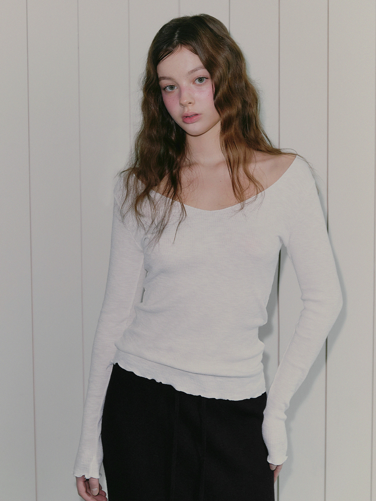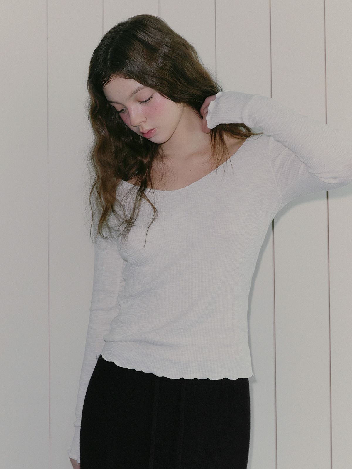 这是一件易于穿着且颇具女性气质的长袖T恤。