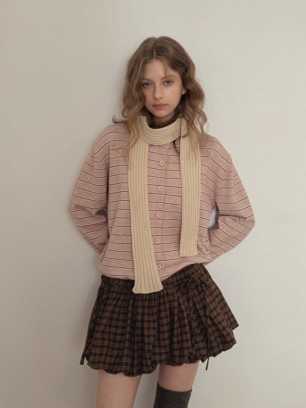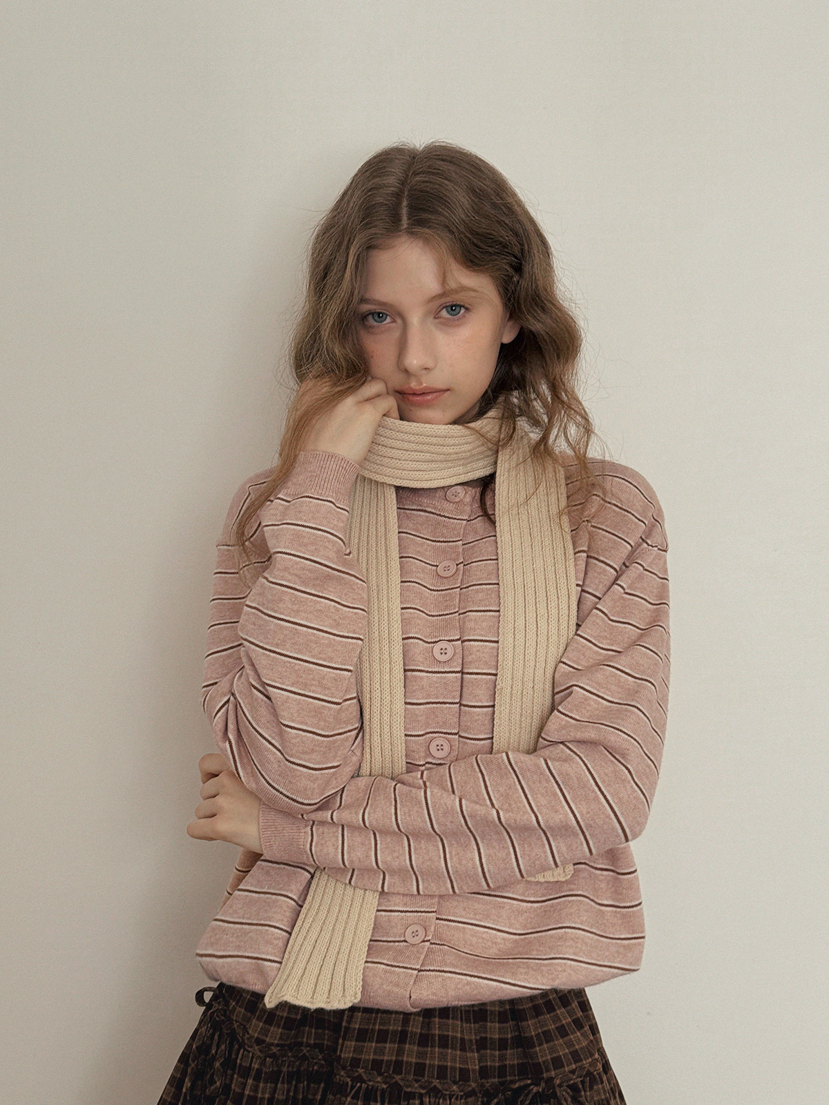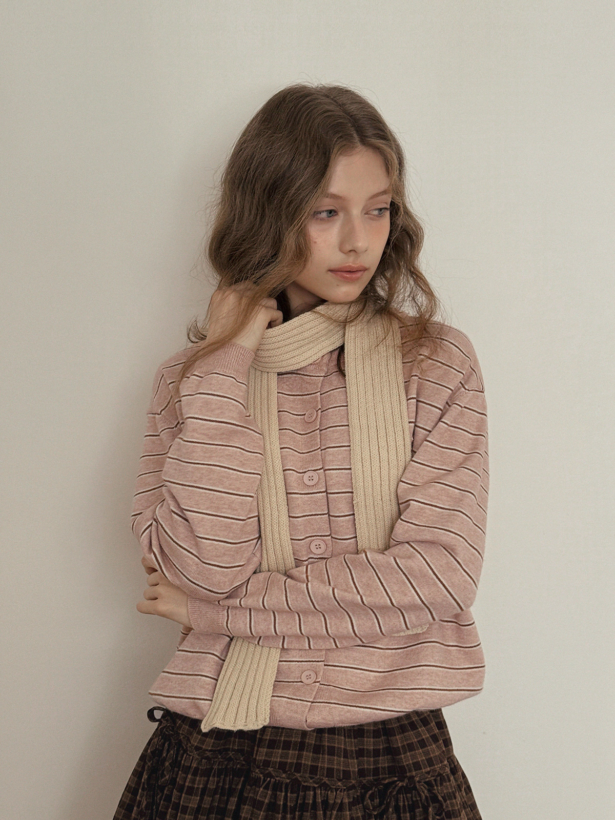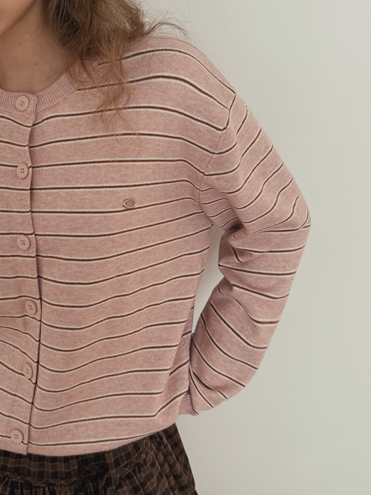 這款條紋針織開襟衫散發休閒魅力。