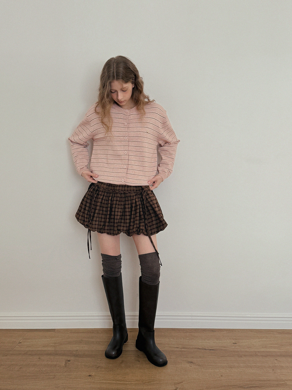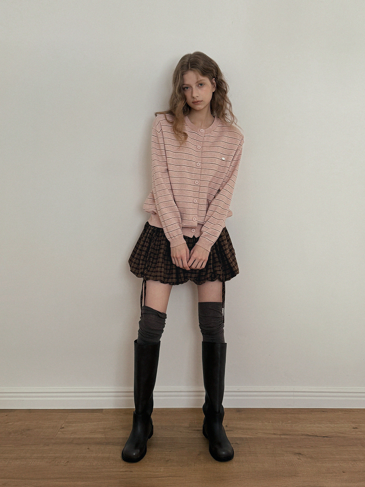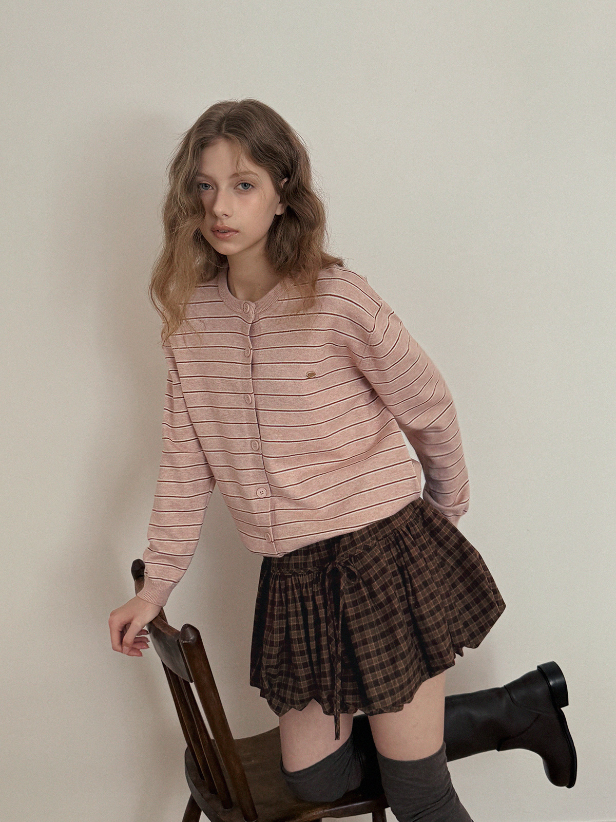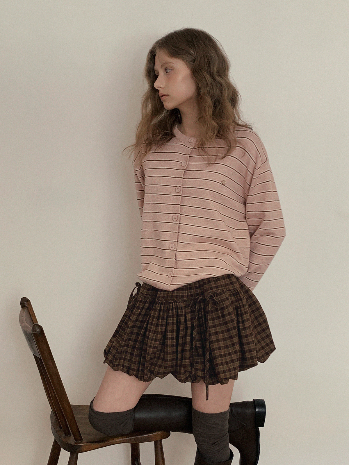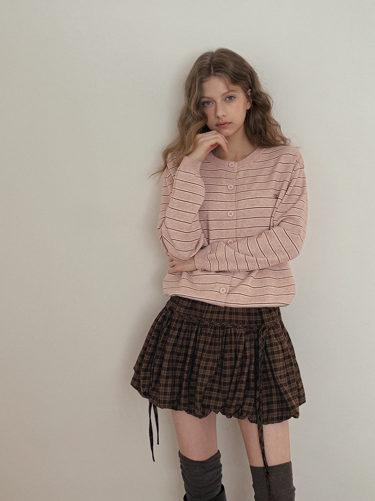 這款條紋針織開襟衫散發休閒魅力。
