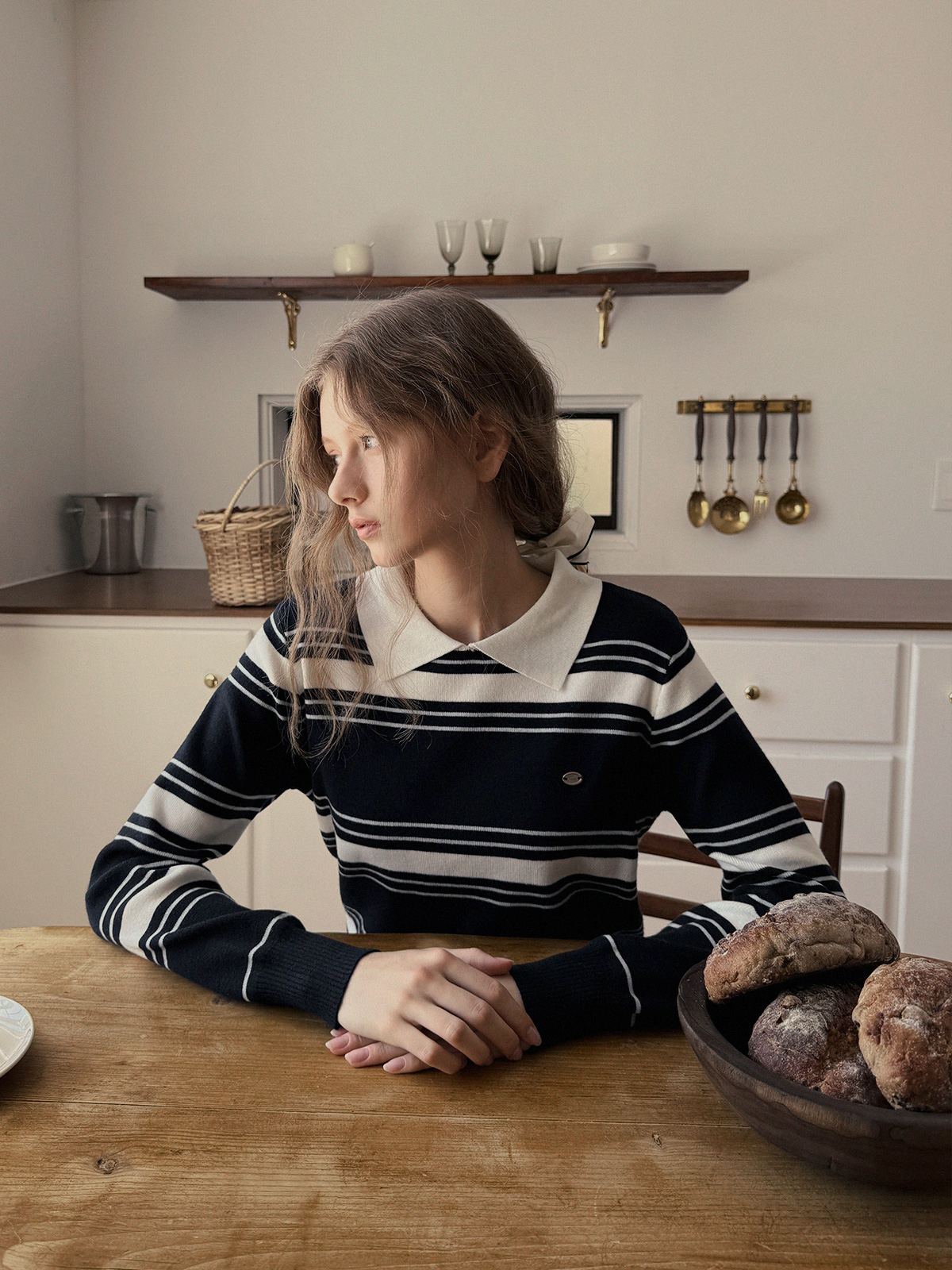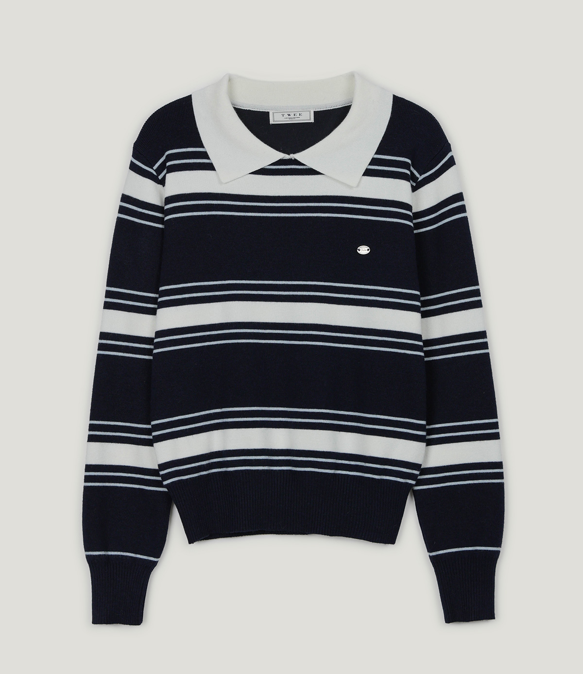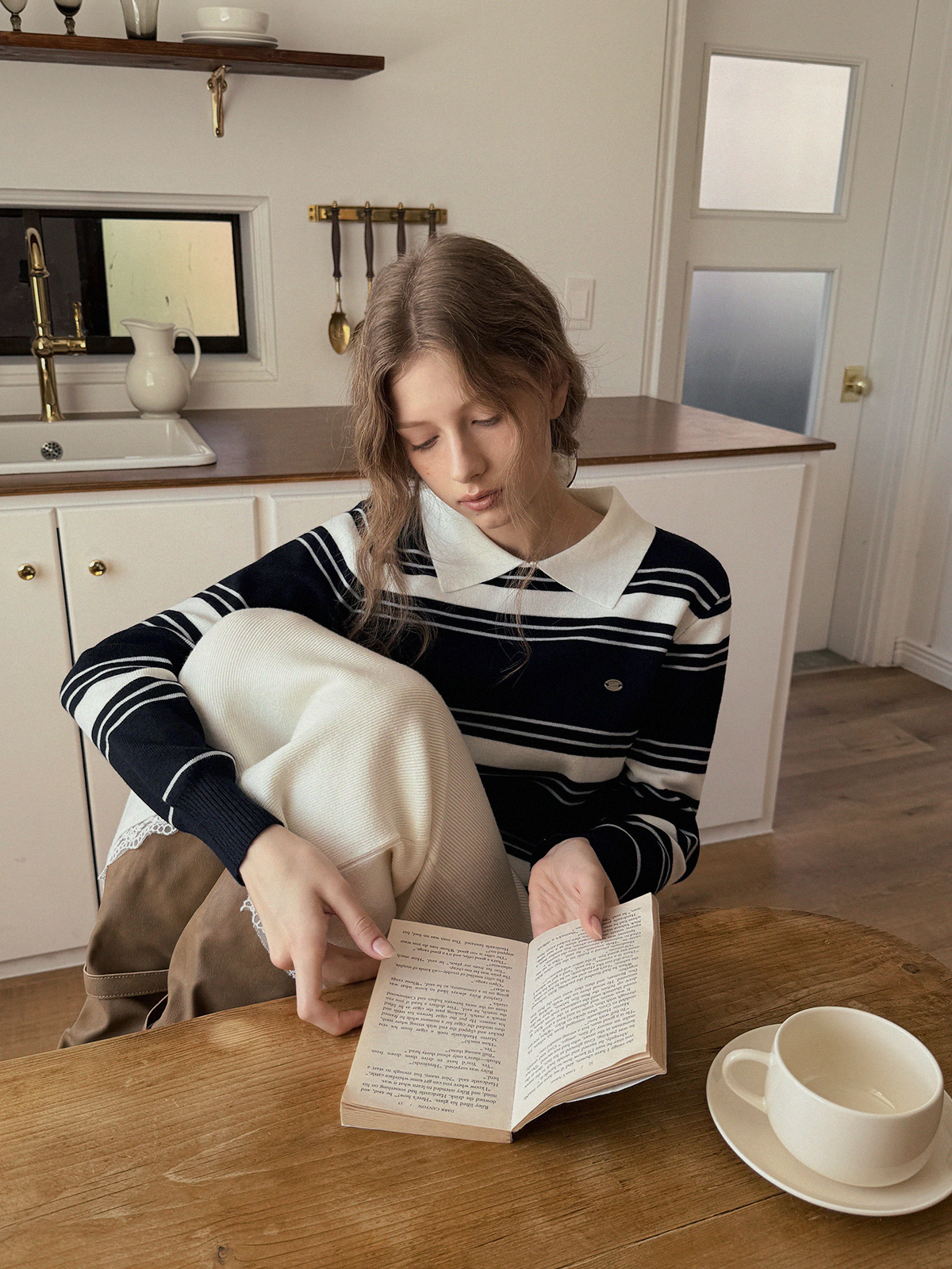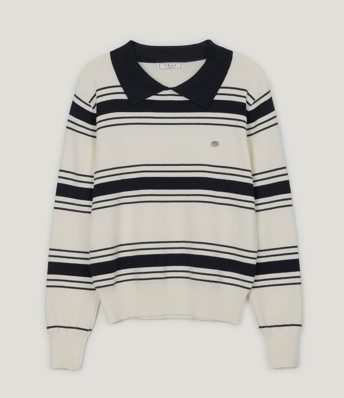 【TWEE】Lucen 條紋對比領長袖針織衫