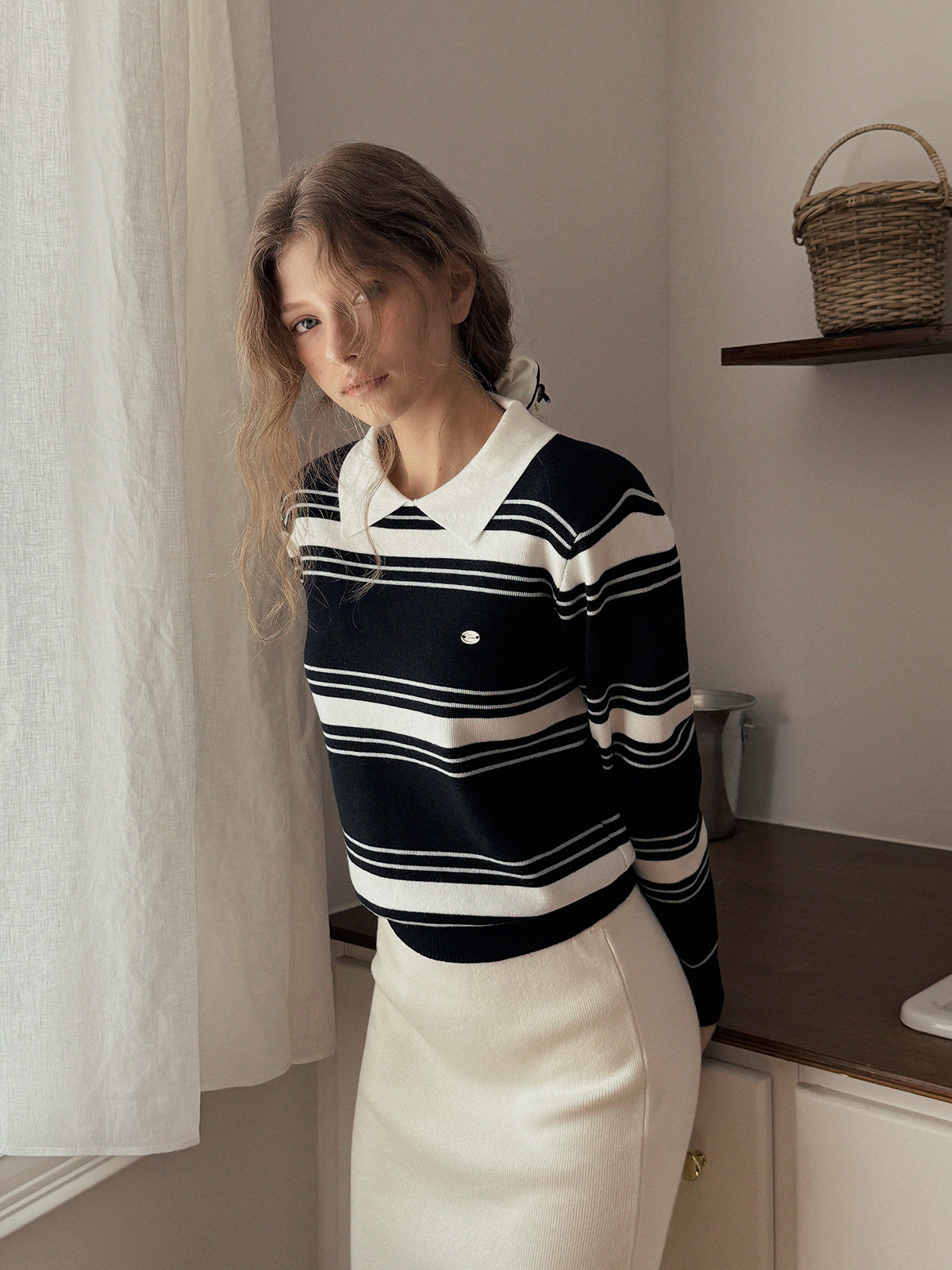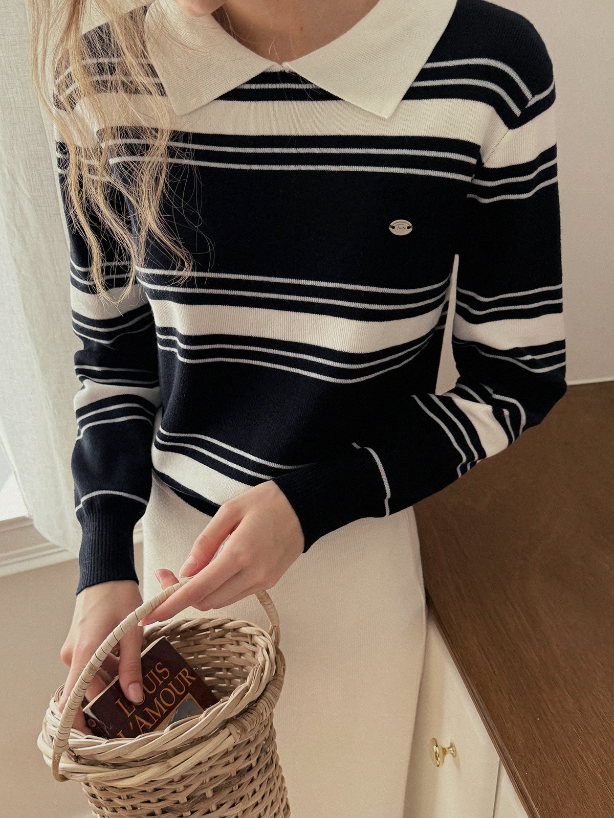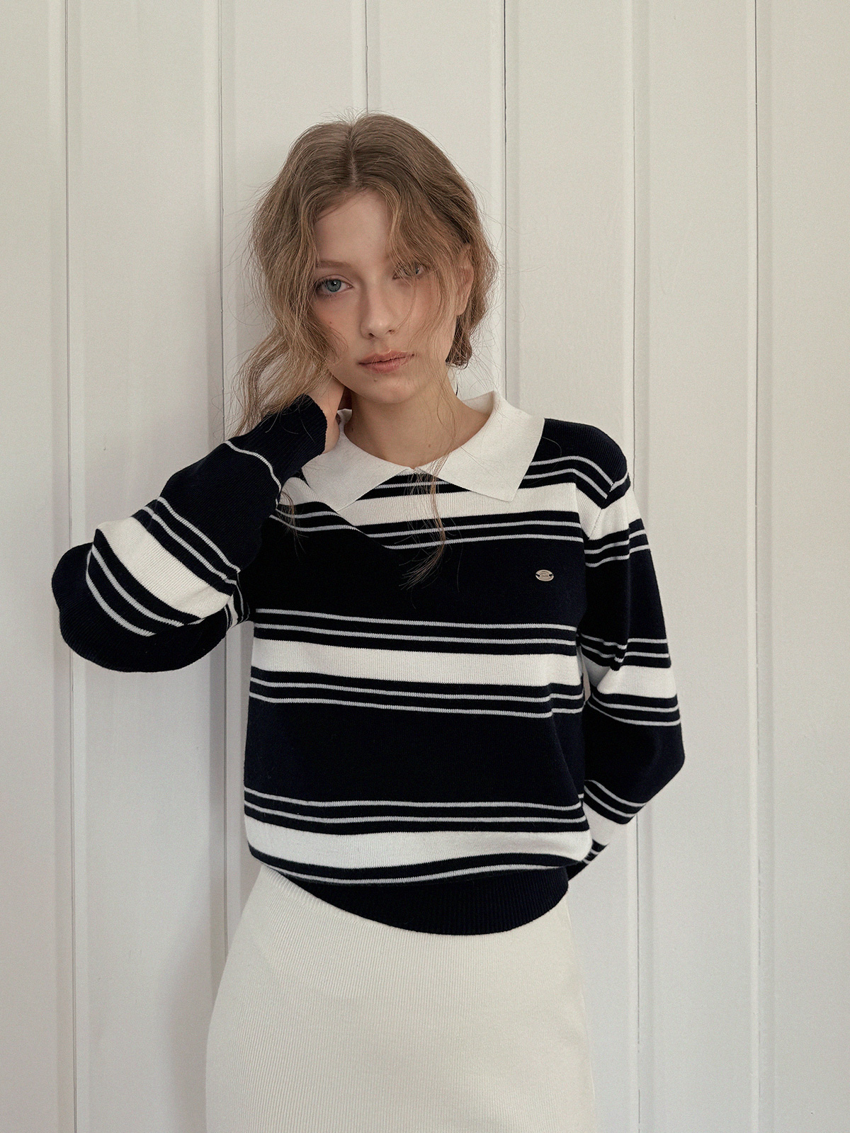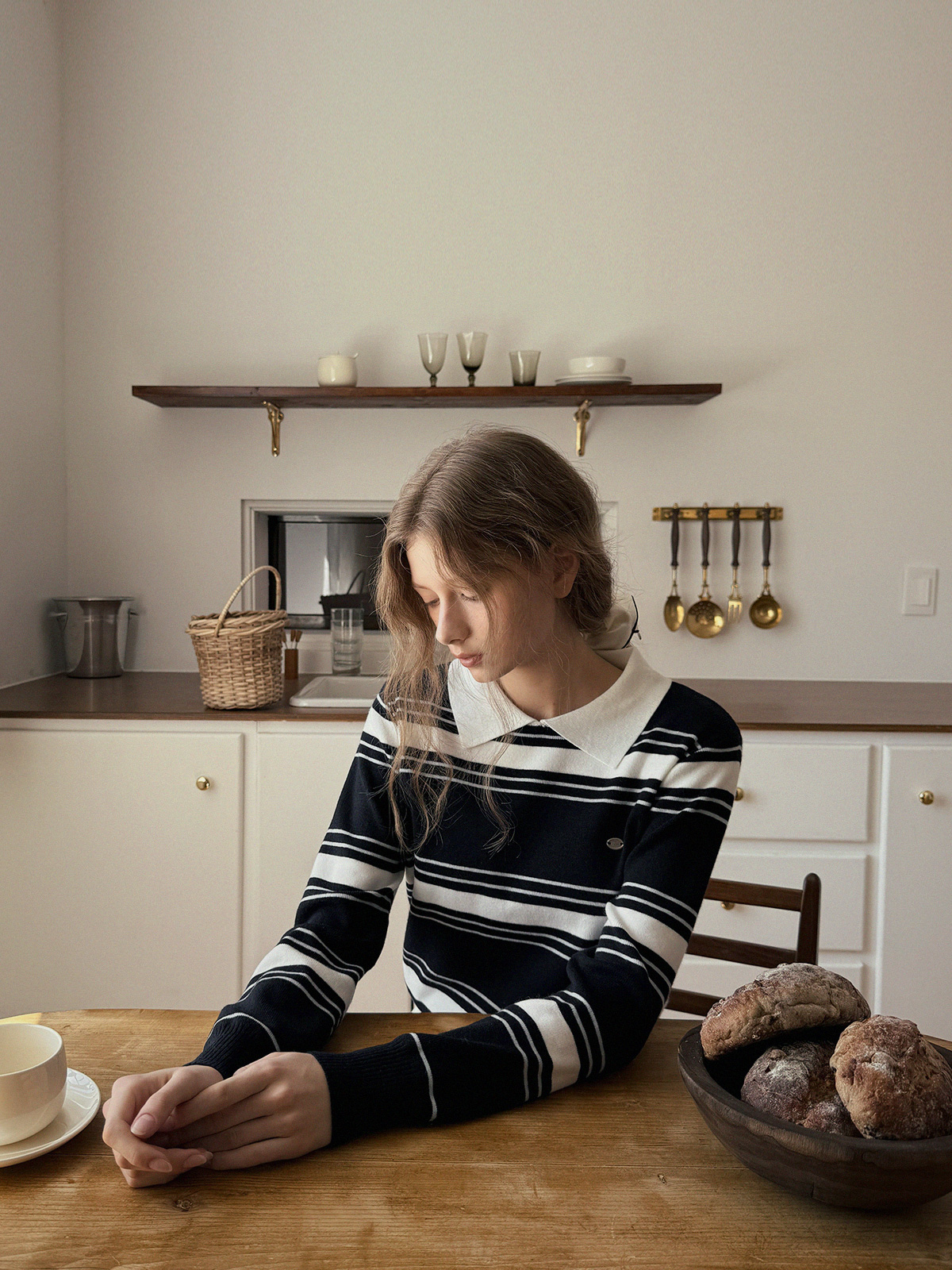 【TWEE】Lucen 條紋對比領長袖針織衫
