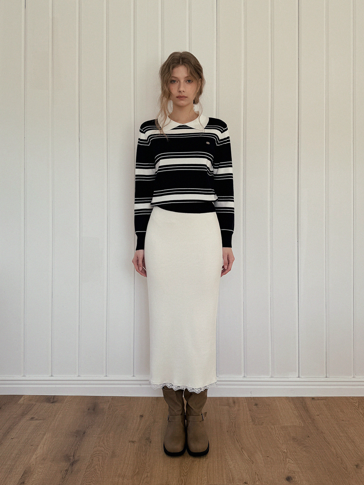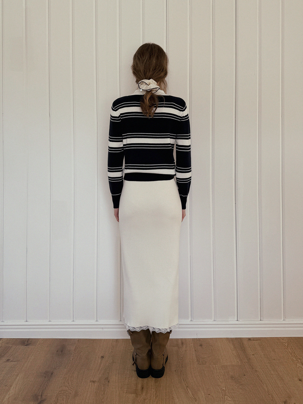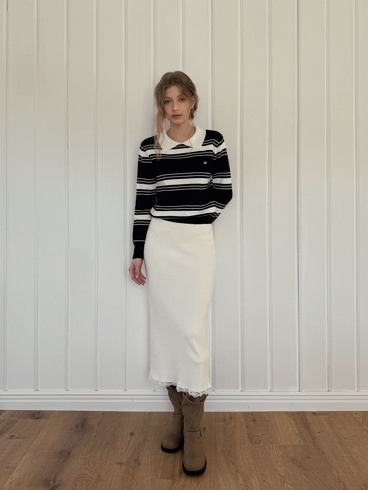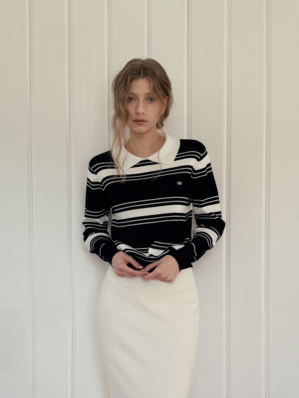 【TWEE】Lucen 條紋對比領長袖針織衫